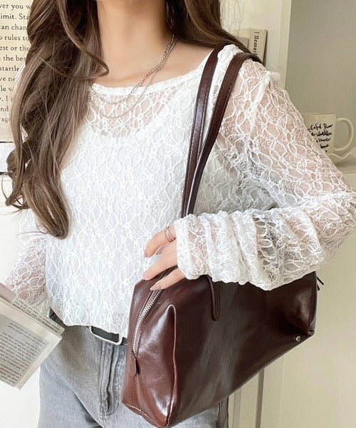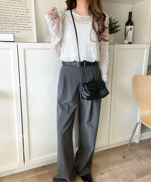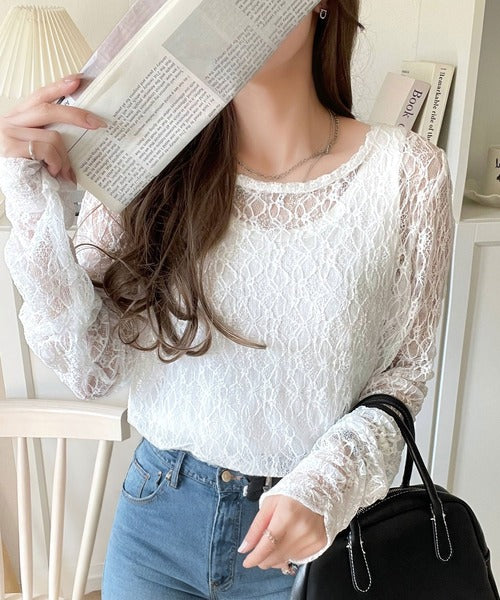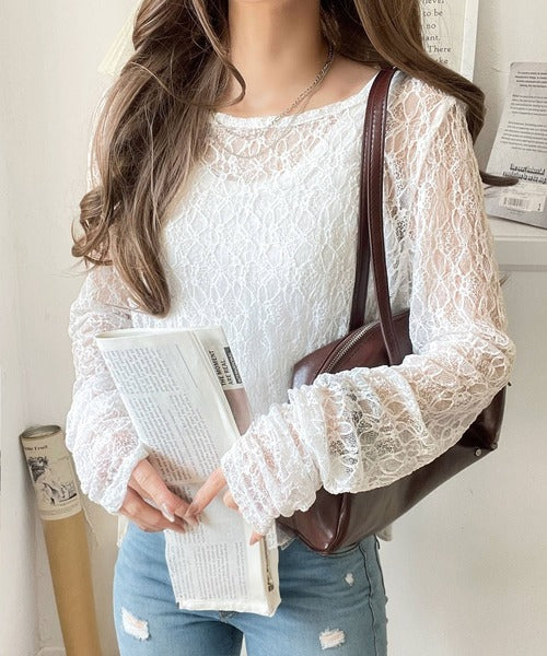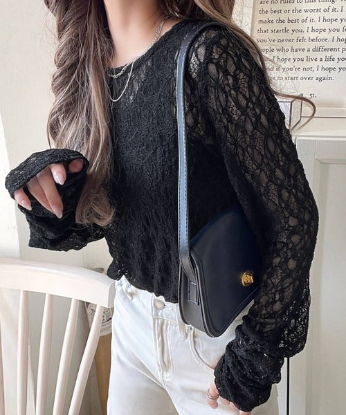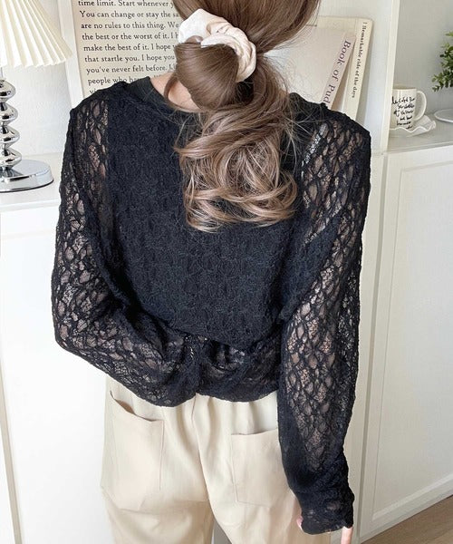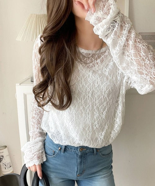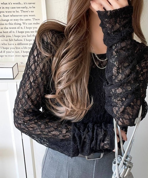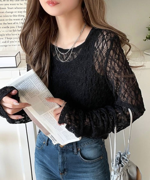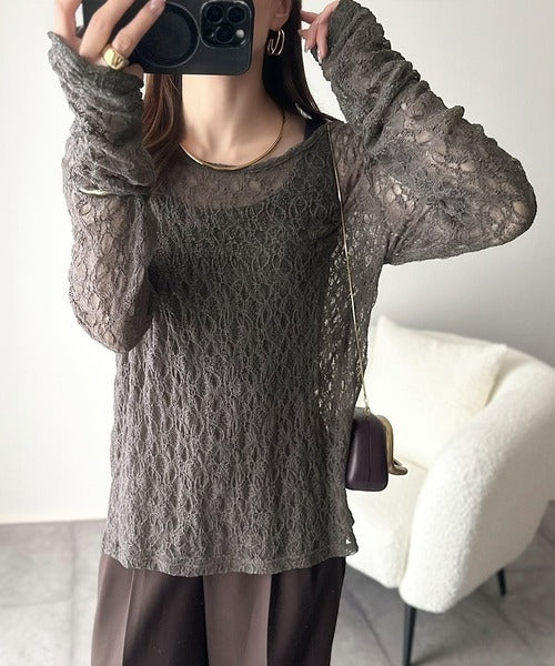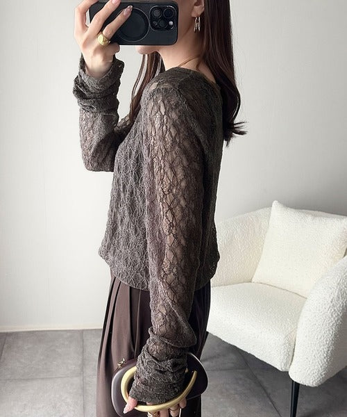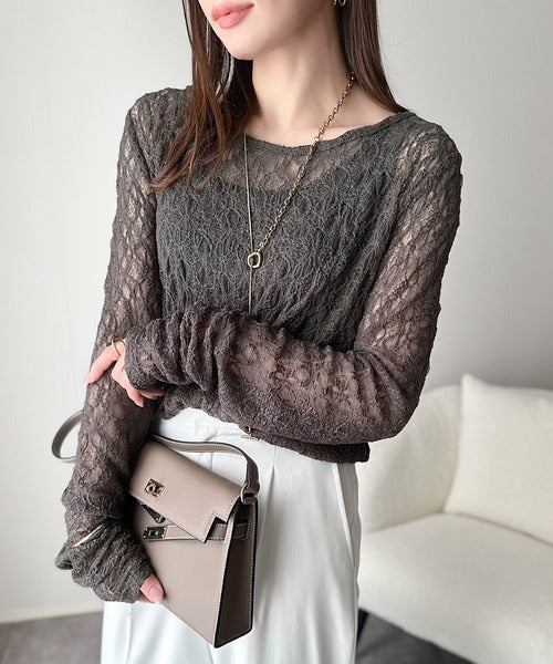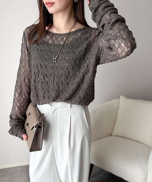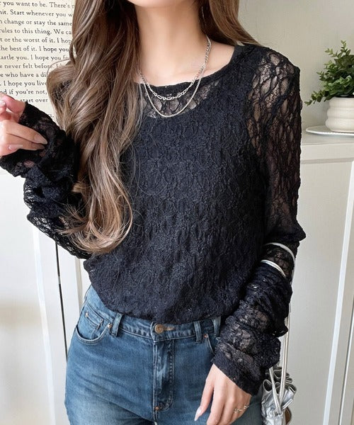 大人の上品映えレースアイテム。袖ギャザーレーストップス(長袖) ce1010452
