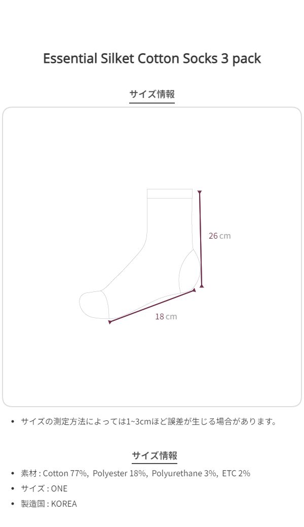 シルケット加工により表面が滑らかで、ほのかな光沢が際立つ Essential Silket Cotton Socks(エッセンシャル・シルケット・コットン・ソックス)です。