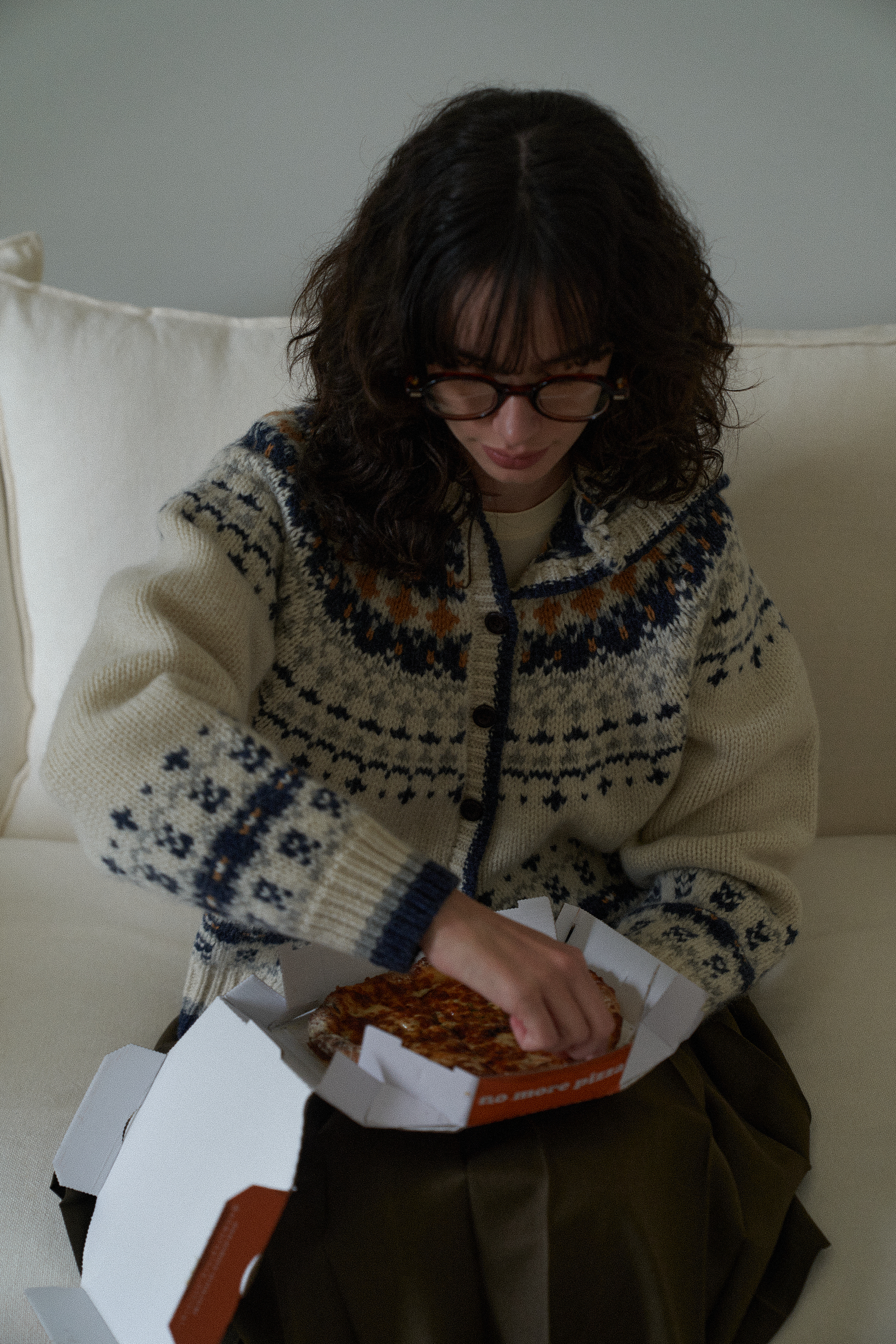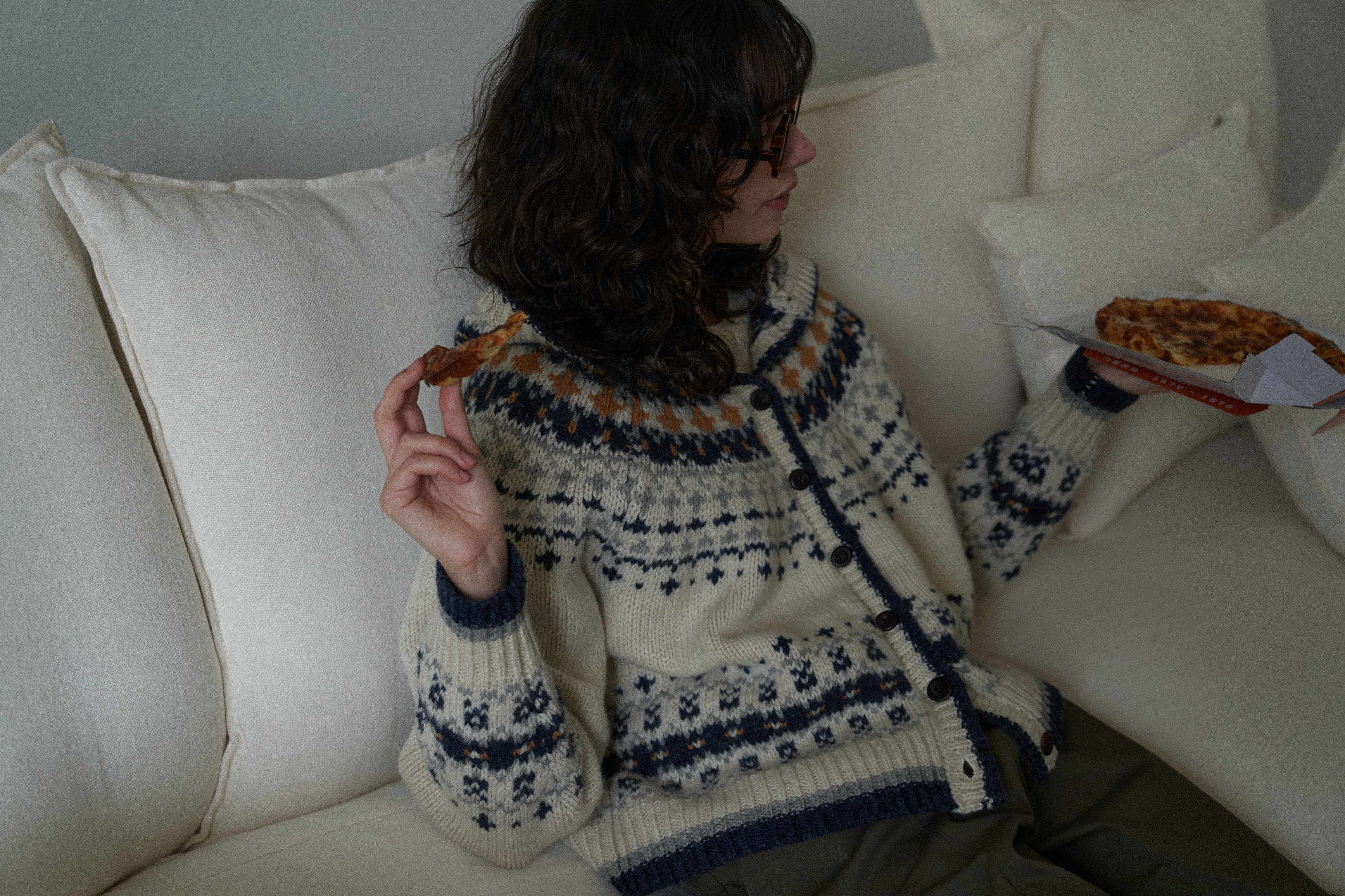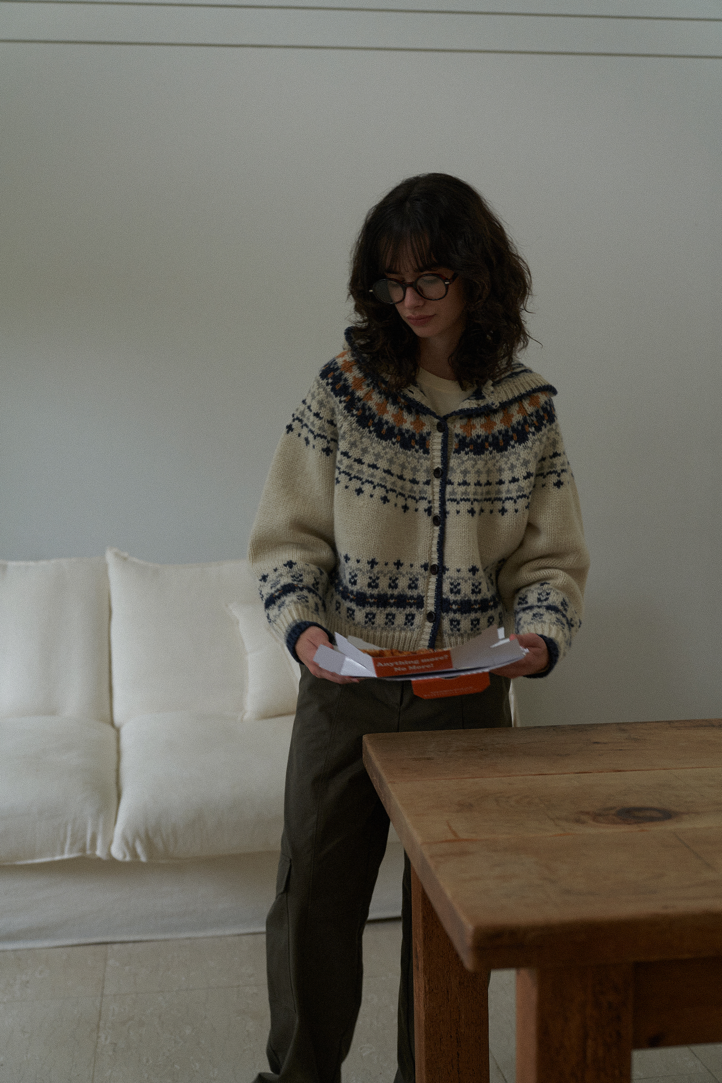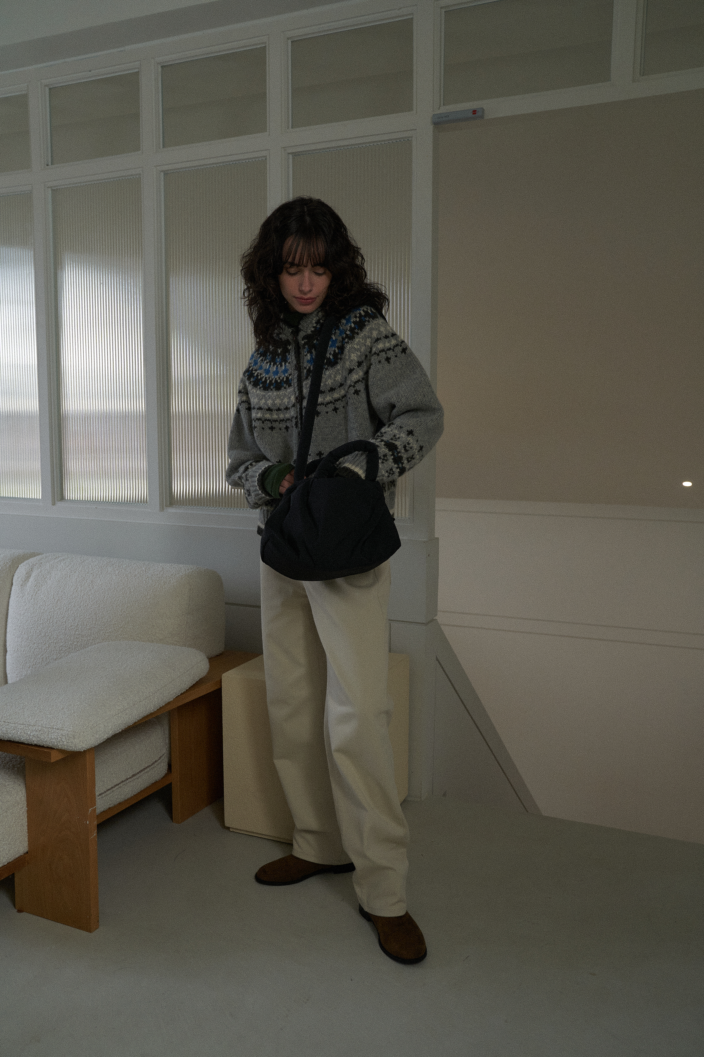 4色の組み合わせジャカードパターンとウッドボタンでラブリービンテージムードを完成