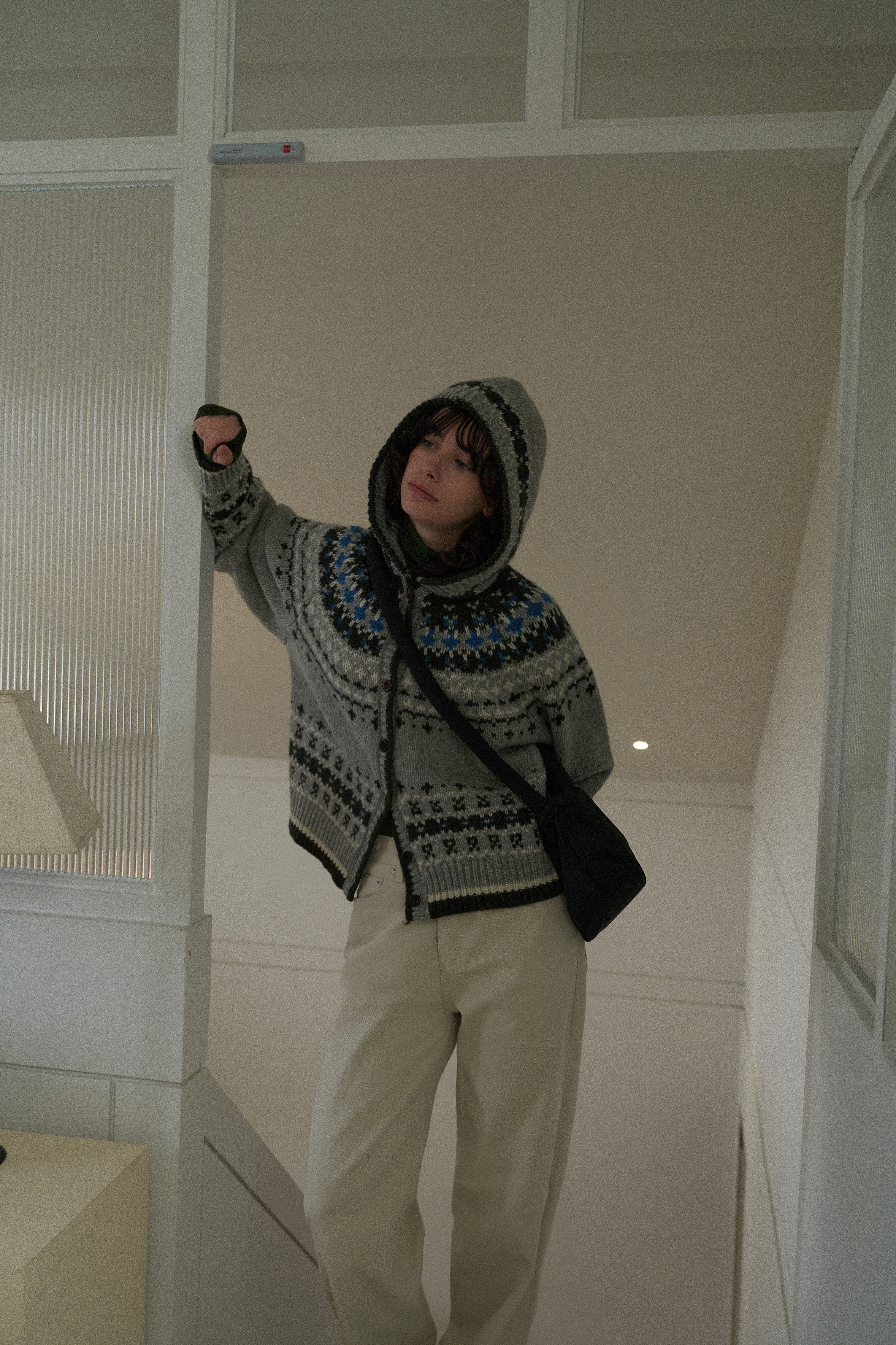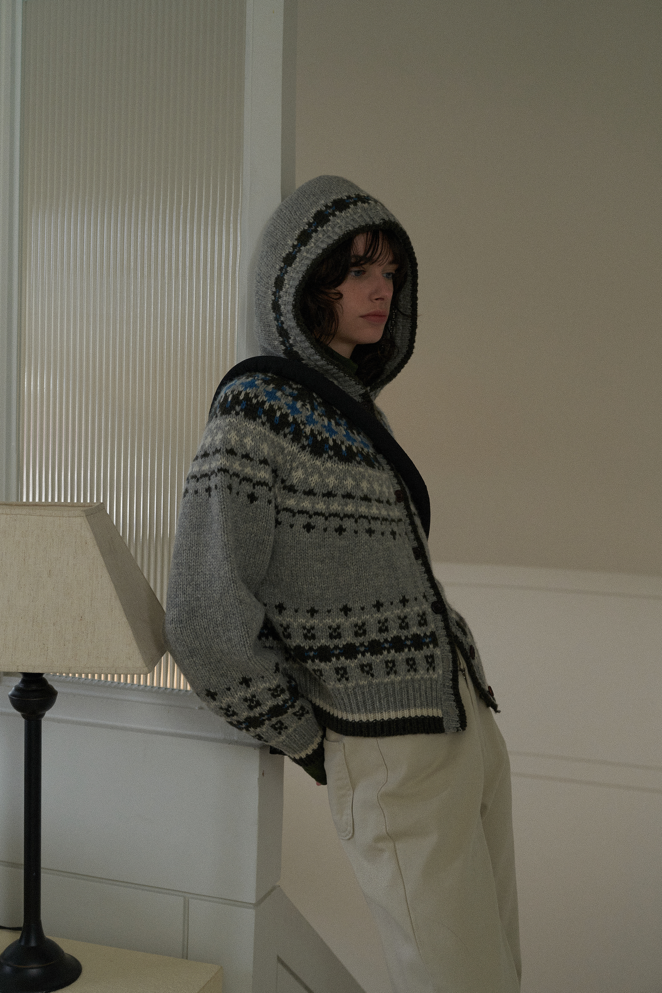 Jacquard hoodie cardigan_2colors