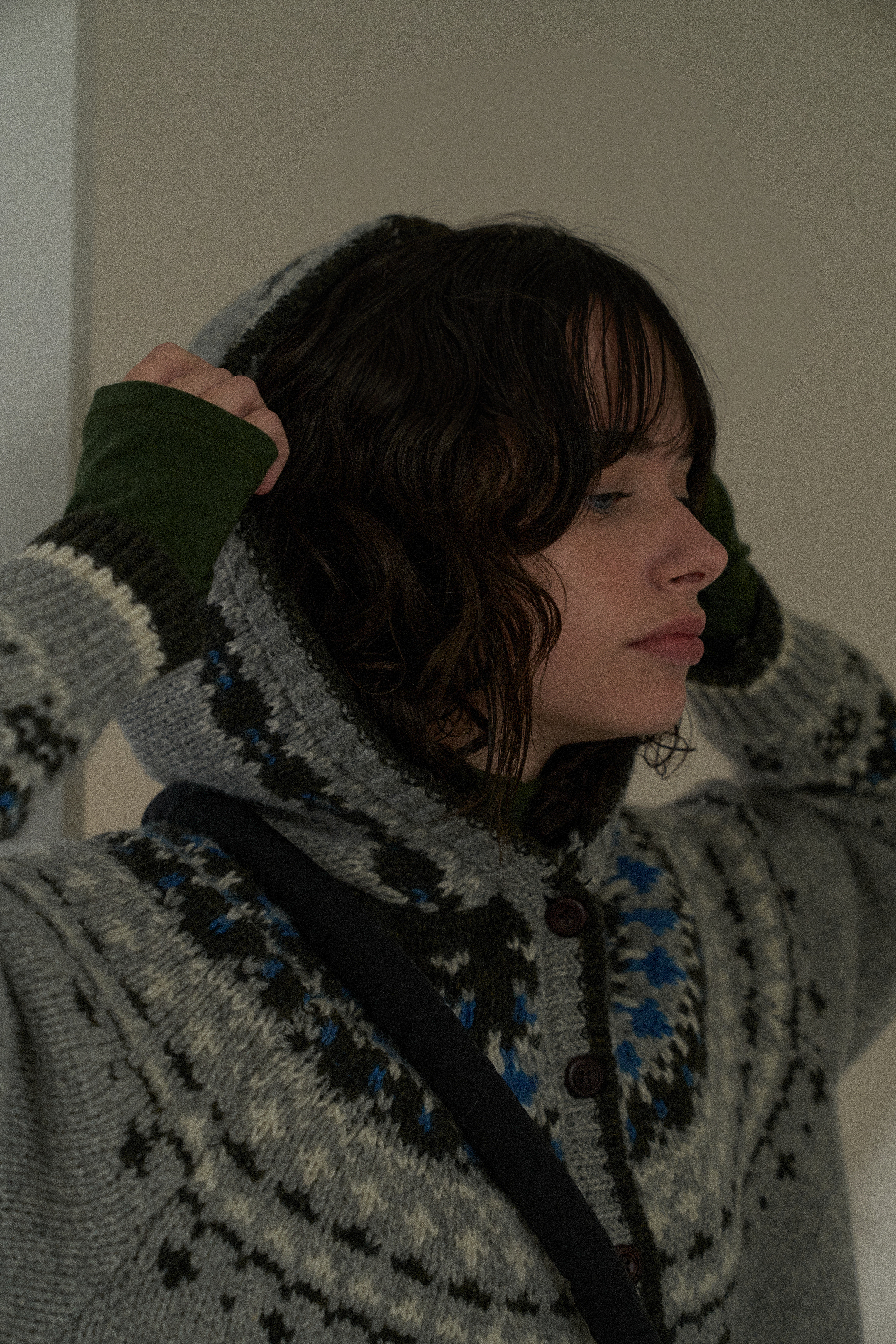 ハンバーグ雪を連想させる ジャカード 織物 ニット フード