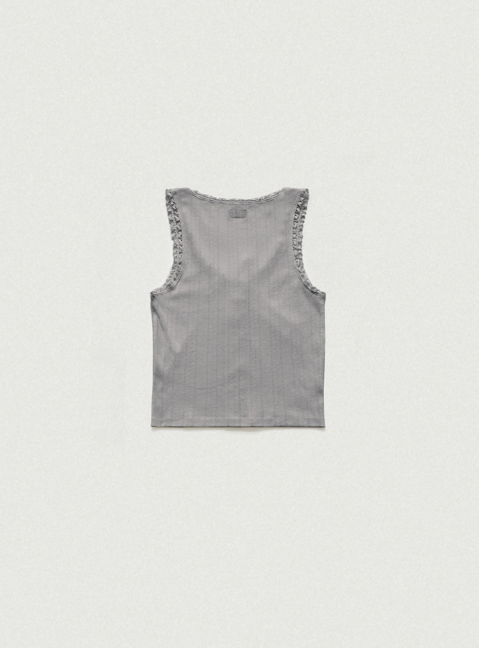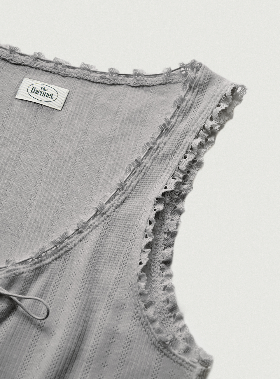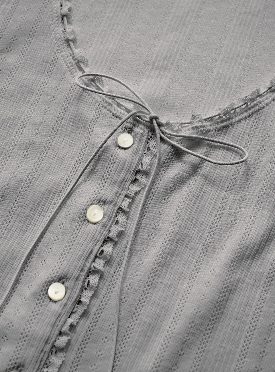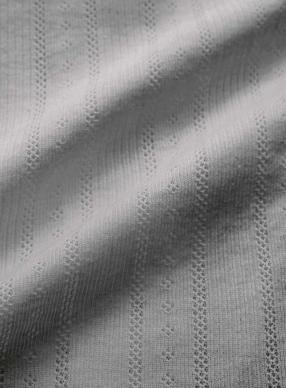 グレーカラーとアイレットテクスチャーが印象的なコットンファブリック