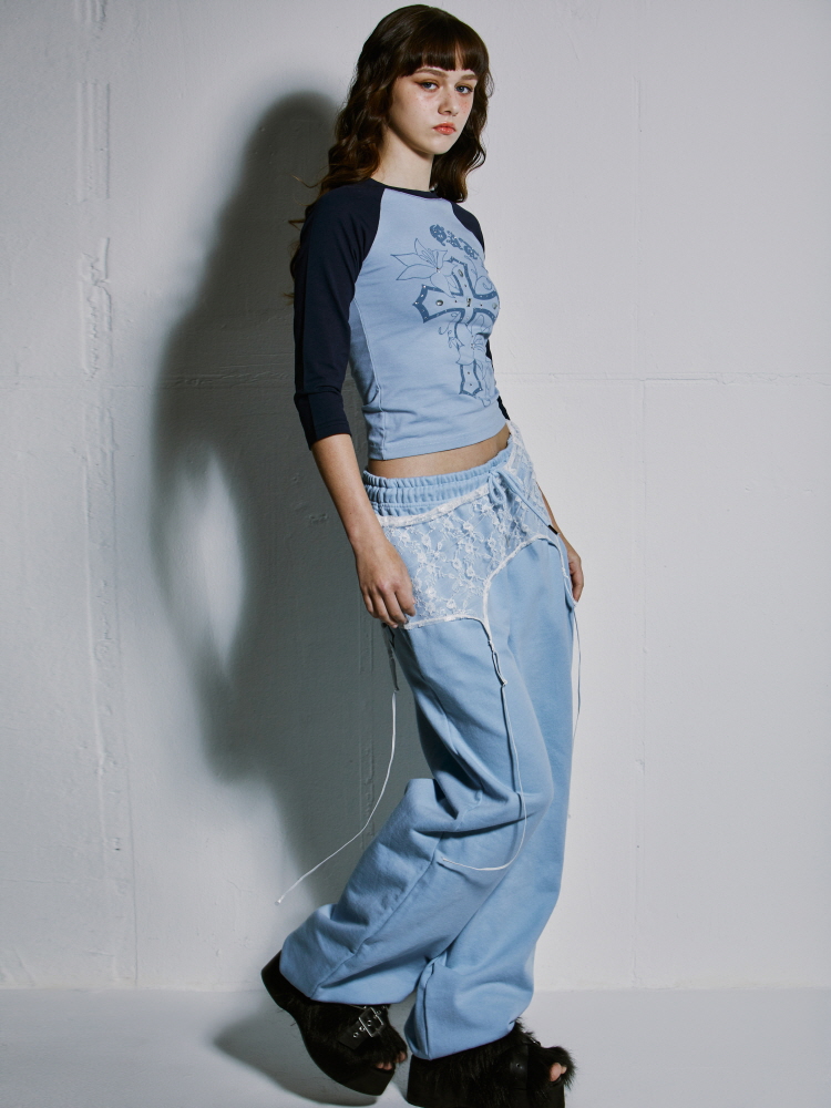 ブルーカラーはレイヤードスカートと合わせて演出しました。