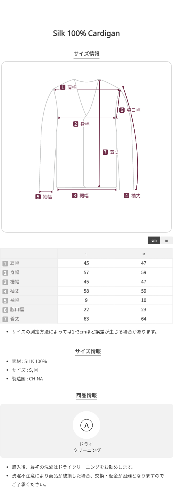 このブランドの商品はお客様の都合による交換および返品はお受けいたしかねます。 十分にご注意の上、ご注文をお願い致します。