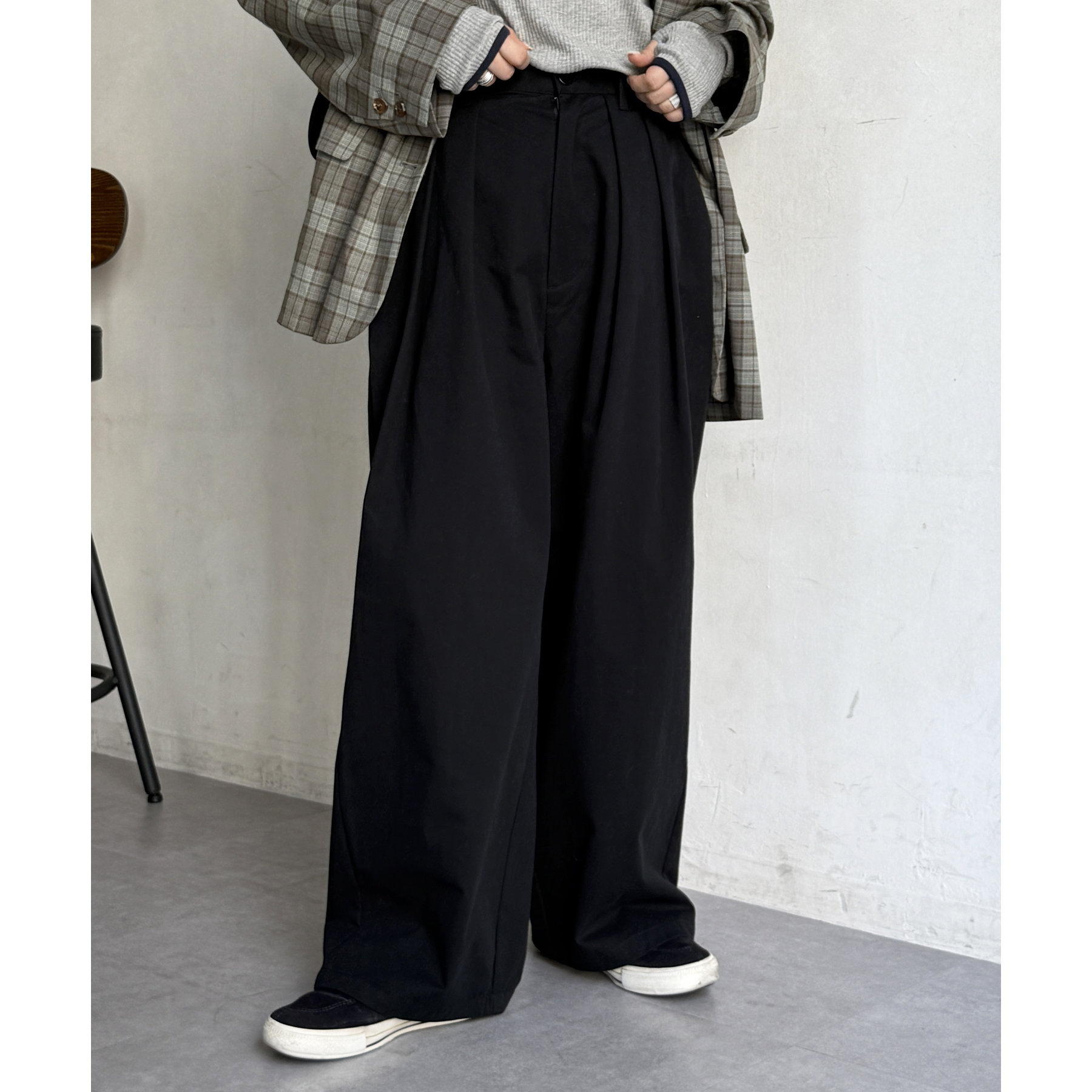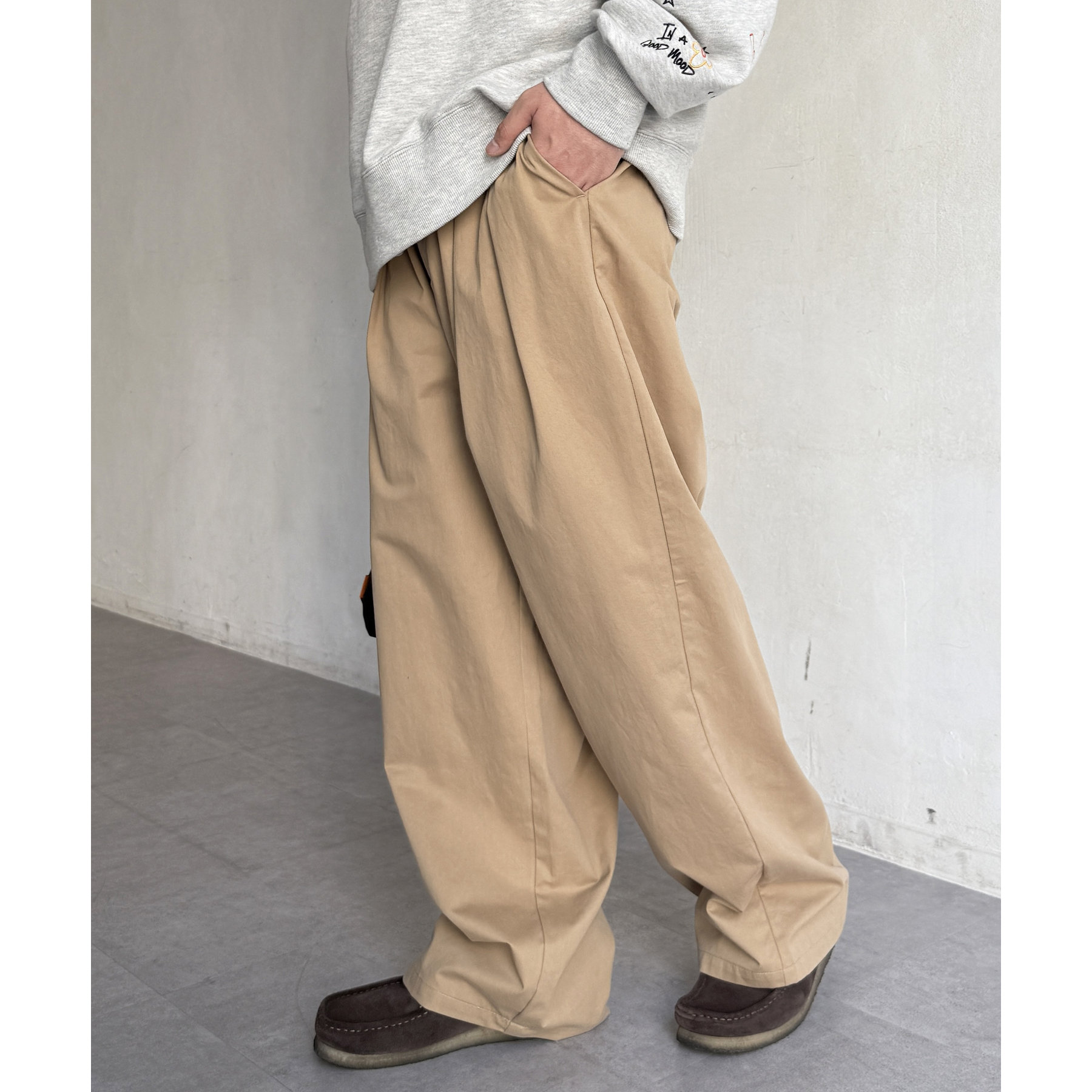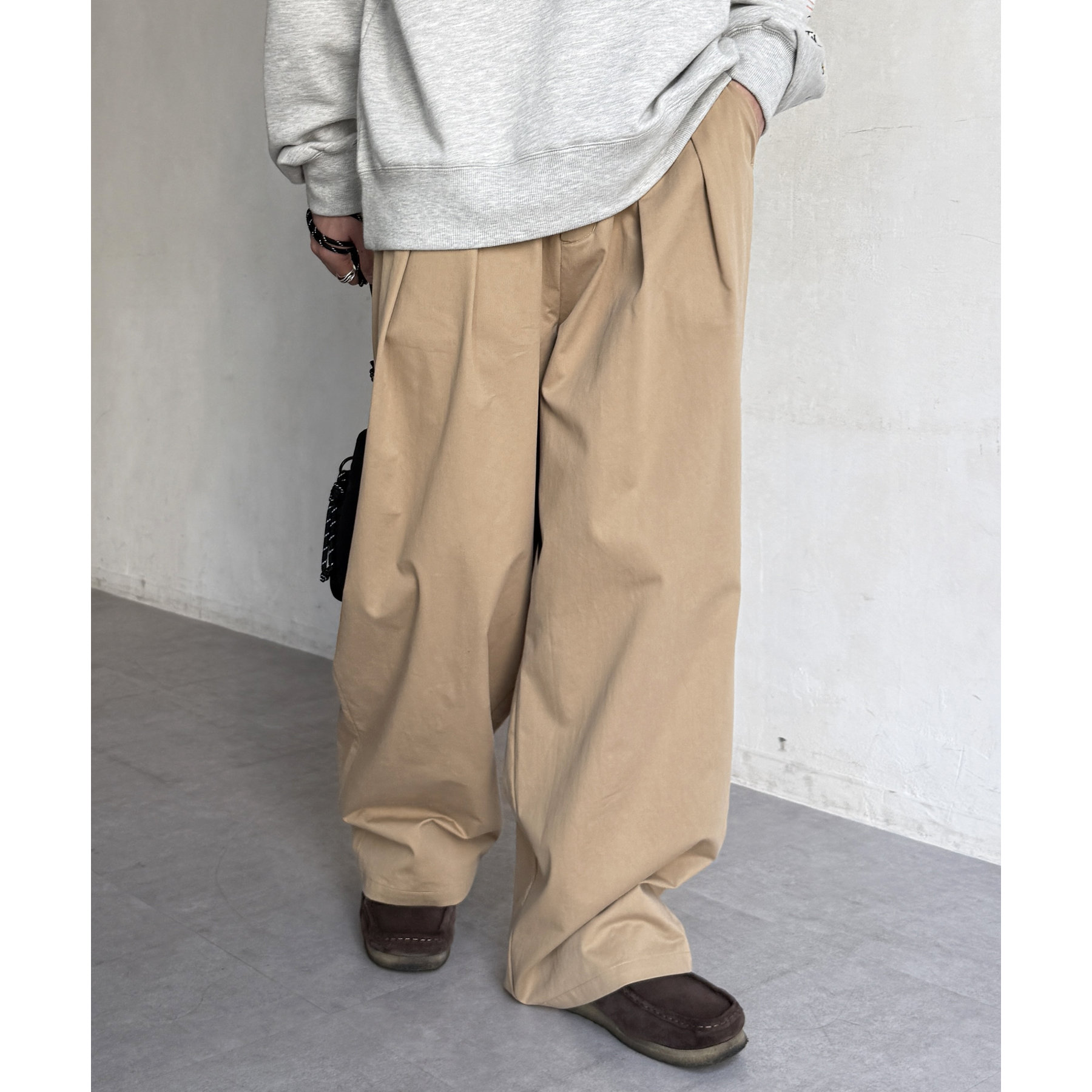 ワイドシルエットが魅力的なタック入りチノパン