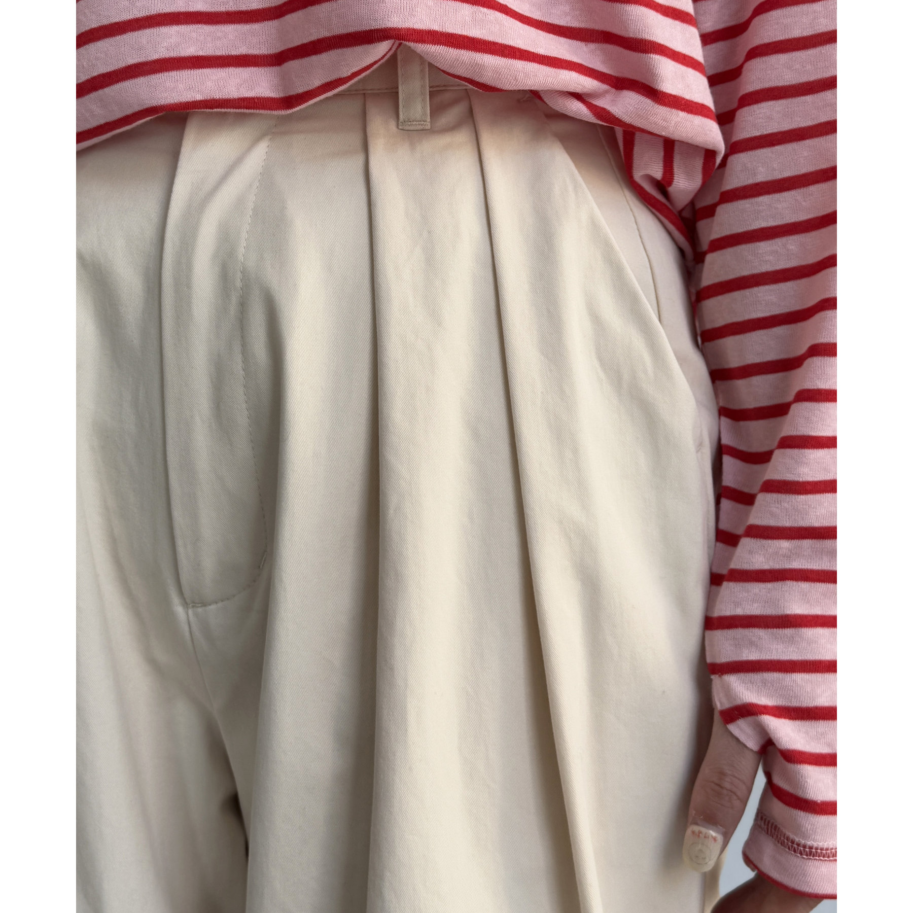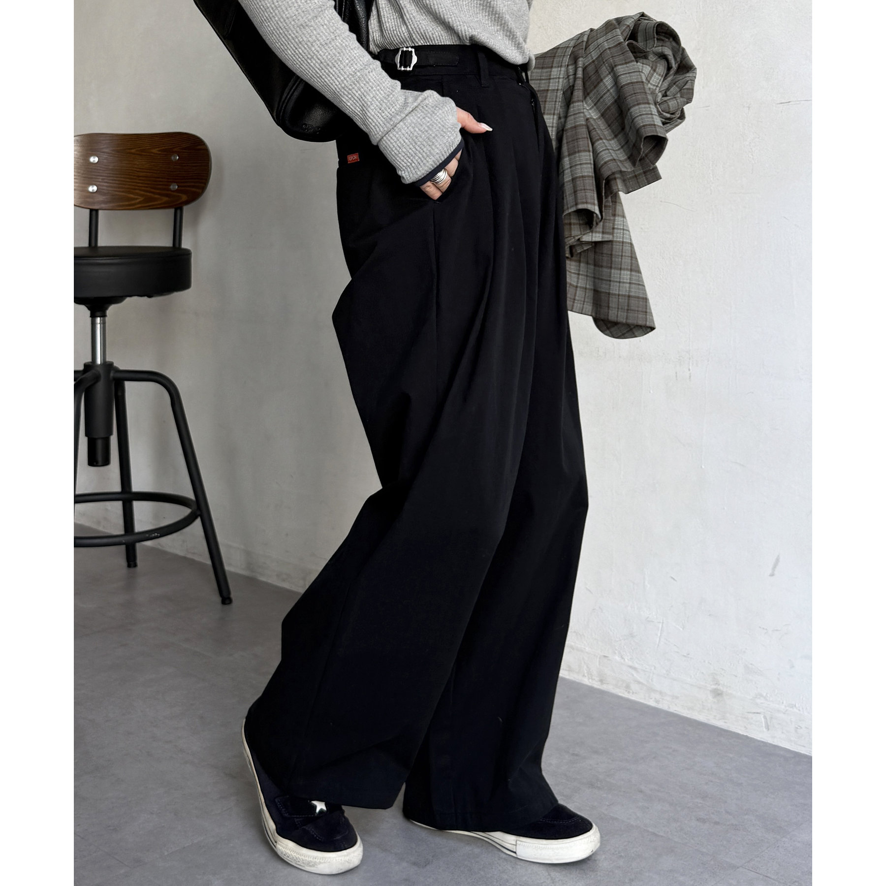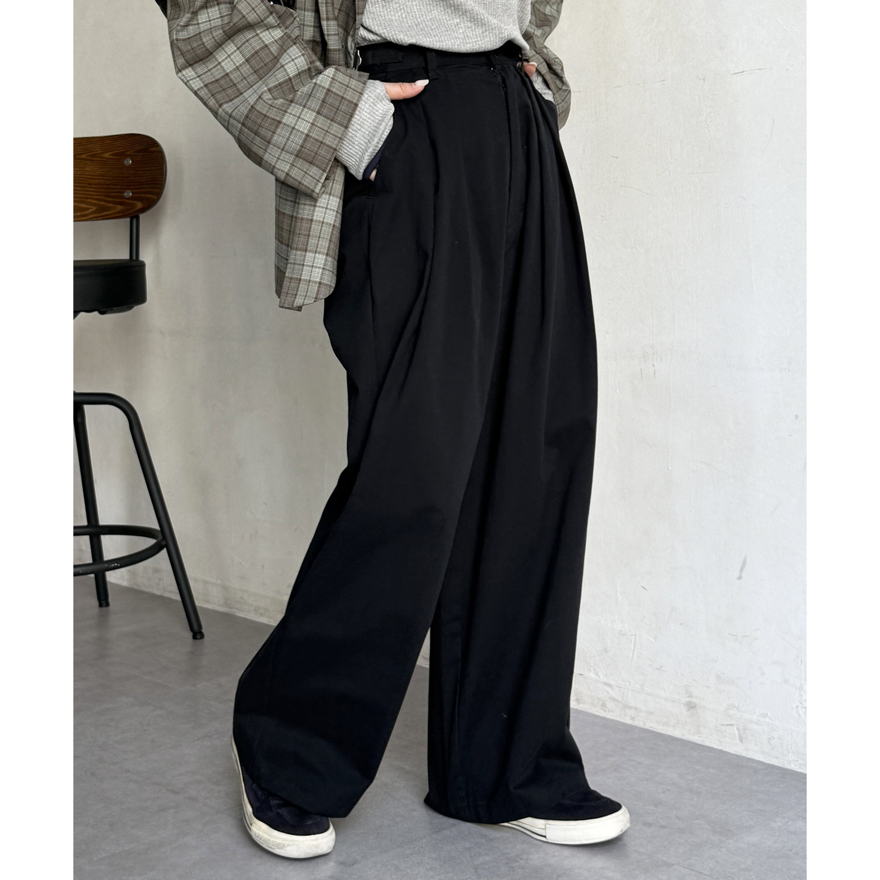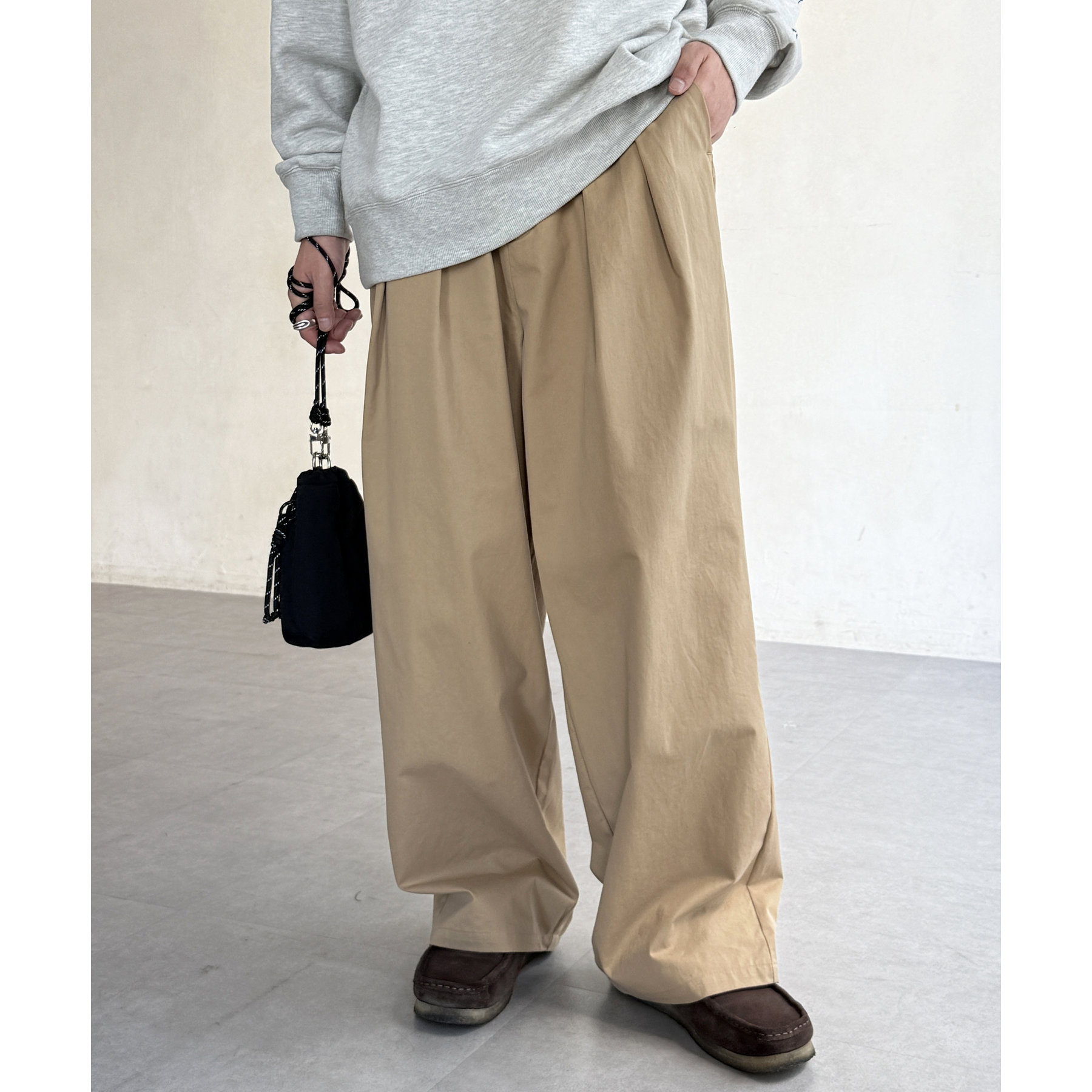 ワイドシルエットが魅力的なタック入りチノパン