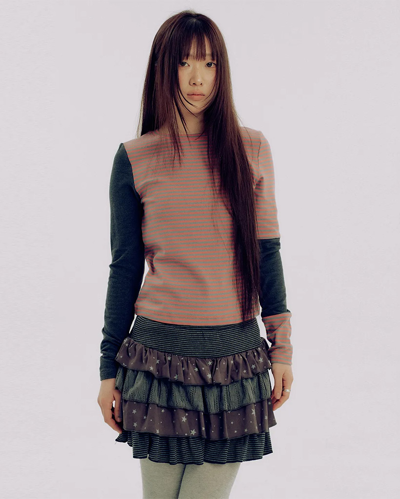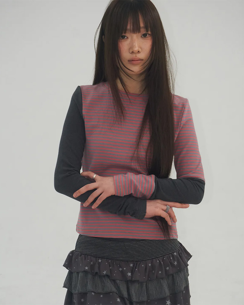 Dangara Color Block Point Raglan Ringer Long Sleeve T-Shirt [Pink]