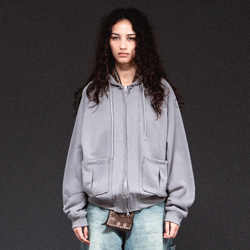 STITCH HOODIE ZIP-UP DEEP GREY