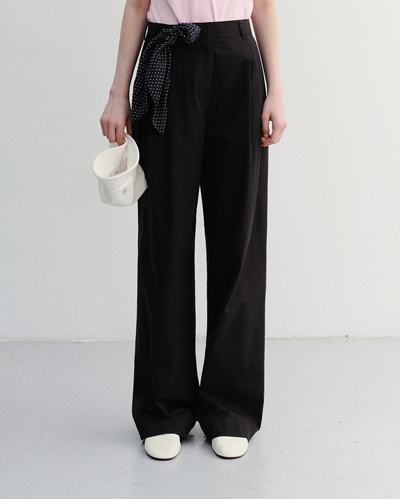 SUMMER DOUBLE PLEATED CHINO SLACKS BLACK_UDPA6B229BK