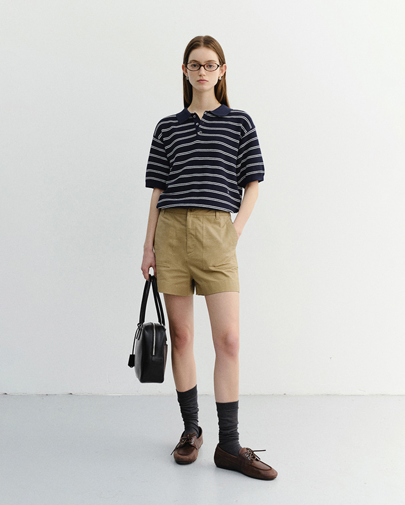 UNISEX SOFT STRIPED POLO KNIT NAVY_UDSW6B121N2