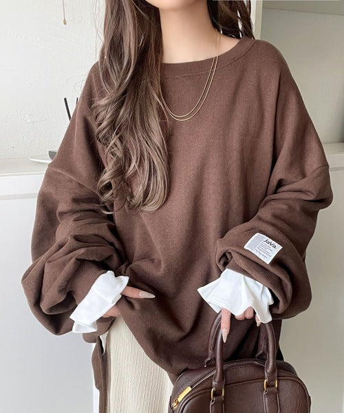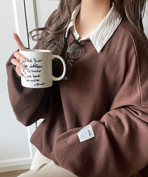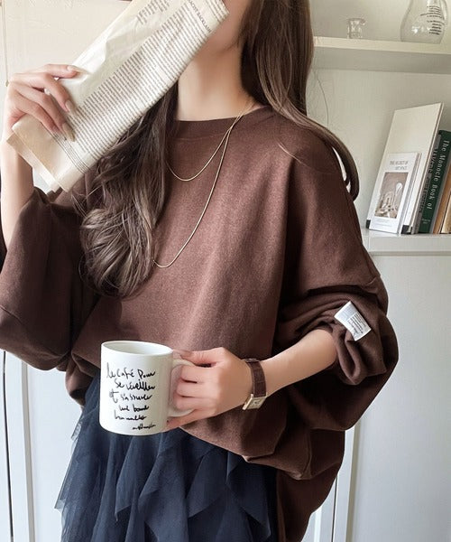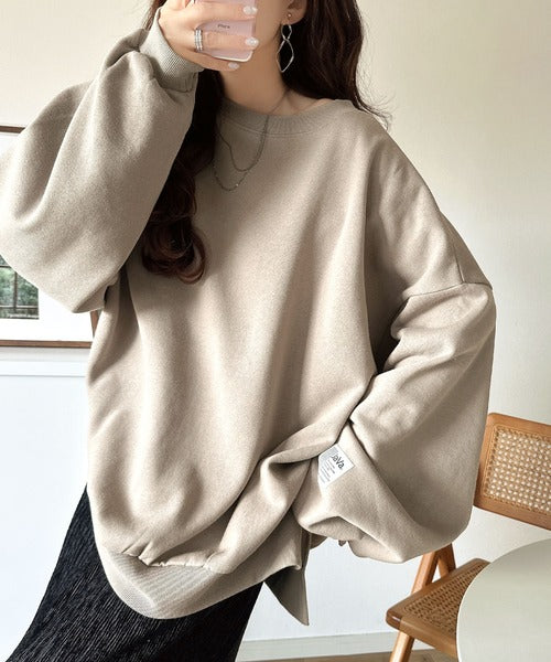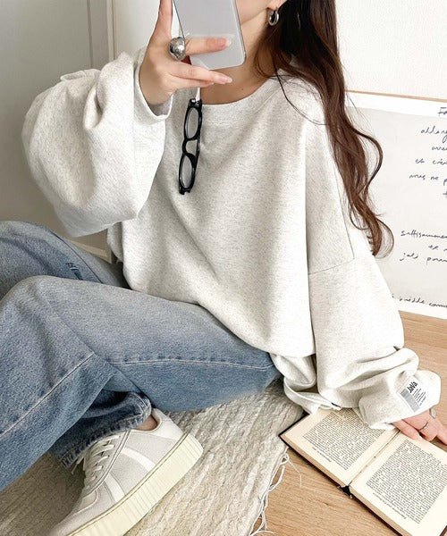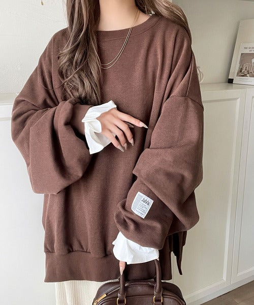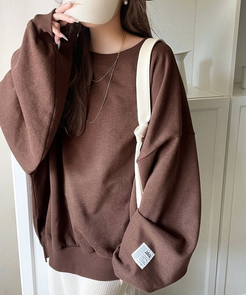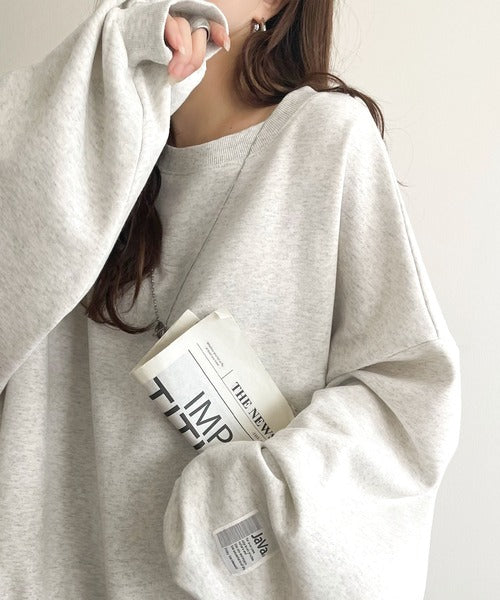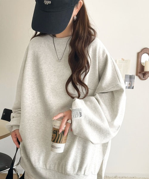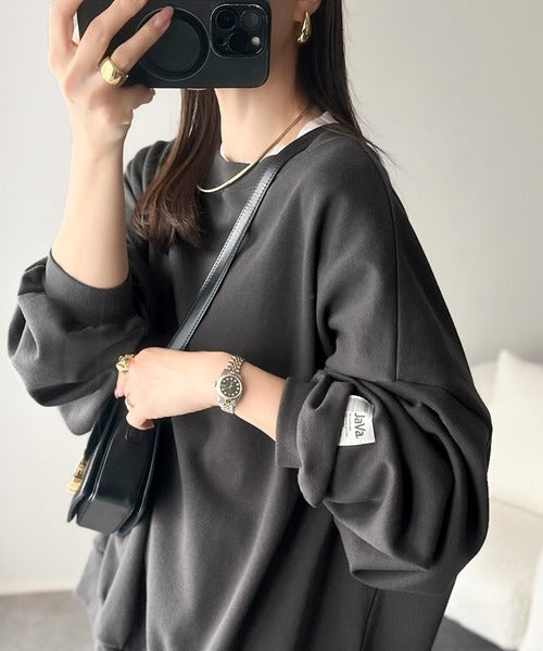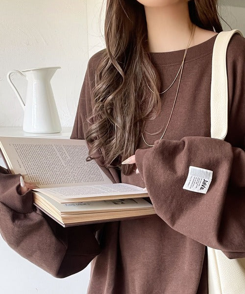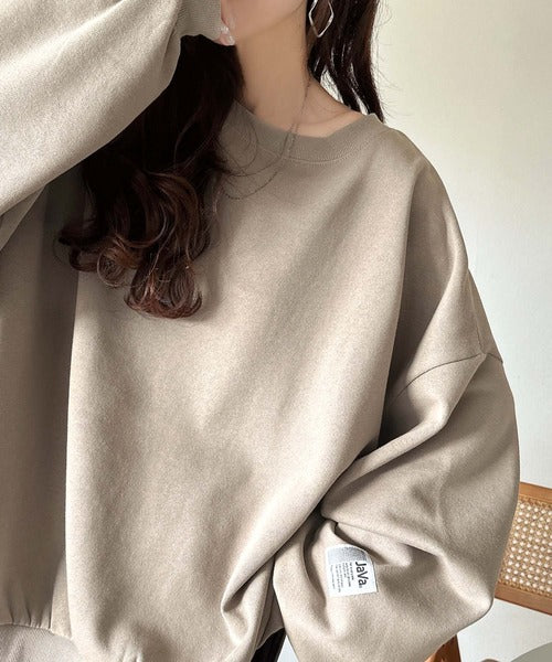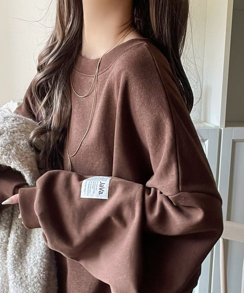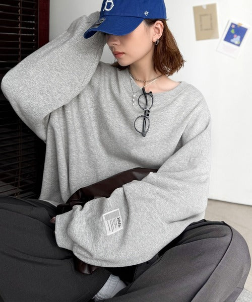 《JaVaジャバコラボ》リラクシーに着こなす、オンナっぽカジュアル!裏起毛ワイドネックビックスウェット jv1050329