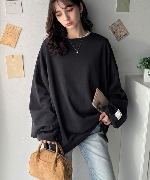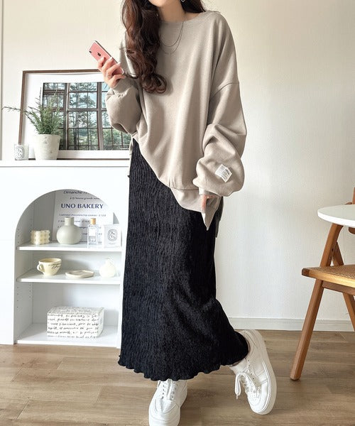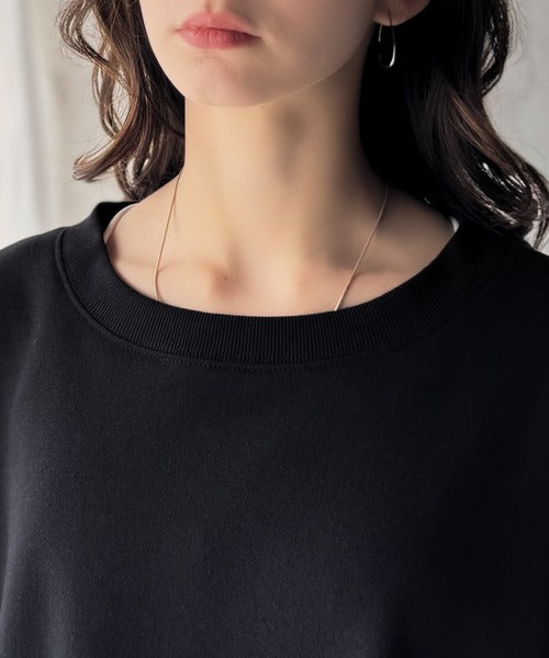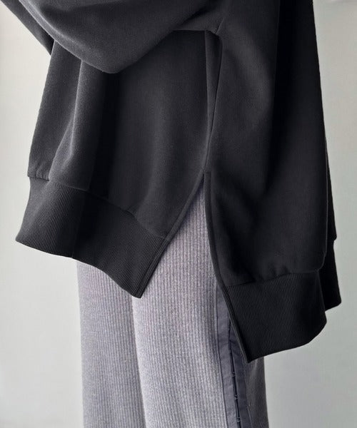 裾の太めリブでメリハリを効かせ、ゆるっと着てもだらしなく見えないのが嬉しいポイント。