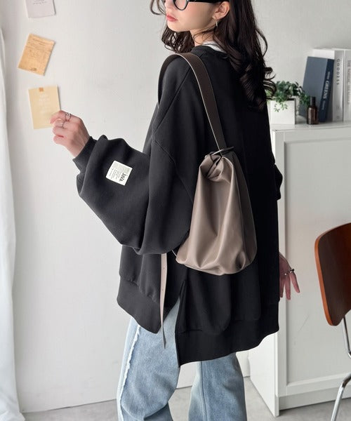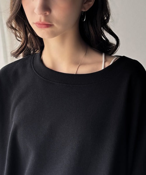 ネックラインが広めなので、首周りや鎖骨をすっきり見せてワンショル風に着こなすのも今っぽい◎