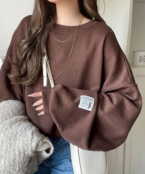 ぽわんとしたボリューム袖にはブランドタグをあしらい、