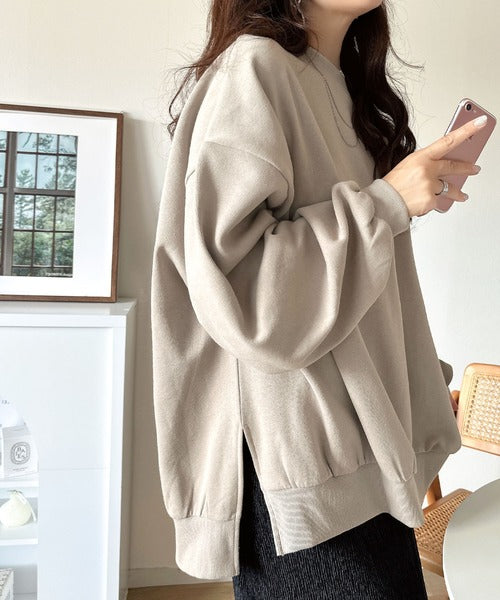 張り感のある裏起毛素材で秋冬は暖かく、春先は軽やかに1枚で着こなせます。
