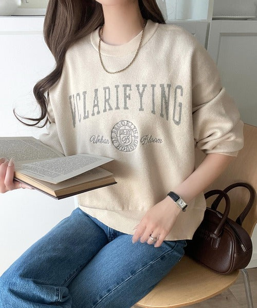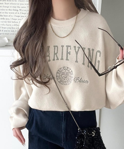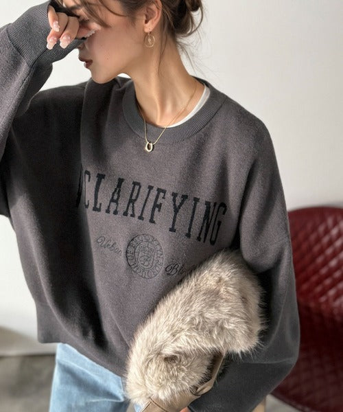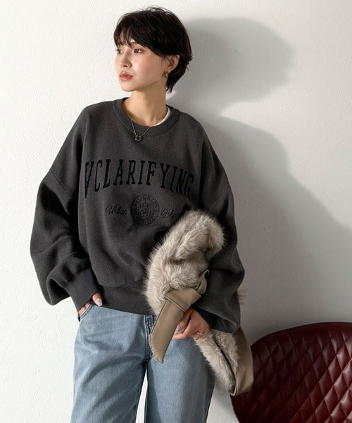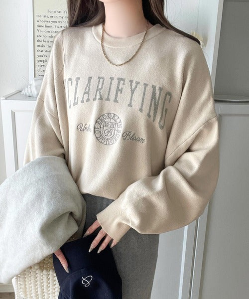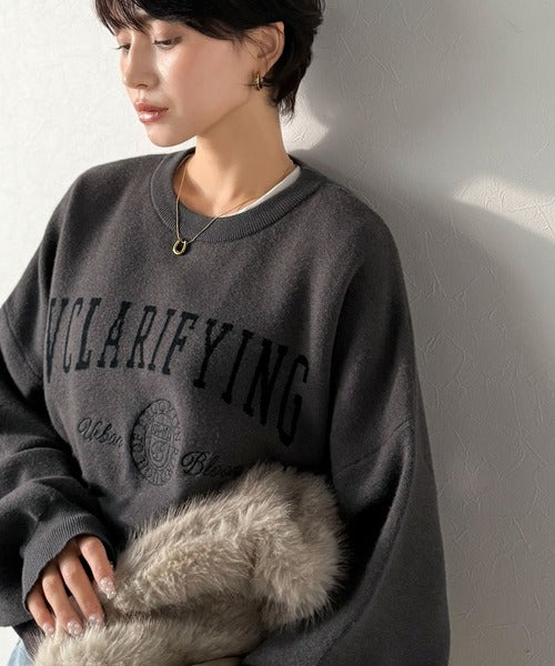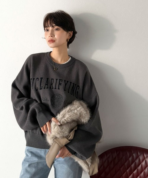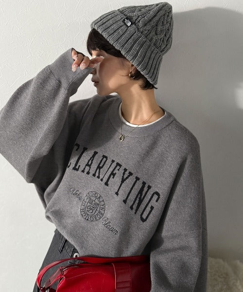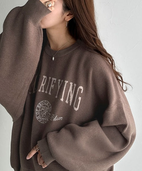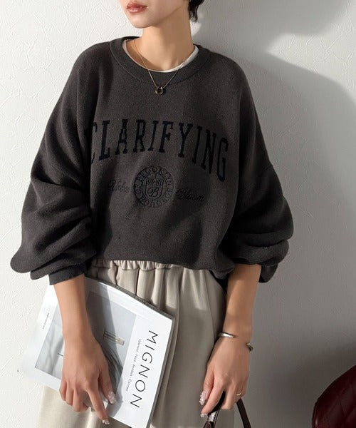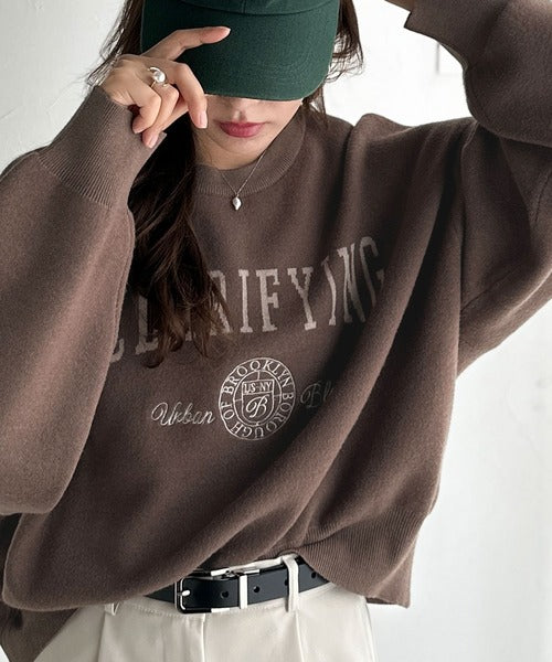 カレッジスタイルで秋めく。トレンド感たっぷりのエンブレムロゴ入りダブルジャガードニットプルオーバー ce1260491