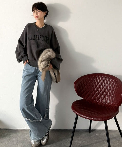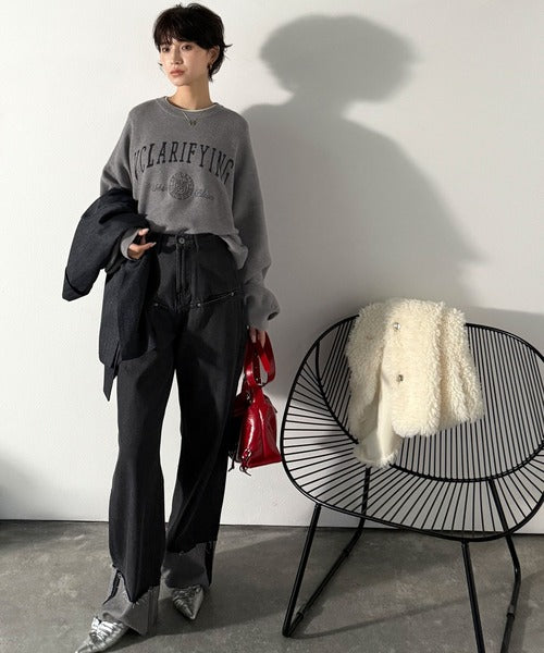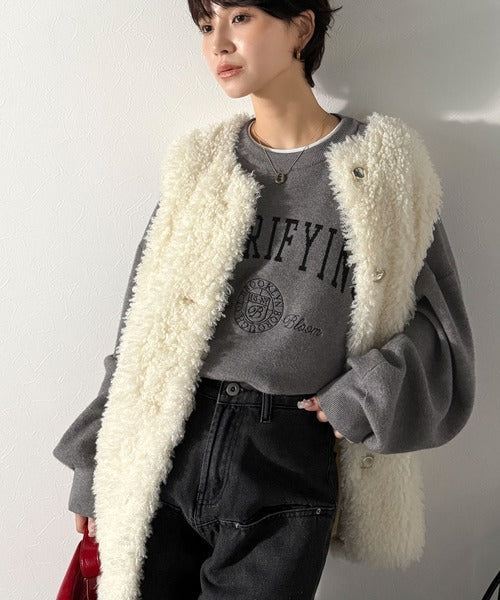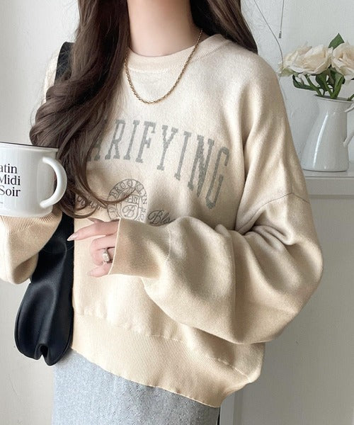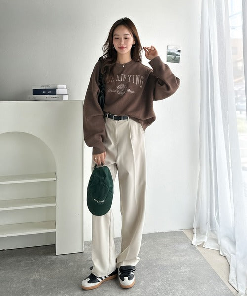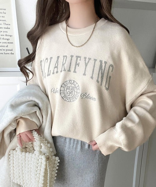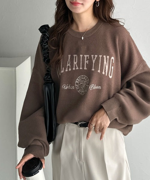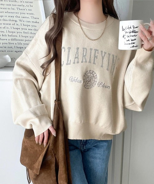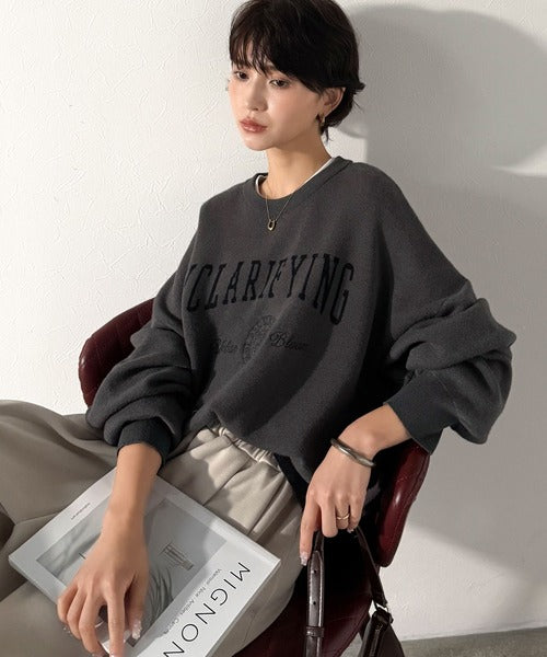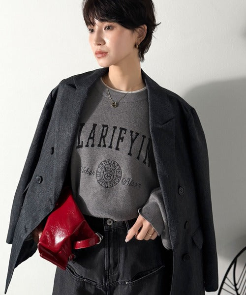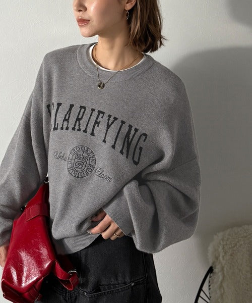 カレッジスタイルで秋めく。トレンド感たっぷりのエンブレムロゴ入りダブルジャガードニットプルオーバー ce1260491
