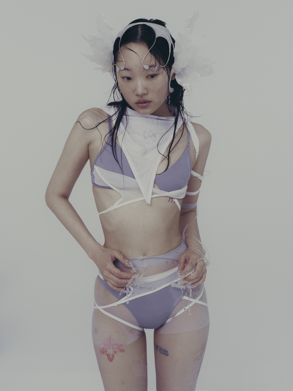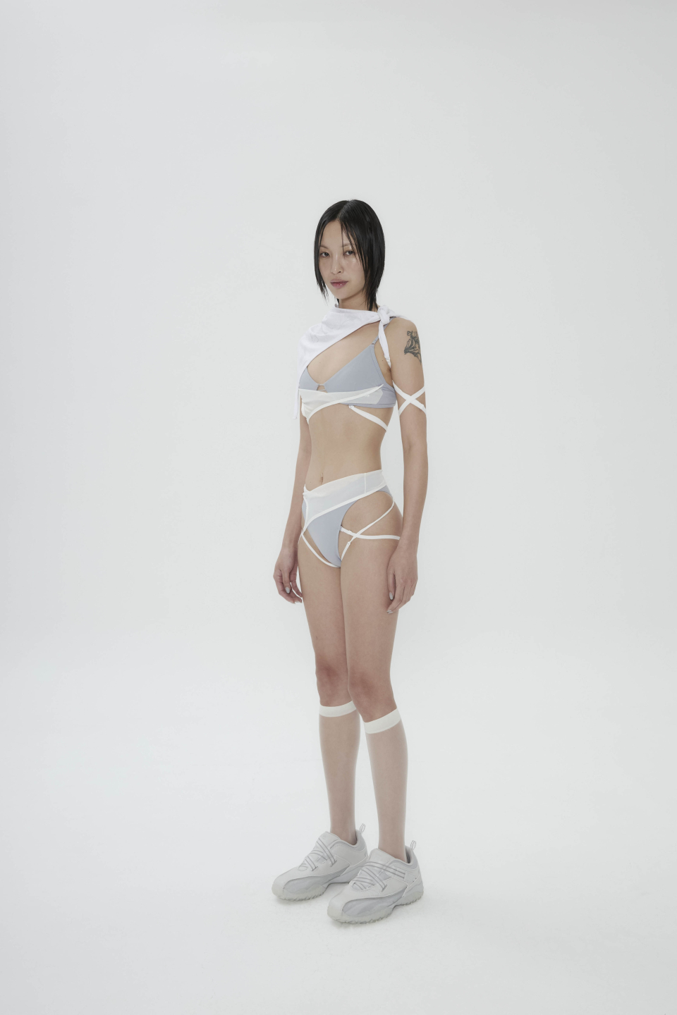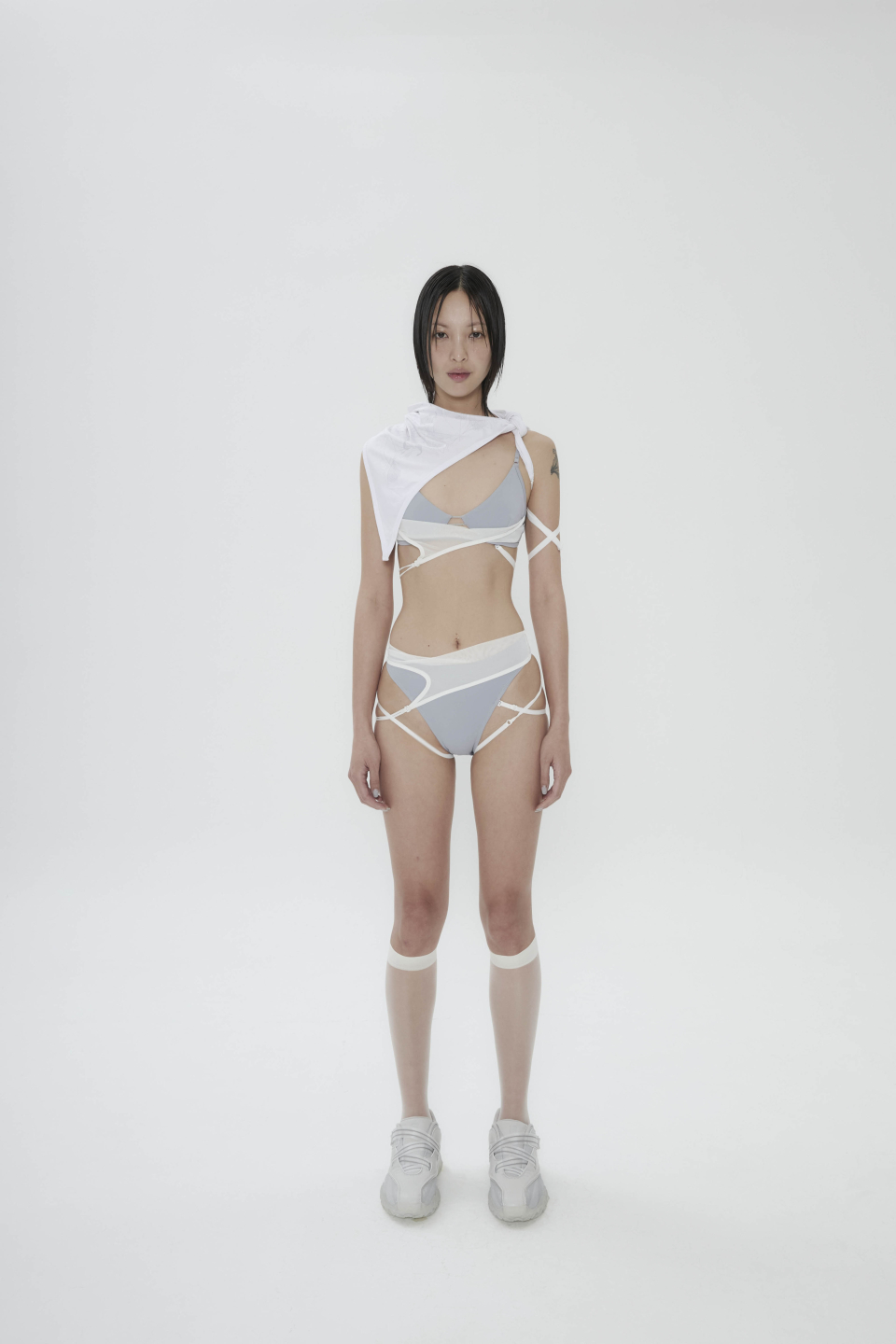 Layered Mesh Strap Bikini / Grey