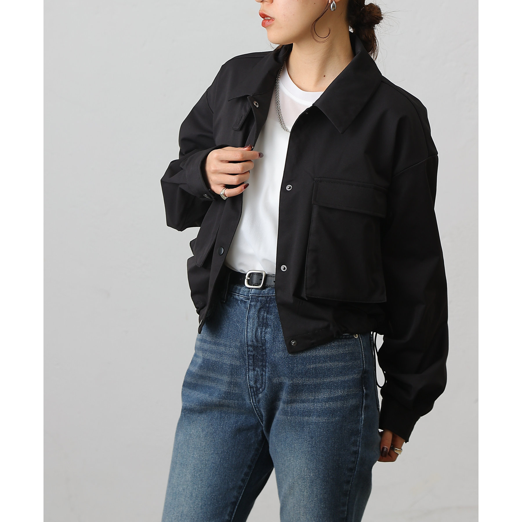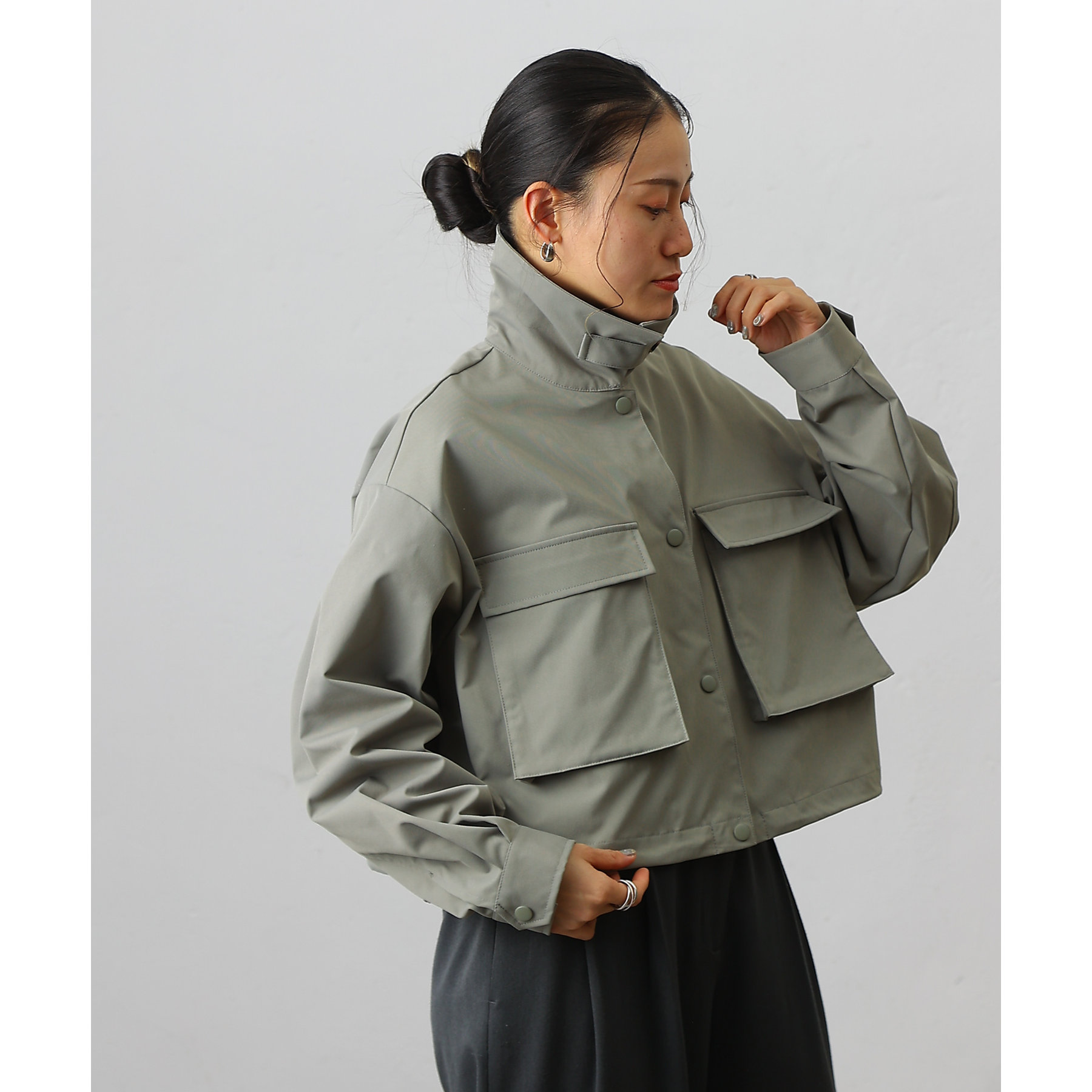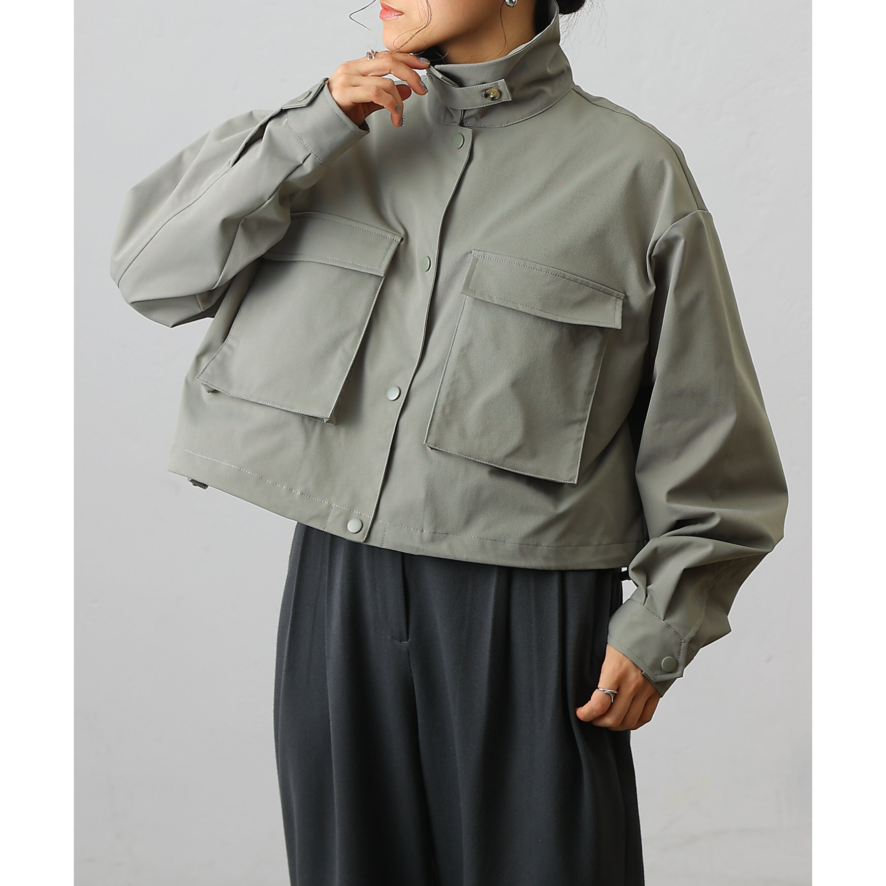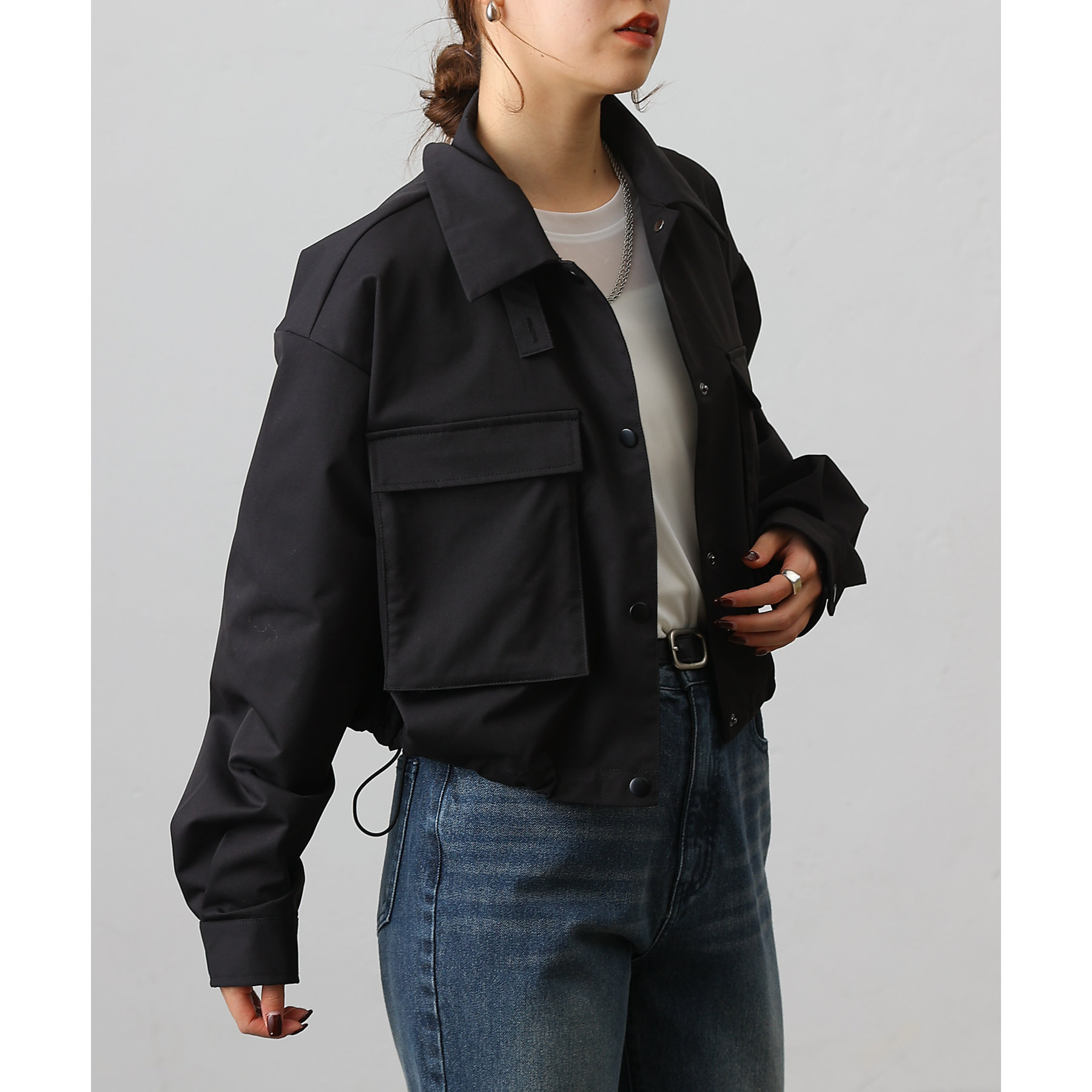フロント部分の大きめポケットが印象的なショートブルゾン