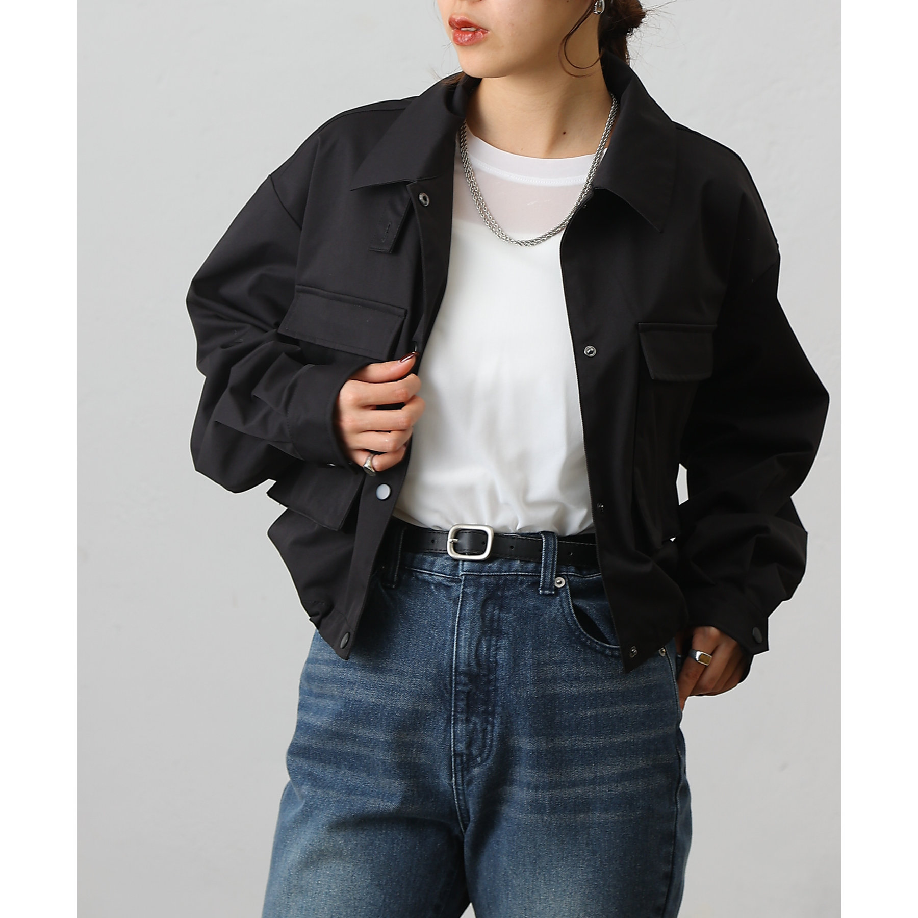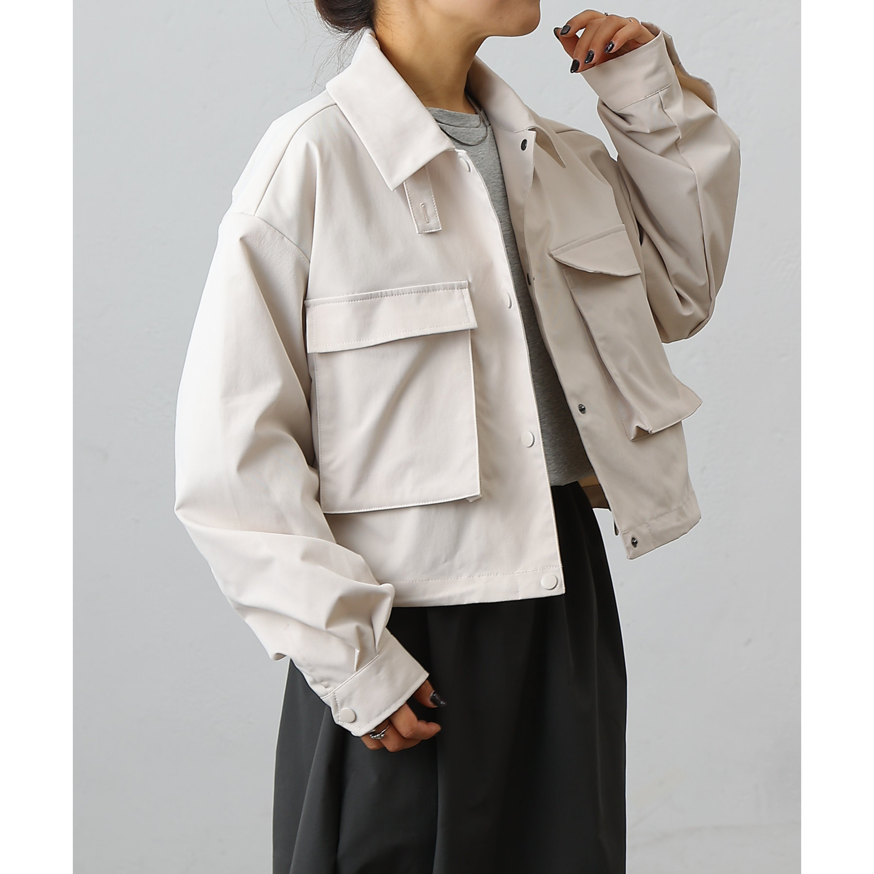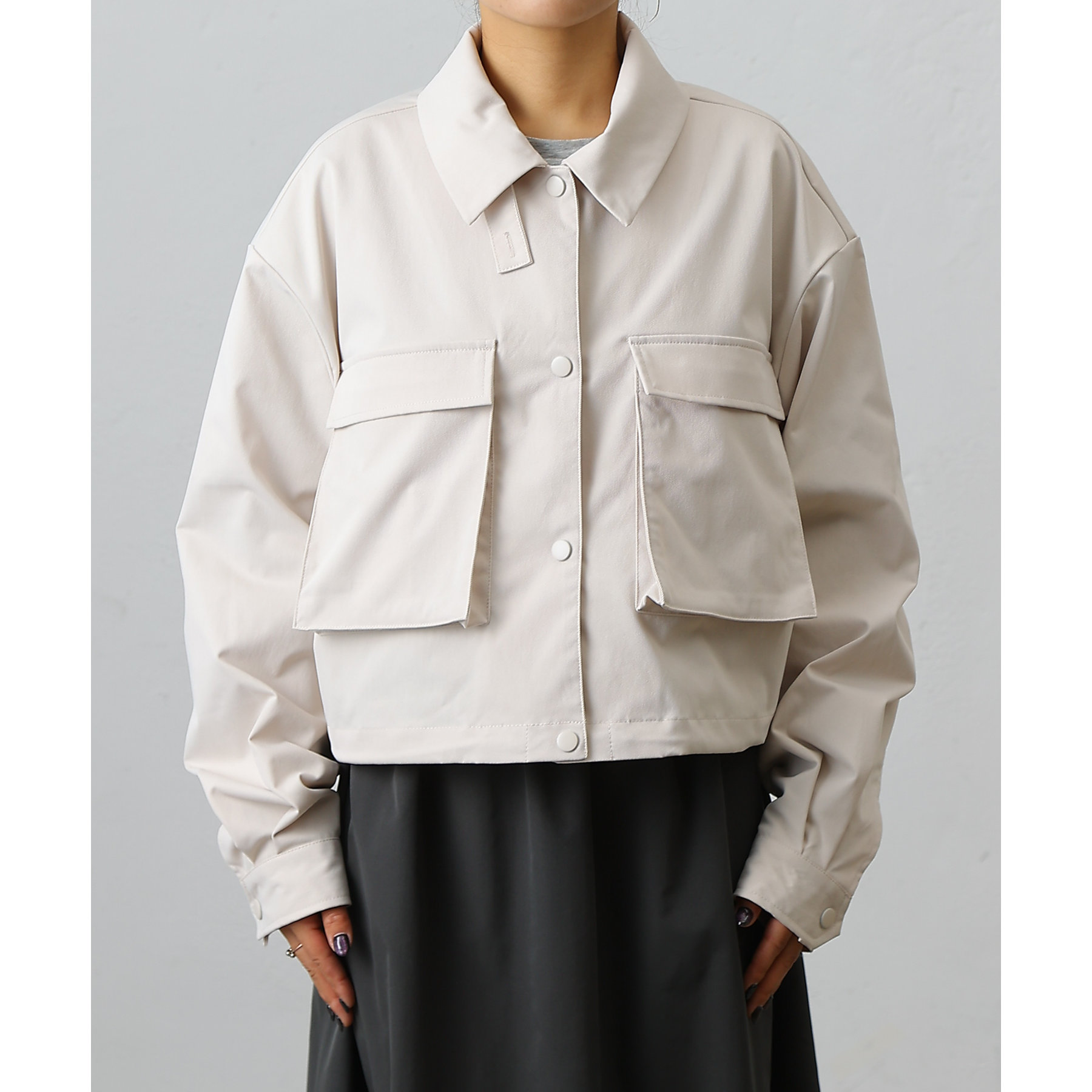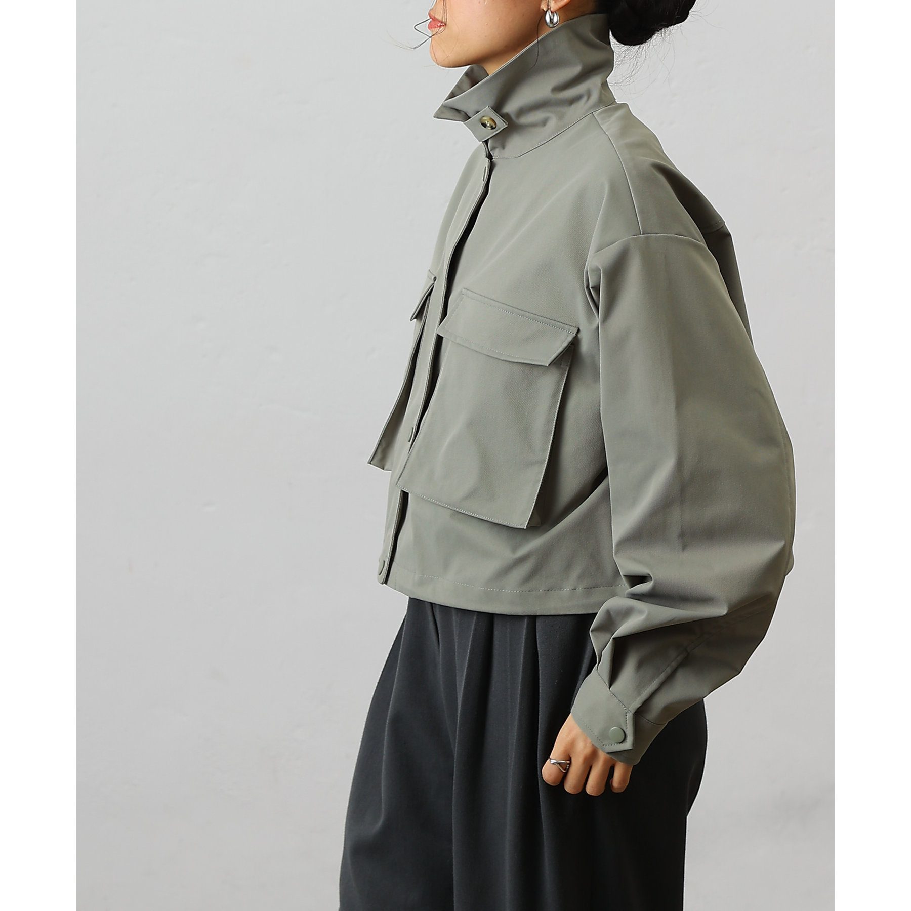 フロント部分の大きめポケットが印象的なショートブルゾン