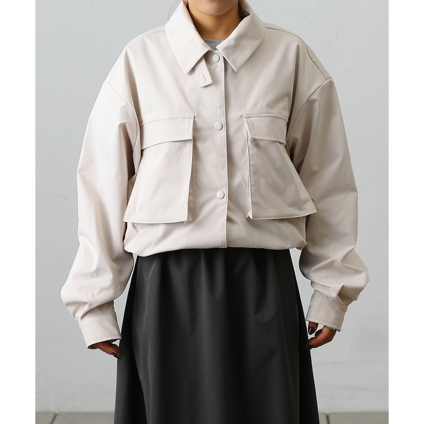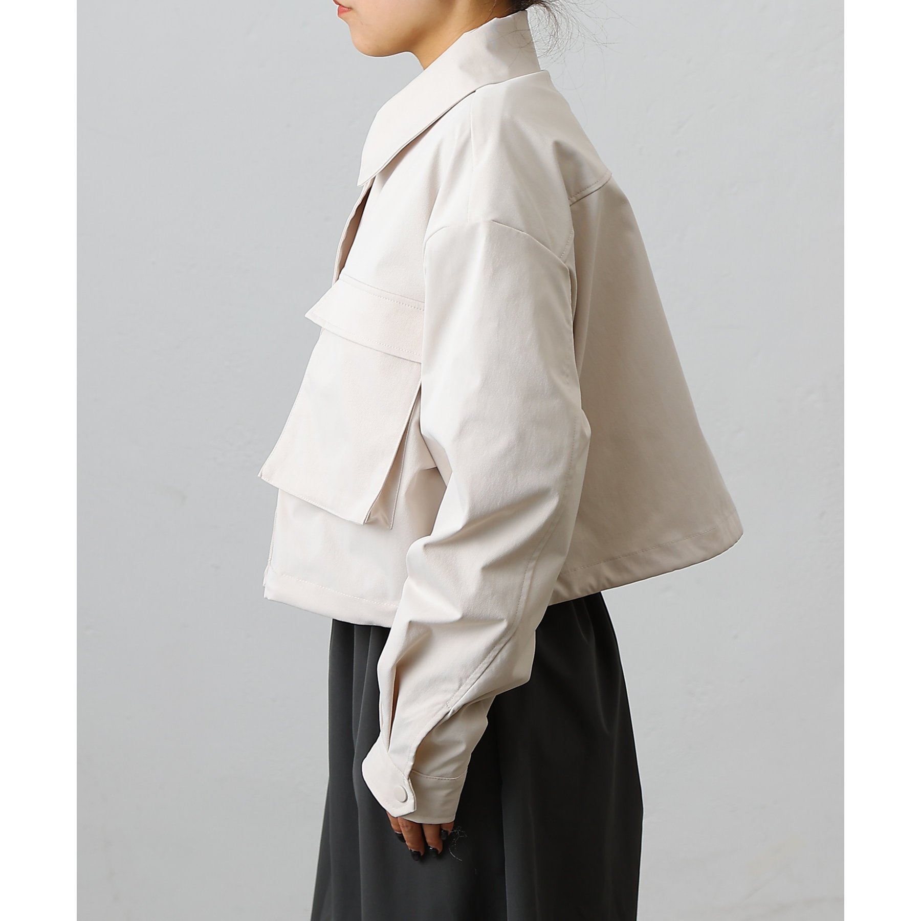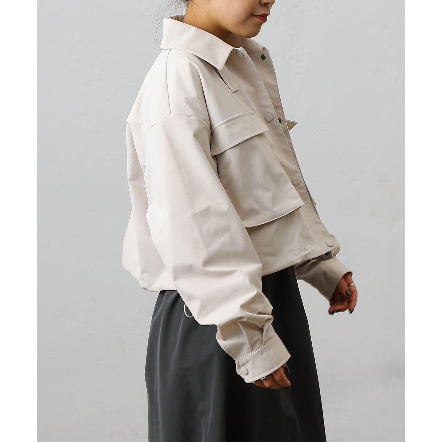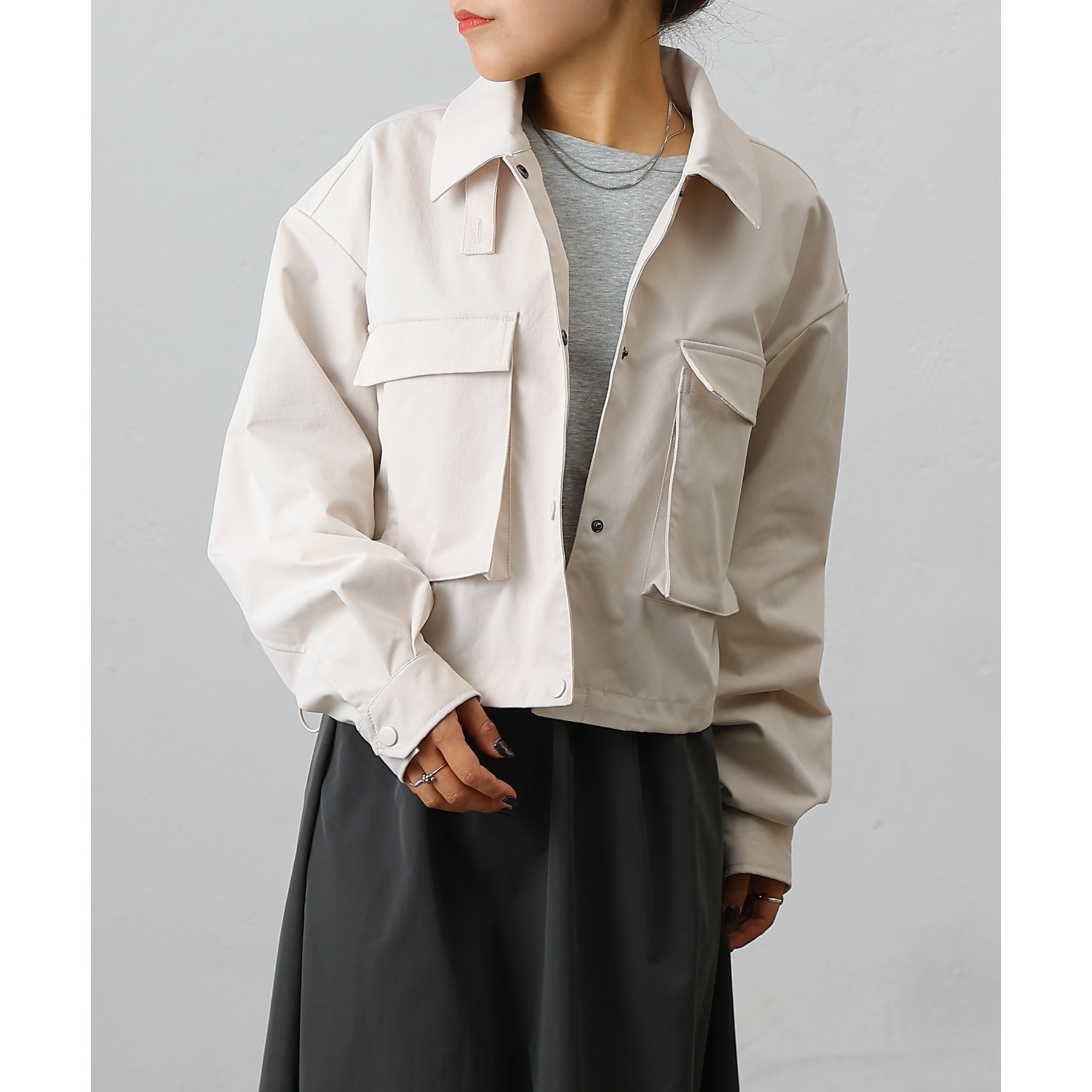 フロント部分の大きめポケットが印象的なショートブルゾン