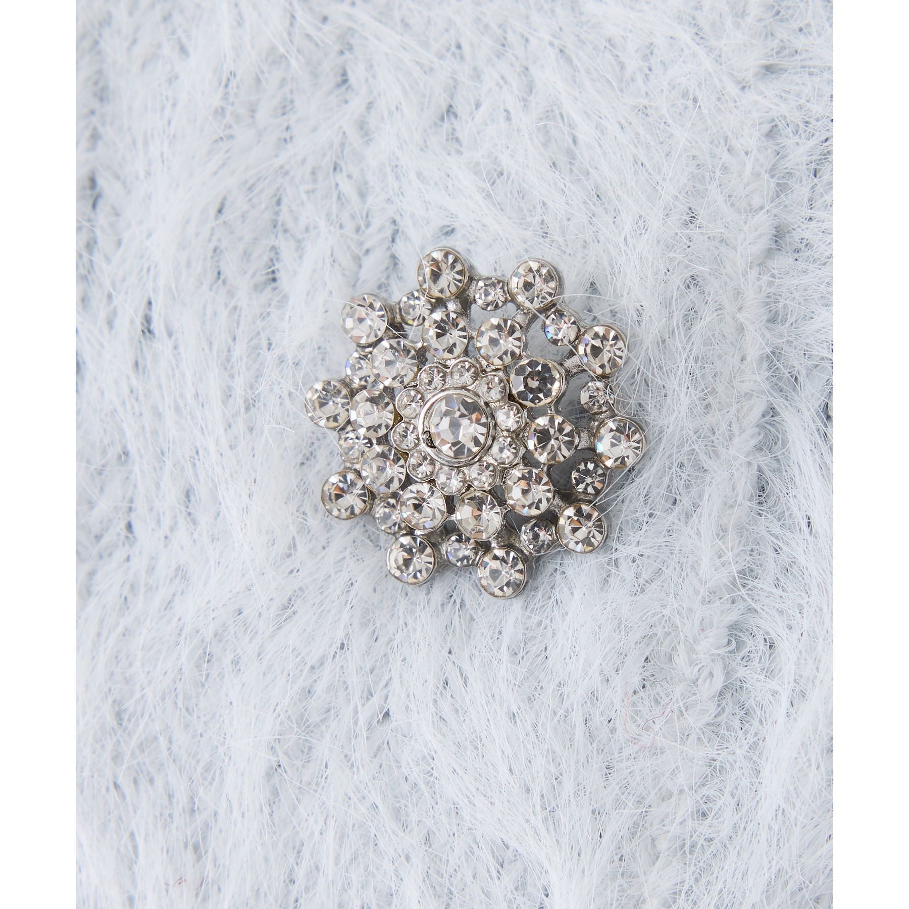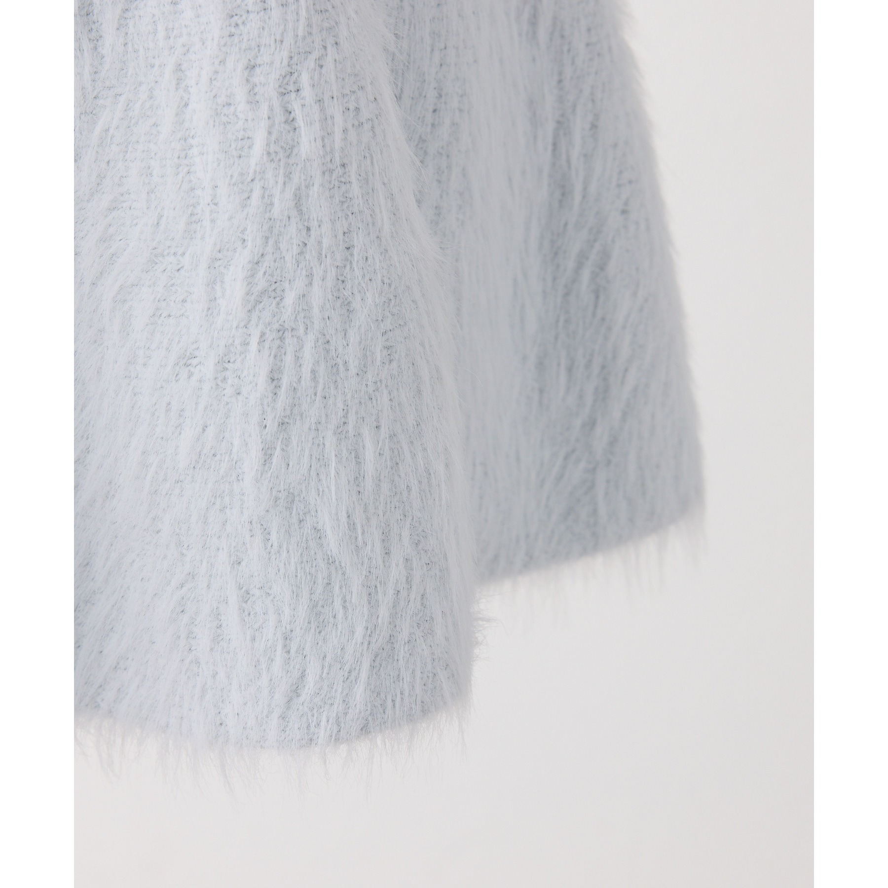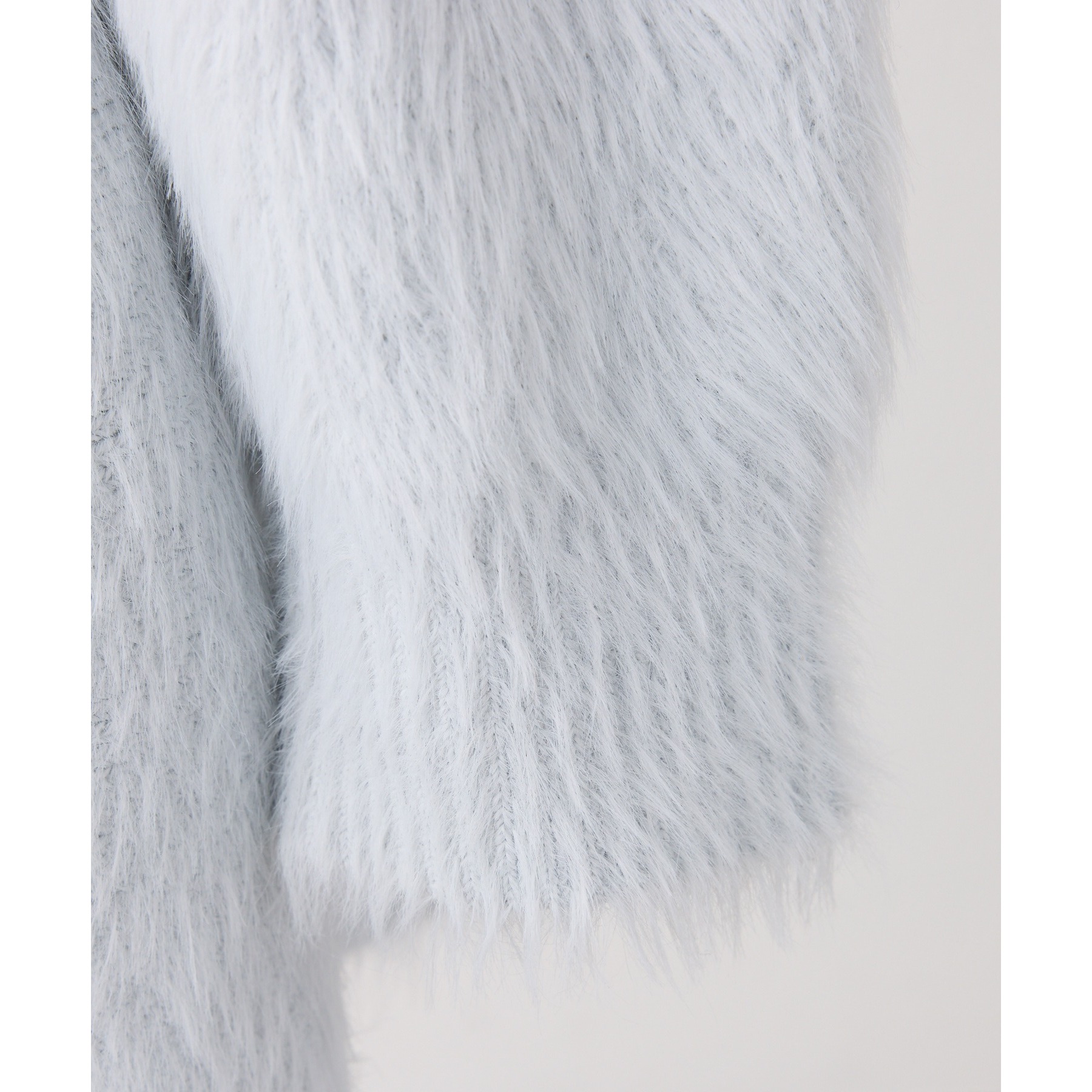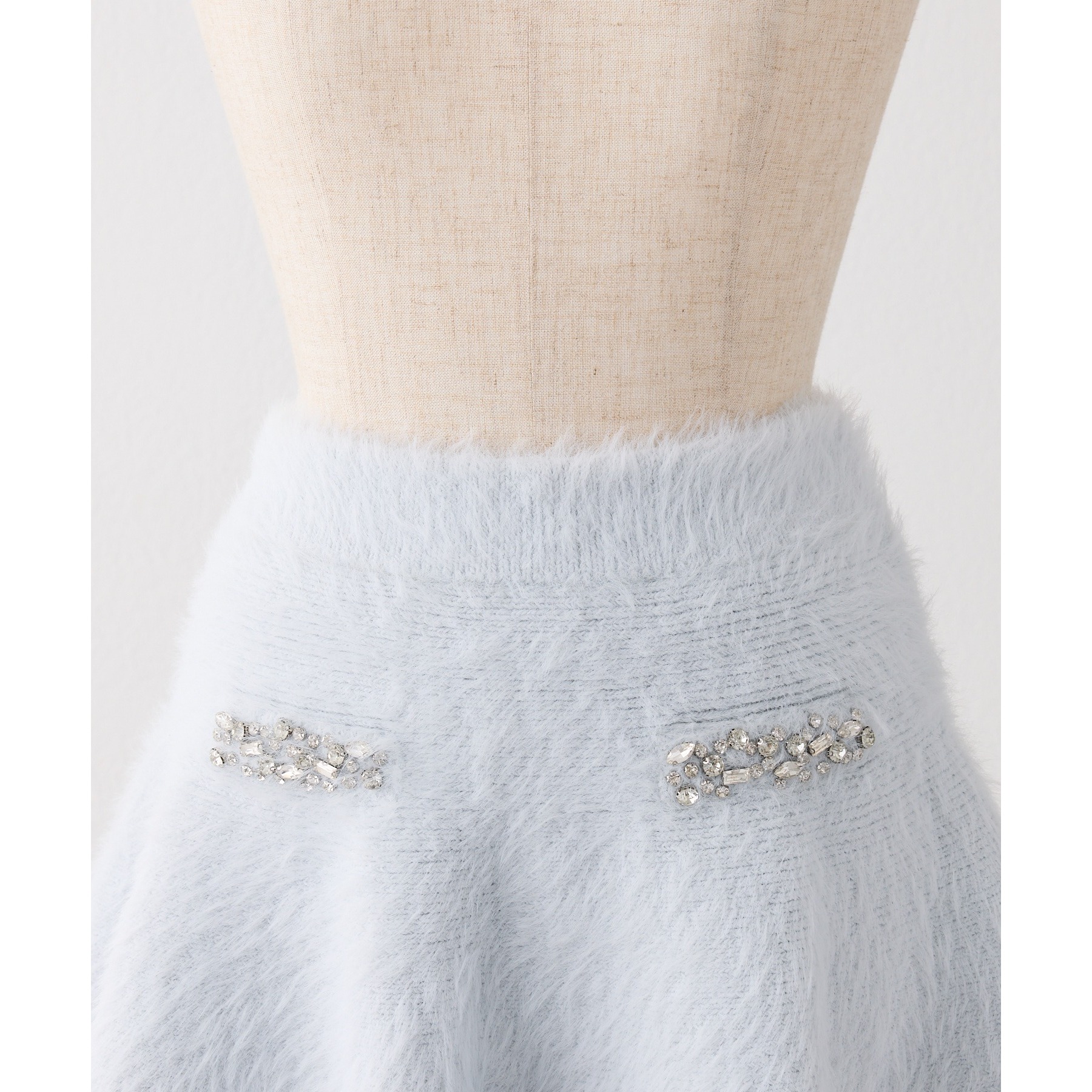 ふわふわのフェザー襟にキラキラのビジューをあしらった華やかなニットと、