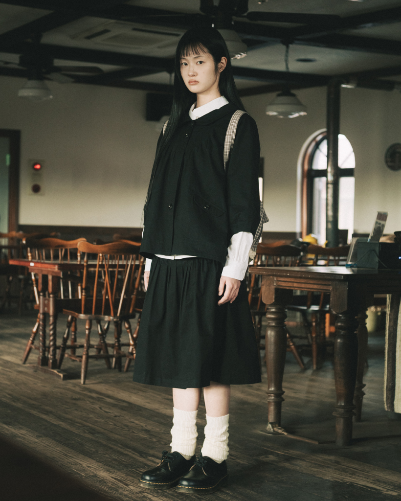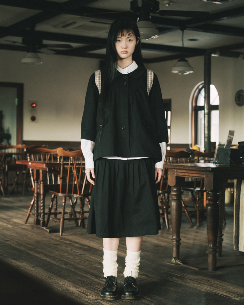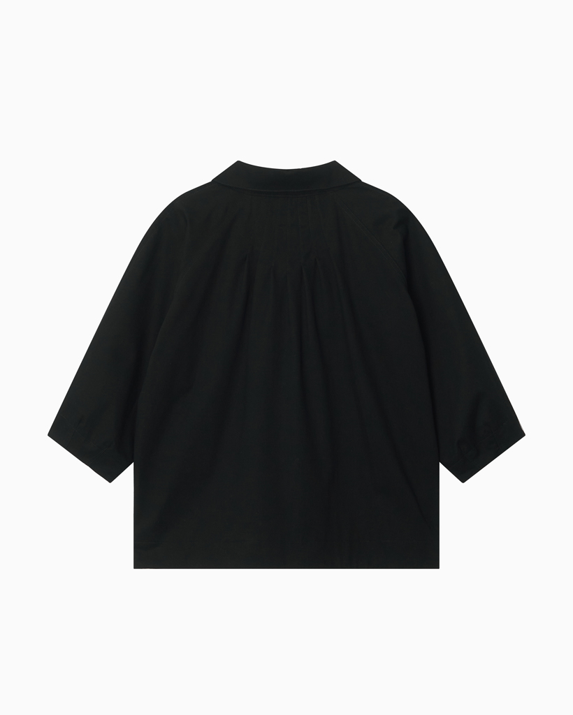 ROUNDED COLLAR COTTON JACKET, BLACK