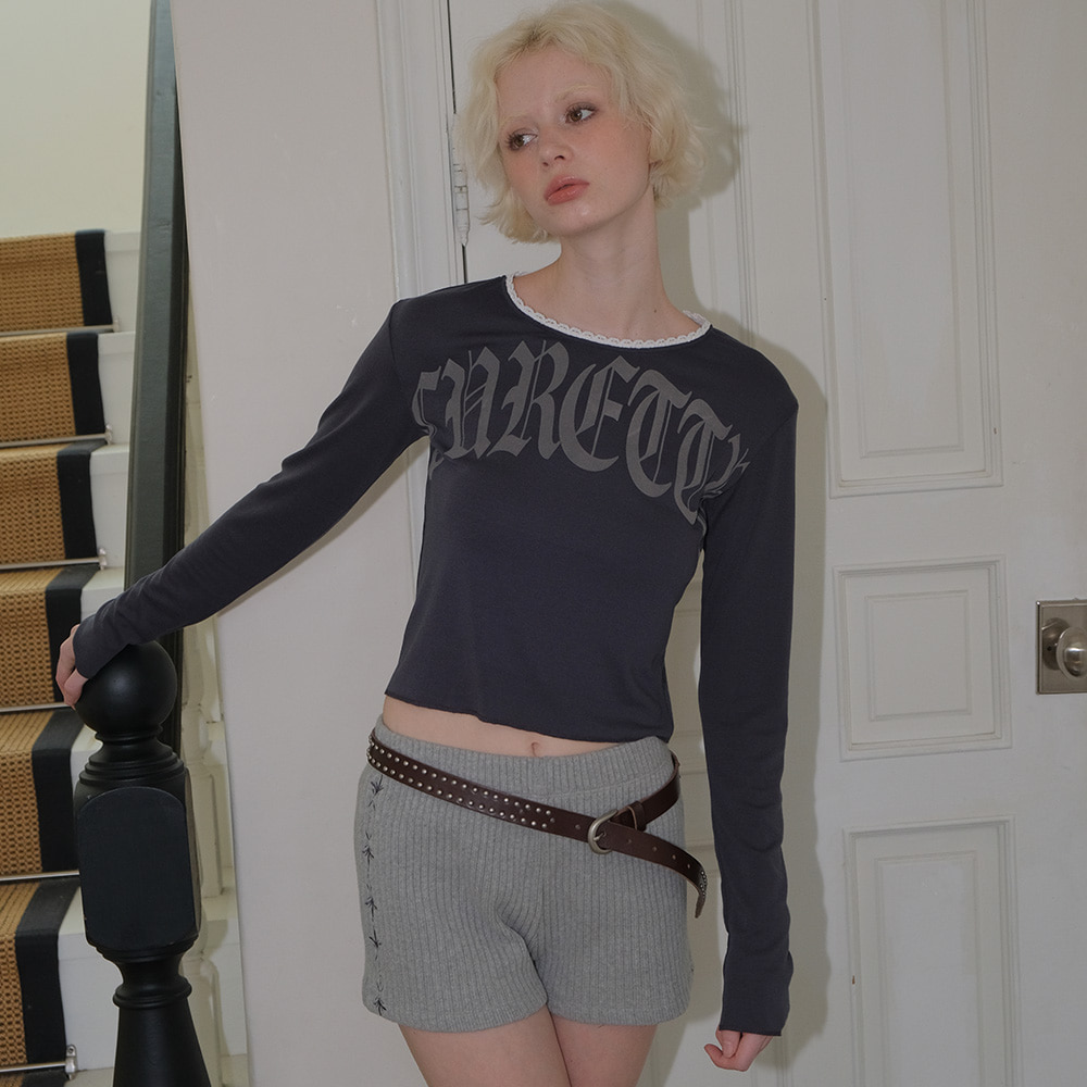 C LACE NECK LOGO T-SHIRT_CHARCOAL