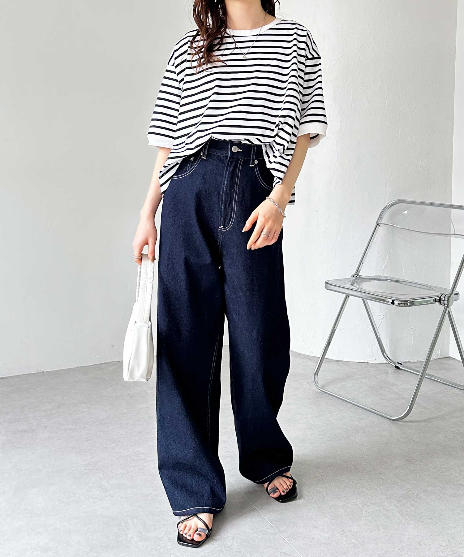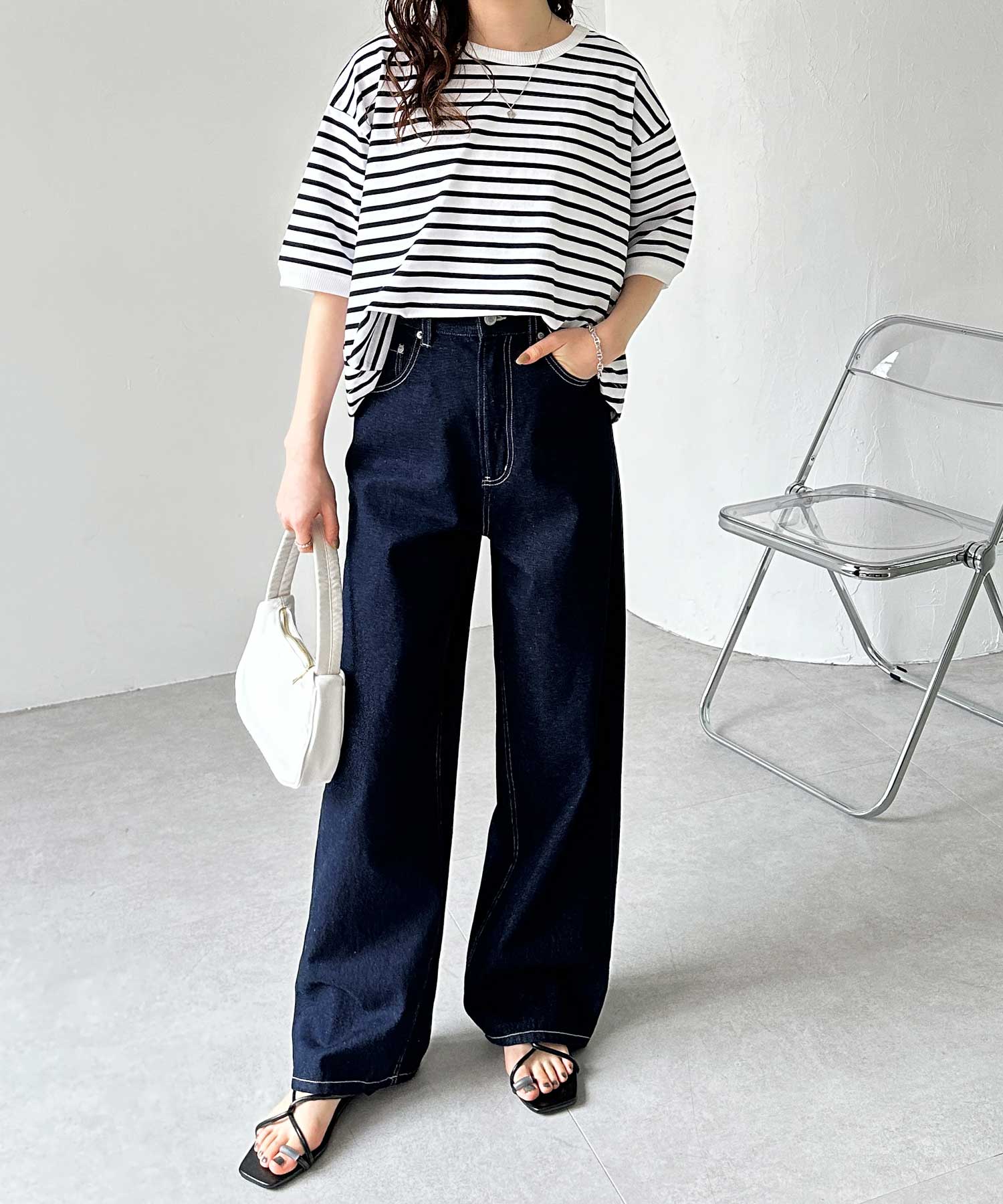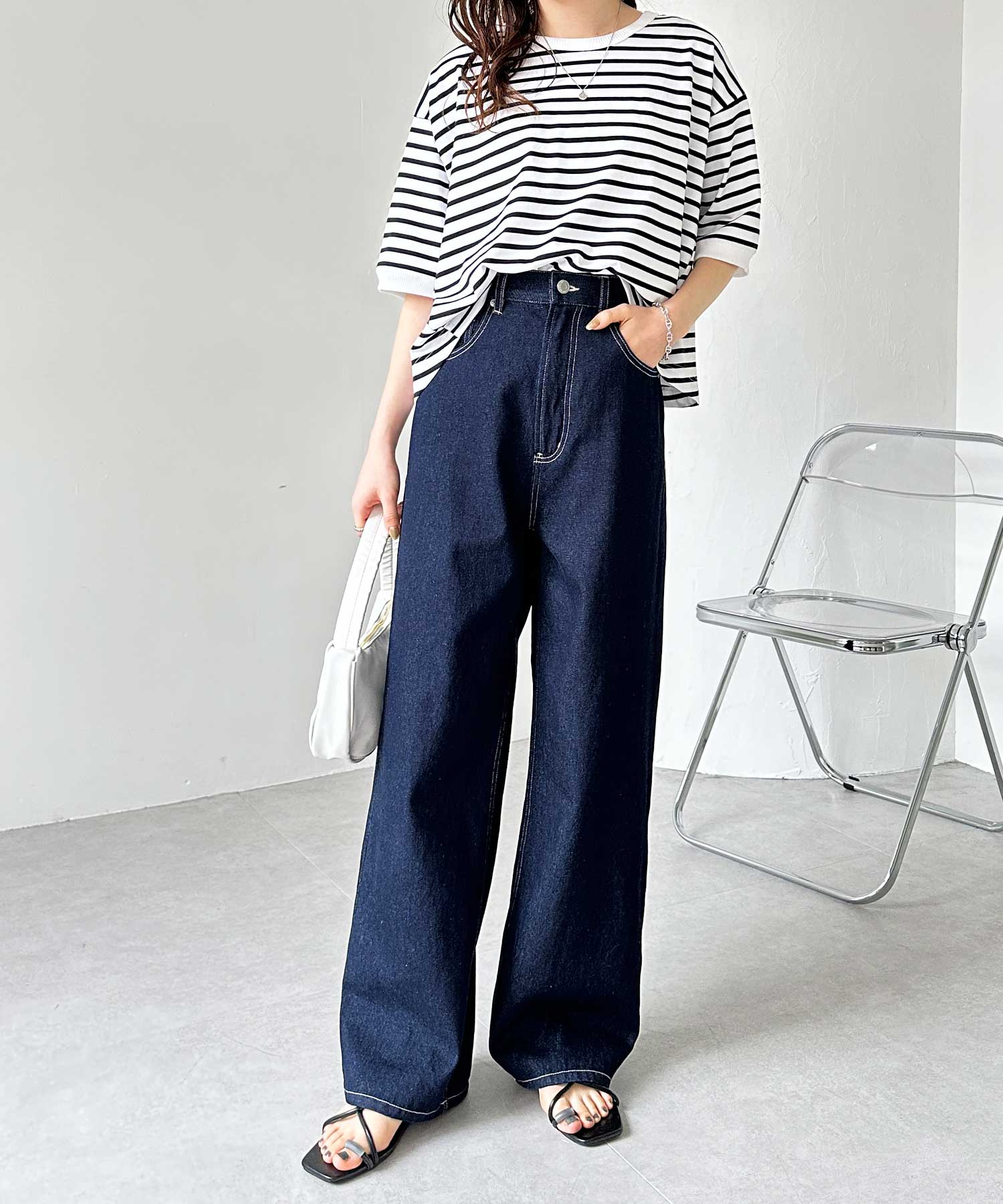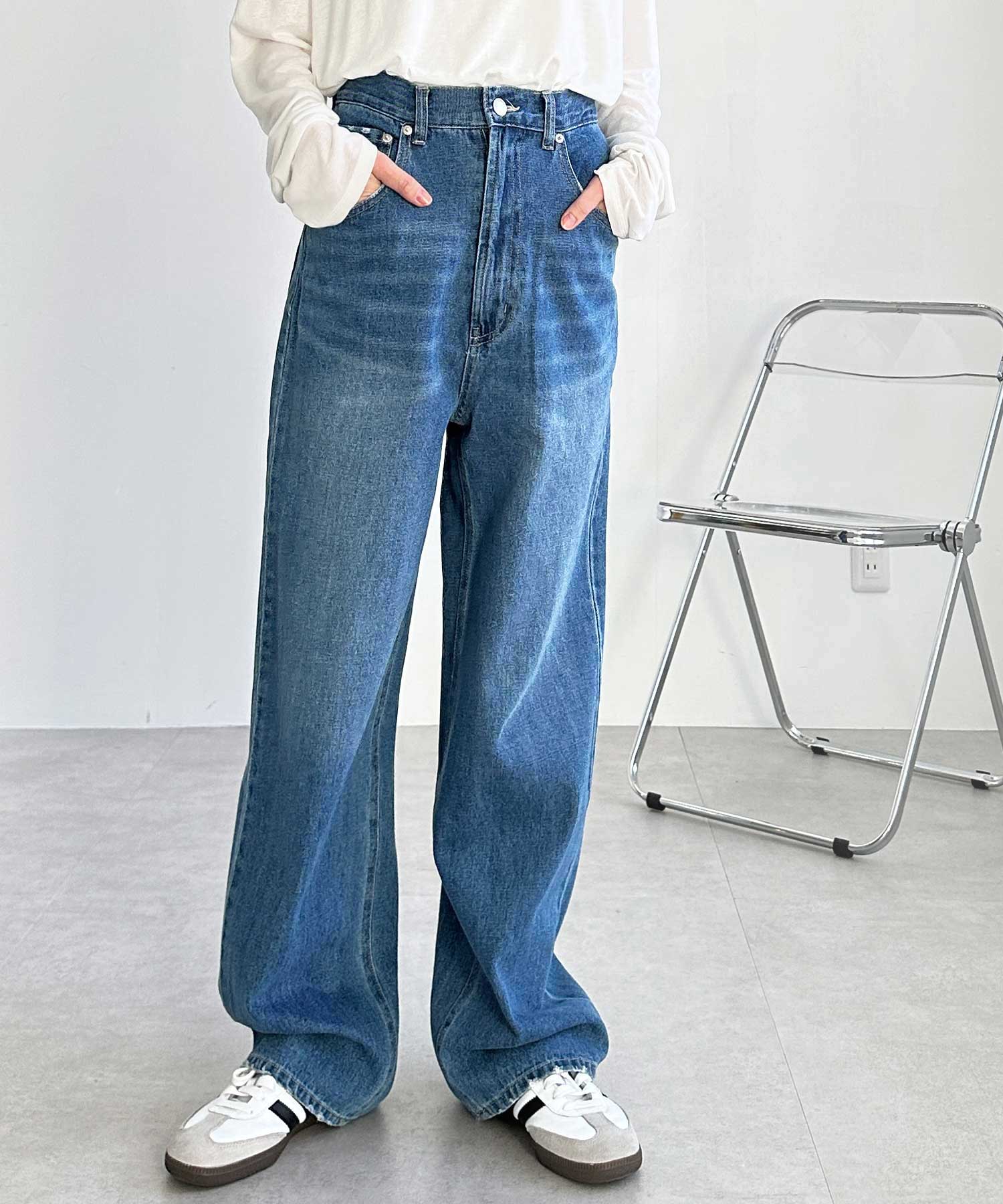 程よいゆとりのあるストレートワイドデニムだから、きれいなシルエットに。