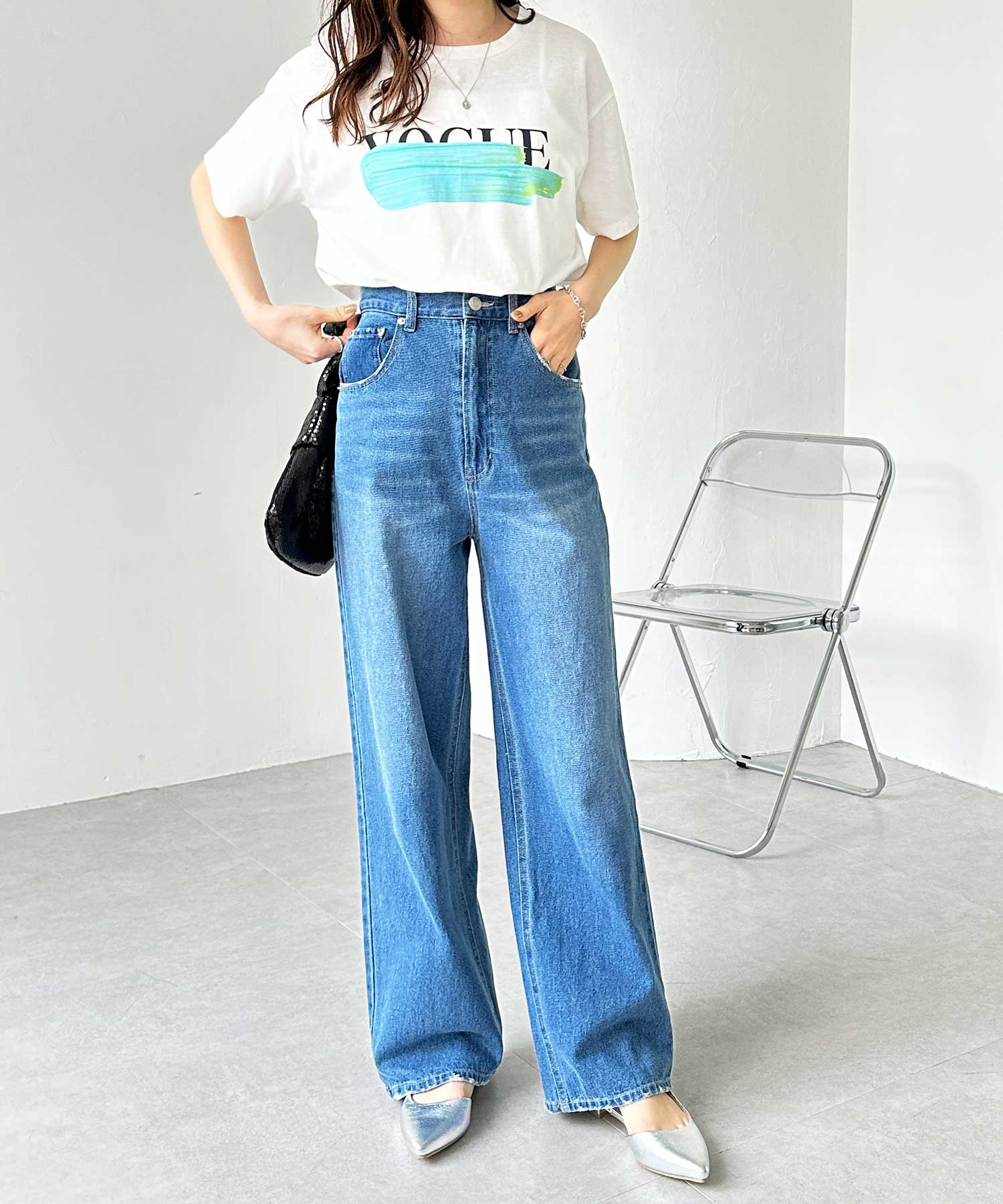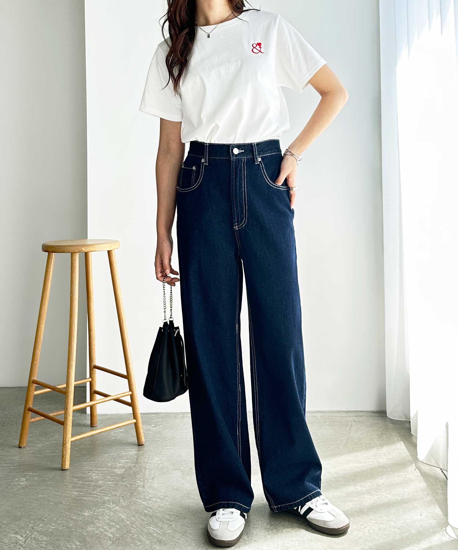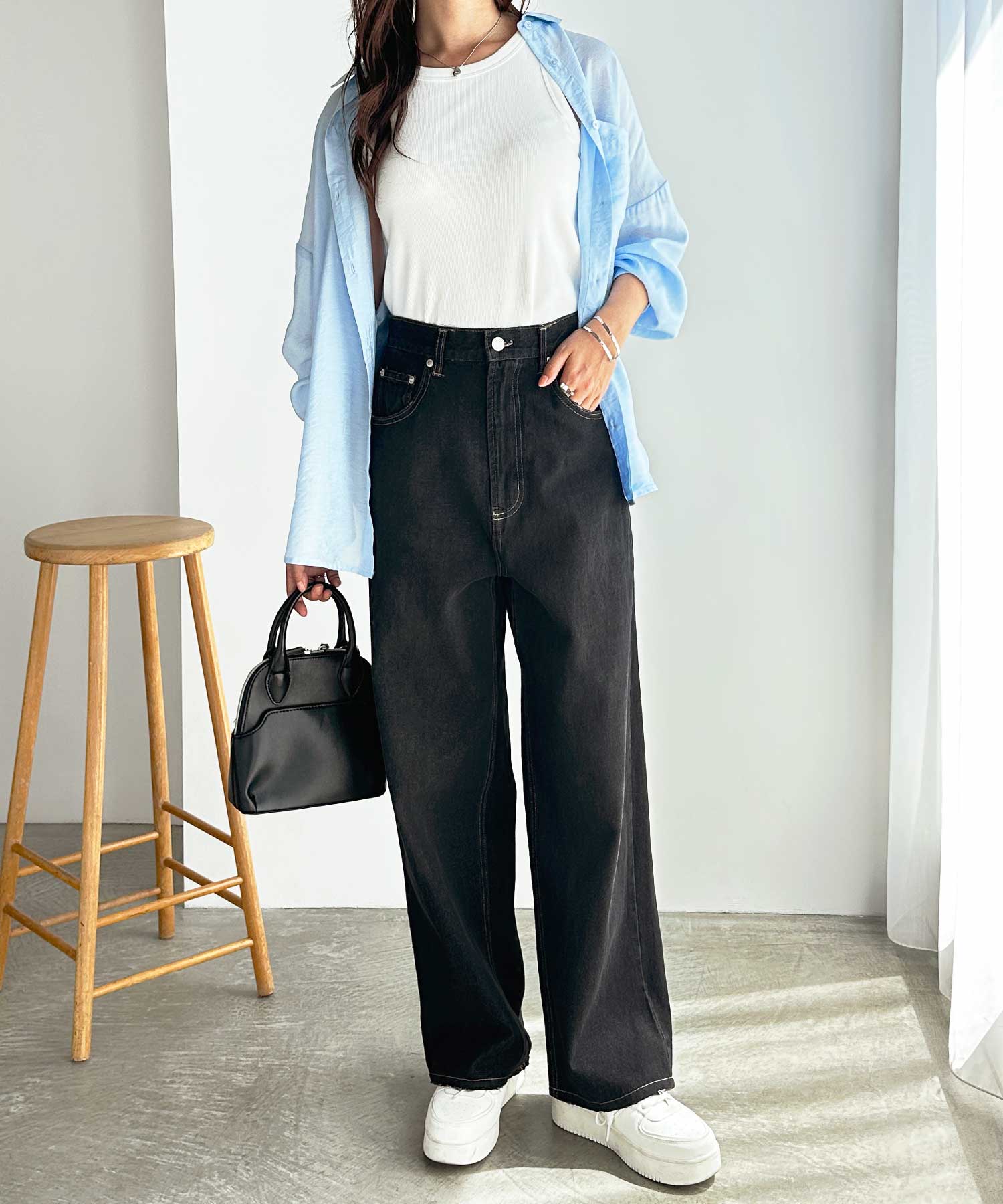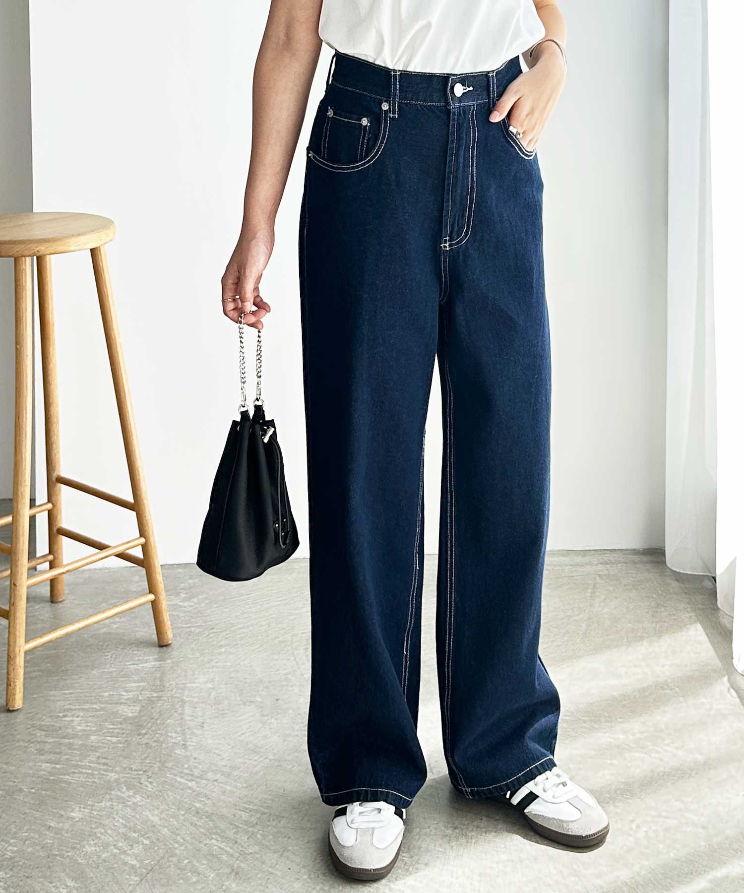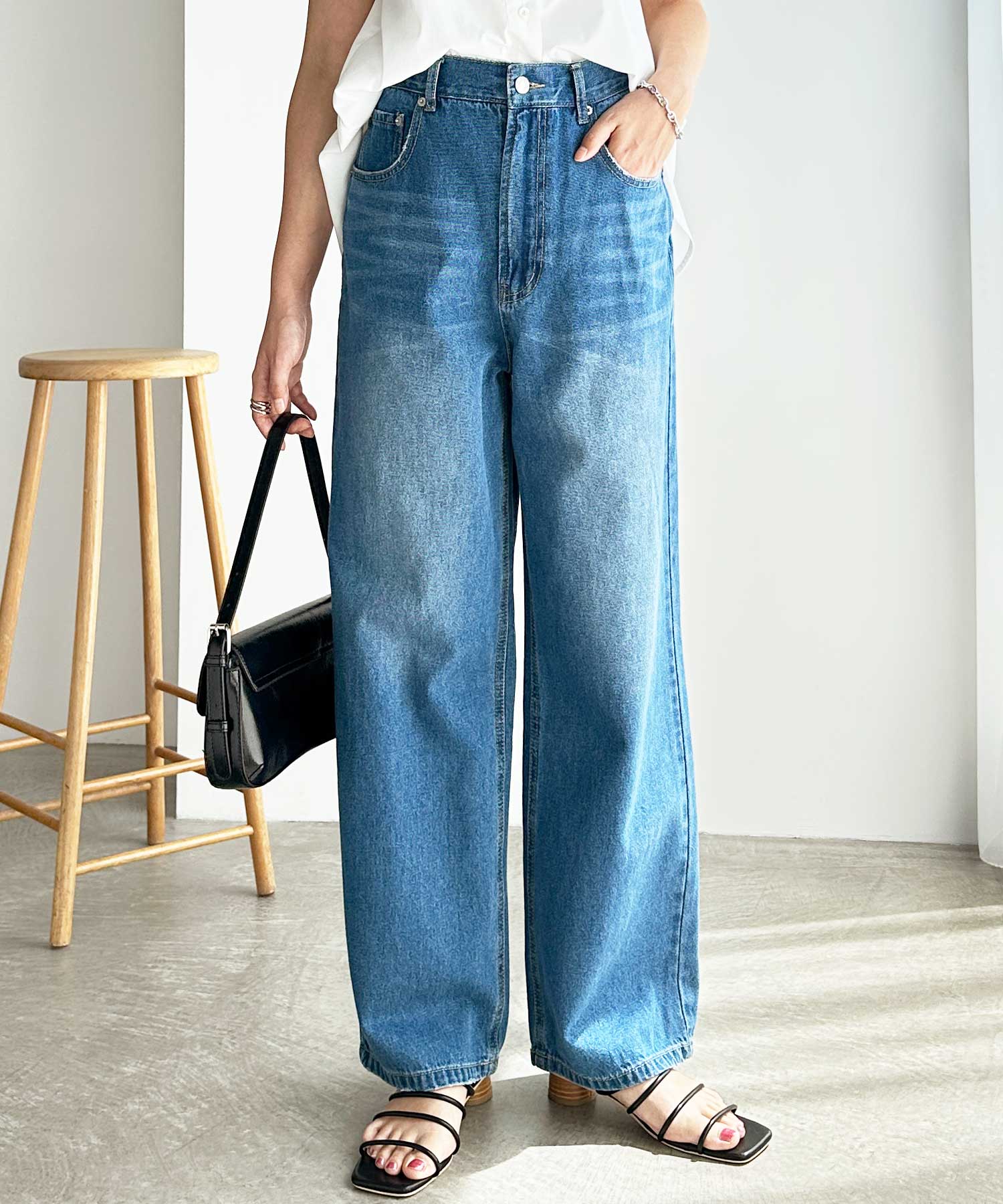 程よいゆとりのあるストレートワイドデニムだから、きれいなシルエットに。