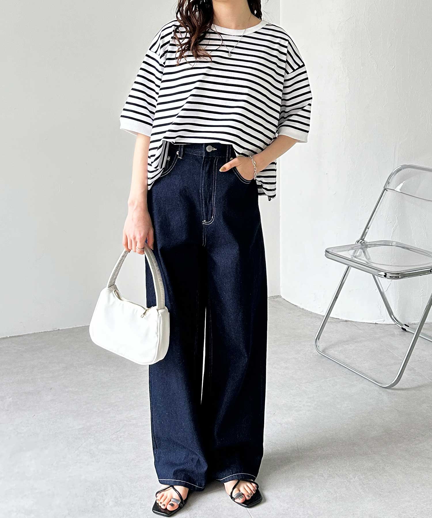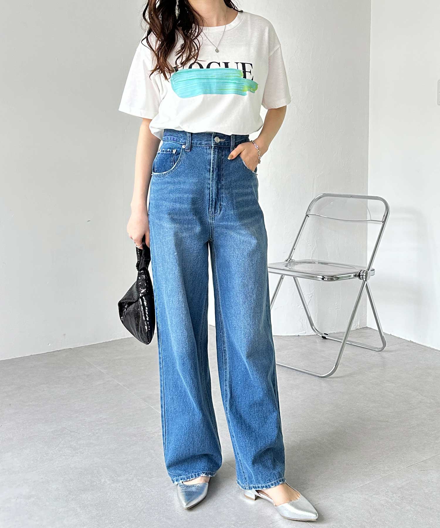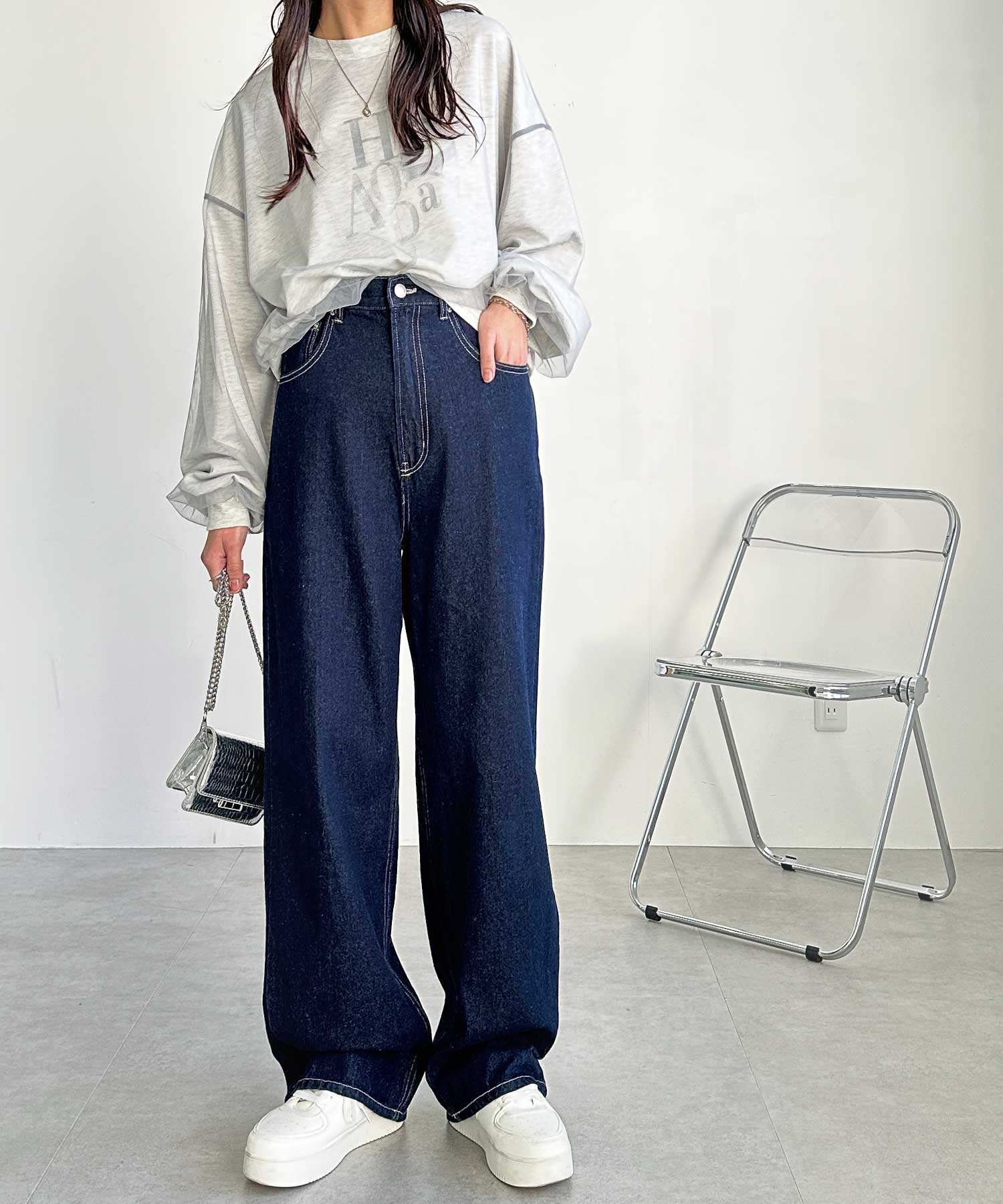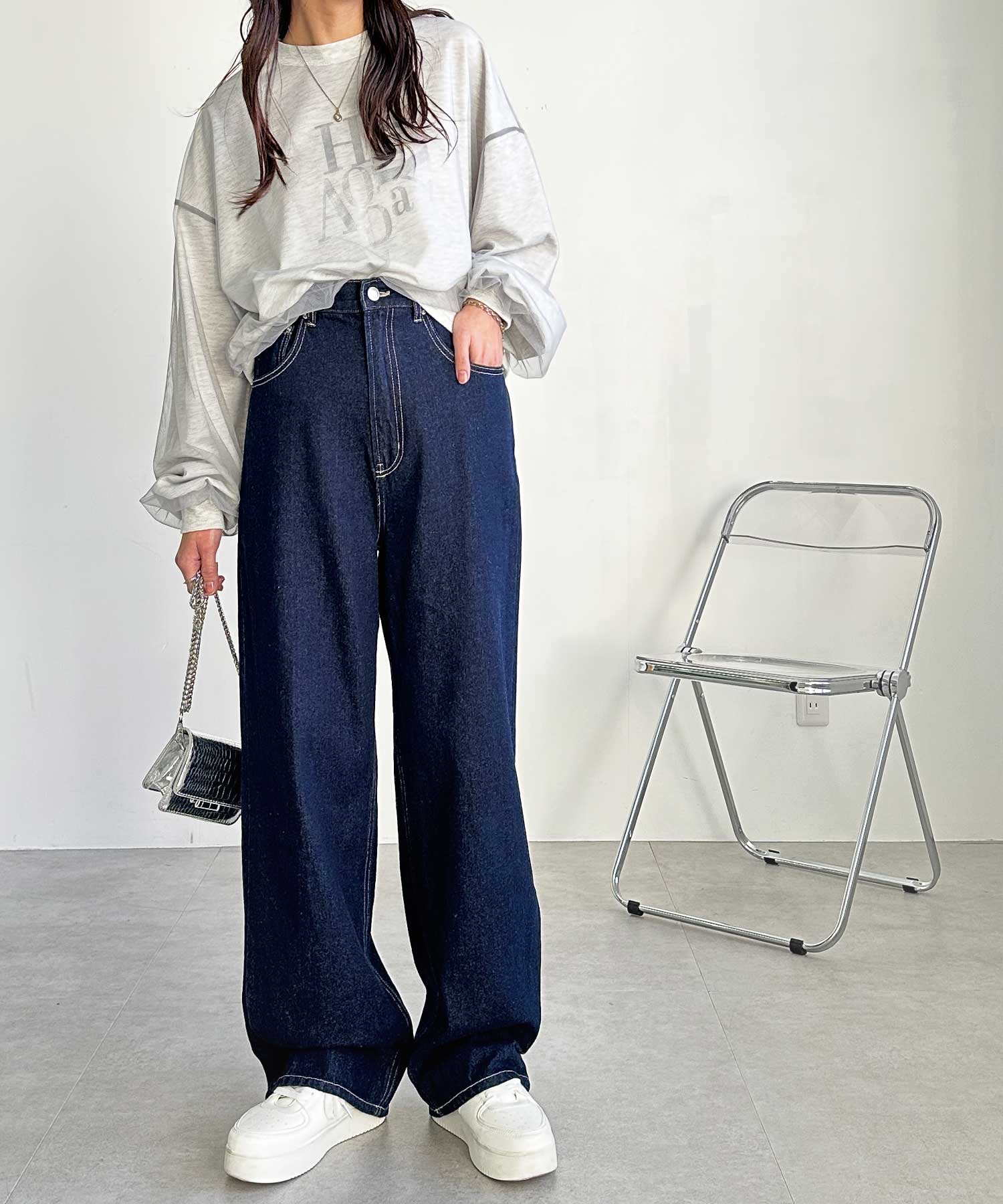 程よいゆとりのあるストレートワイドデニムだから、きれいなシルエットに。