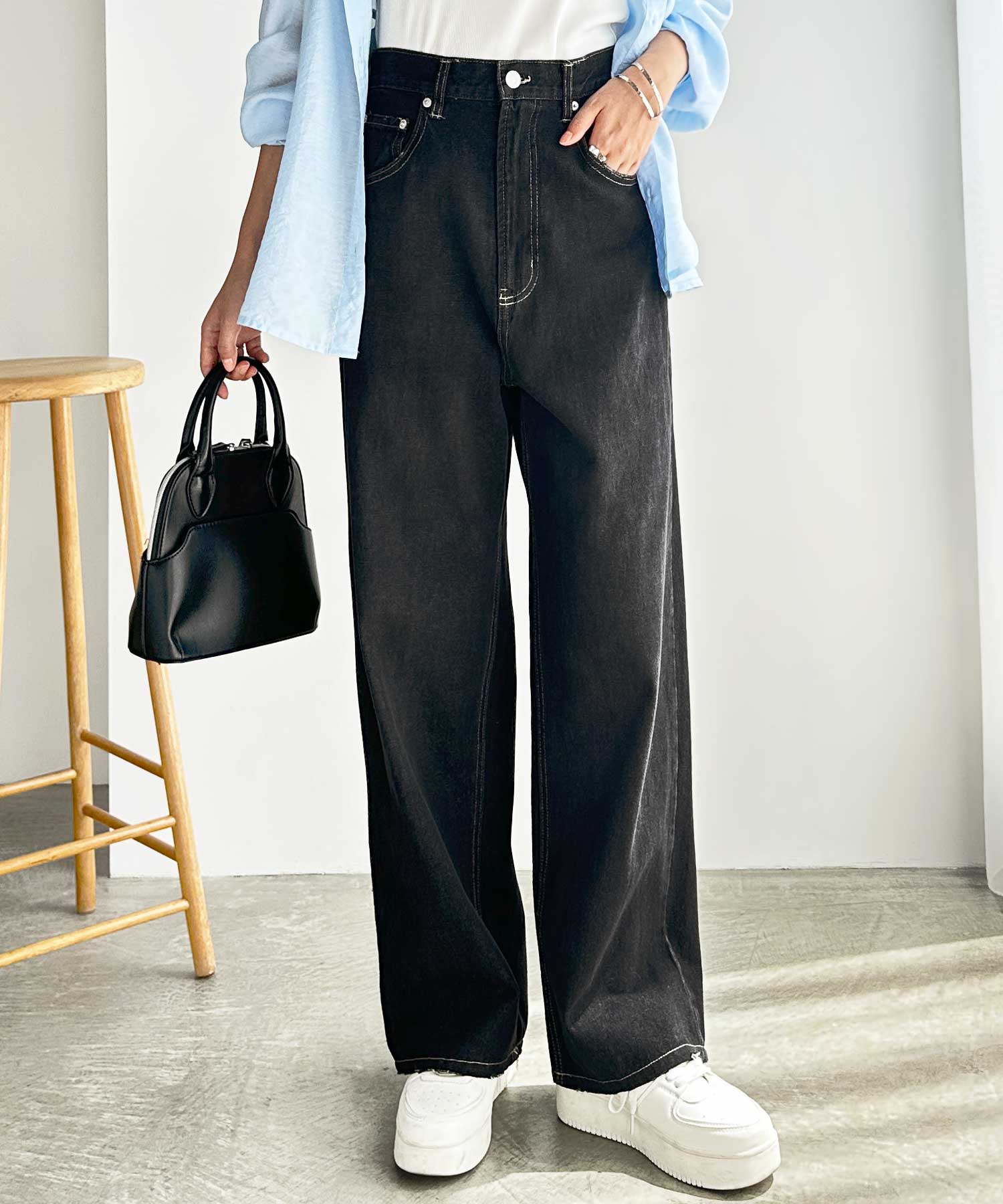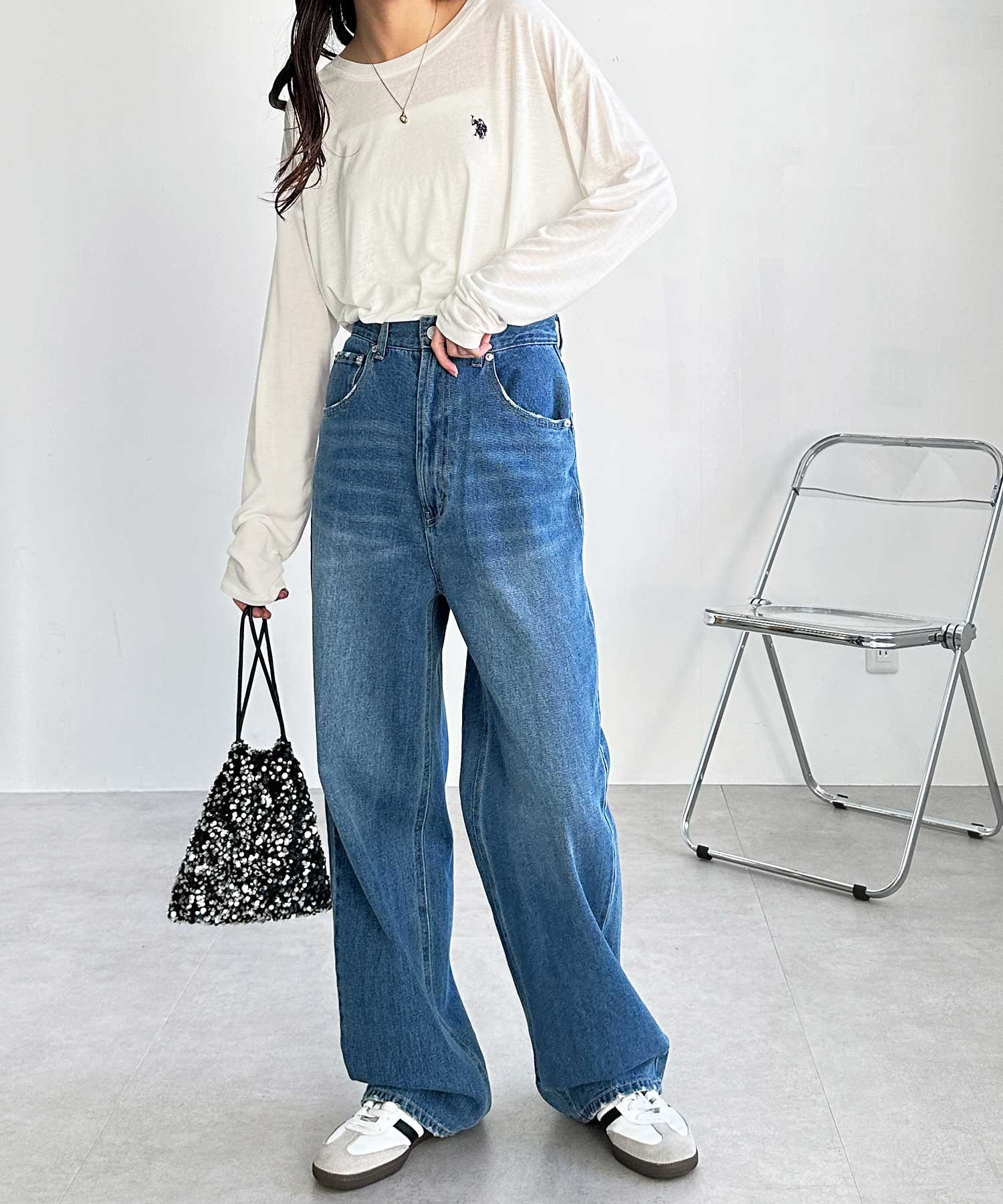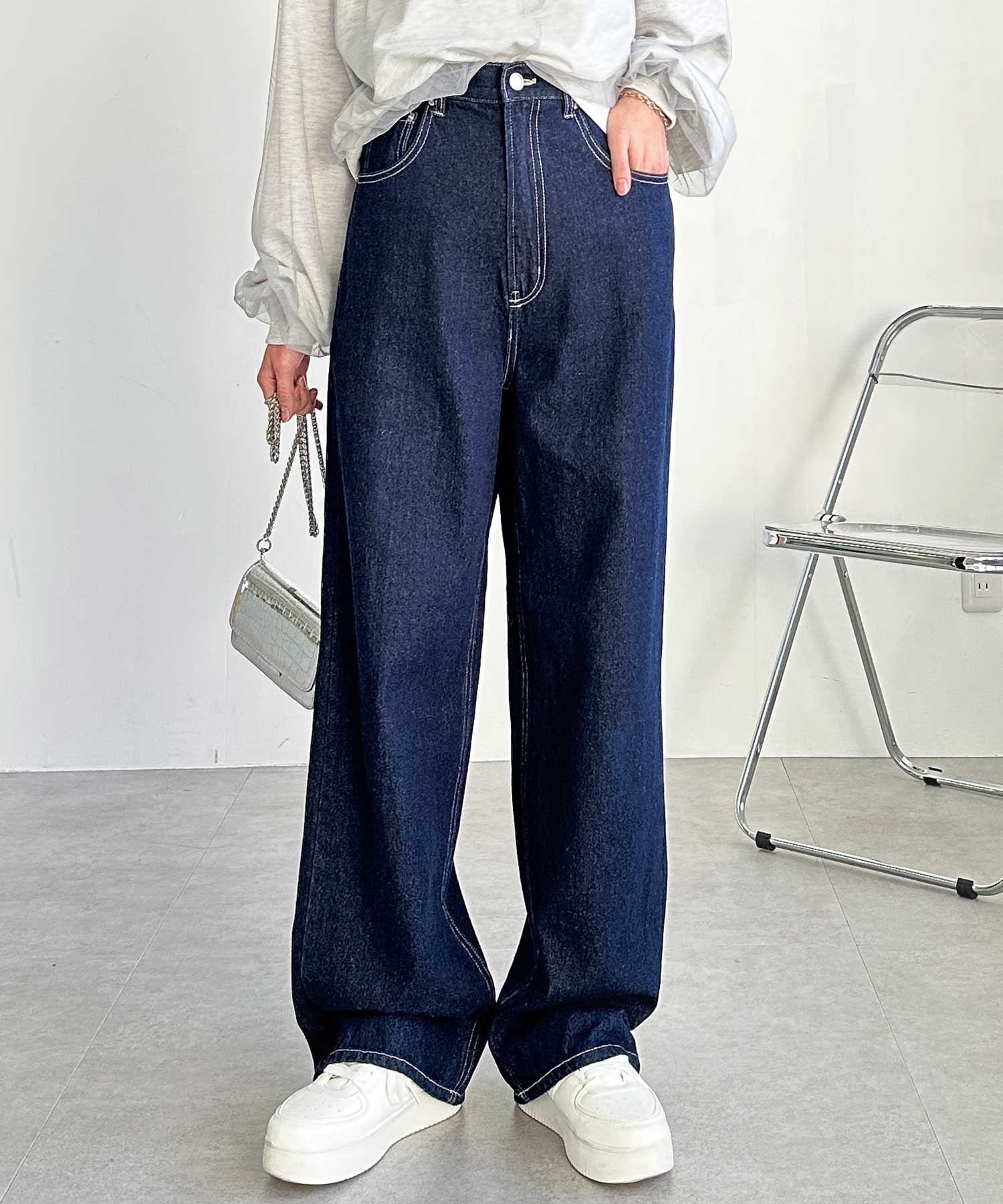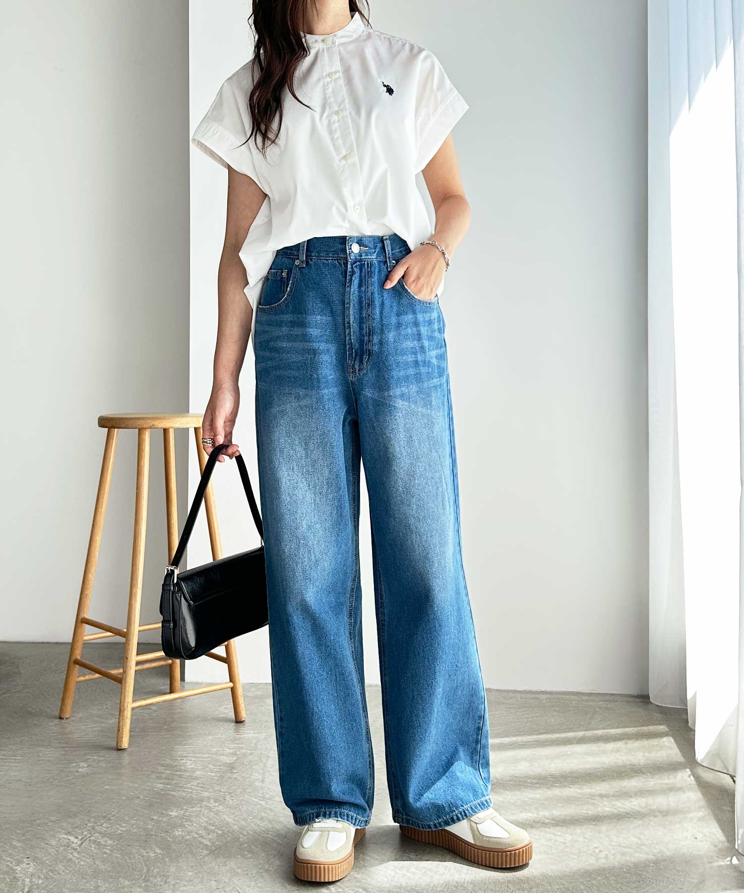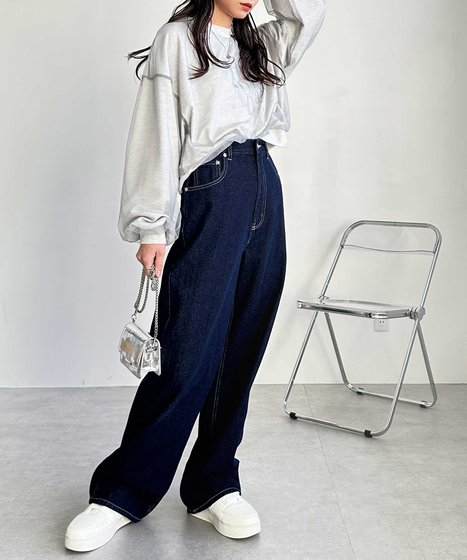 程よいゆとりのあるストレートワイドデニムだから、きれいなシルエットに。