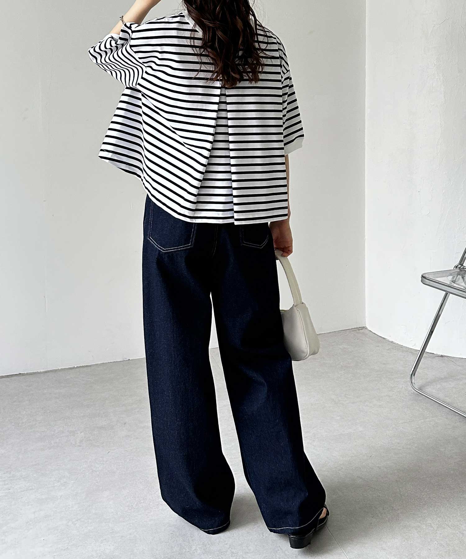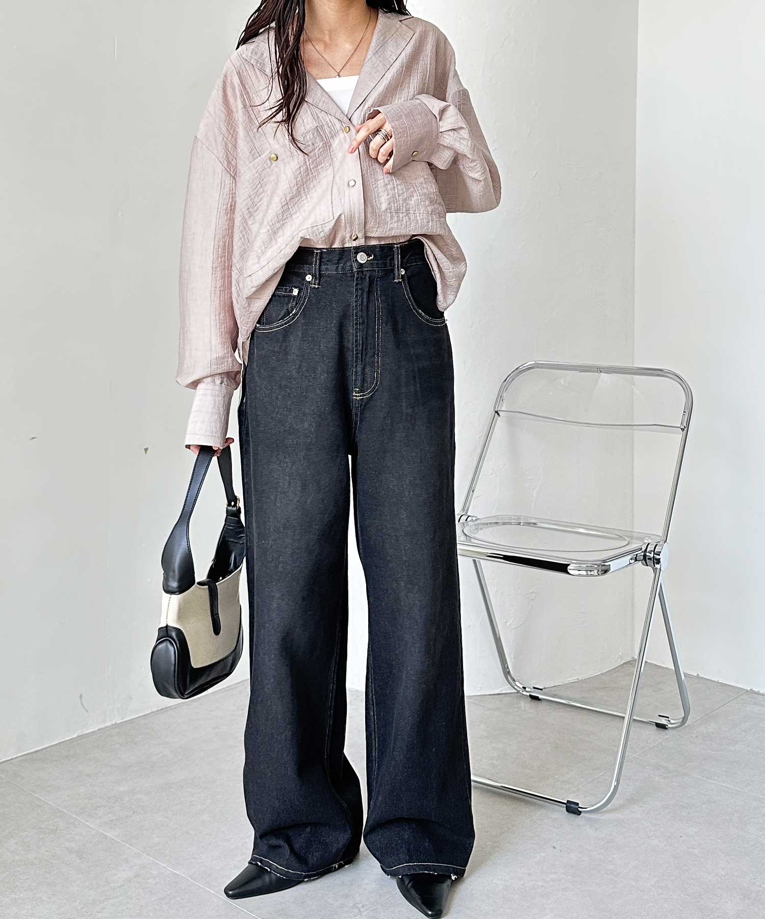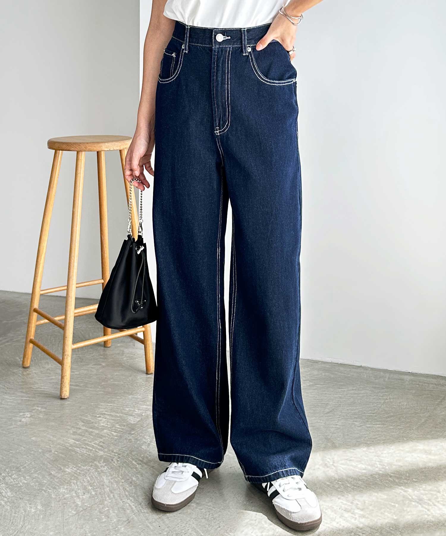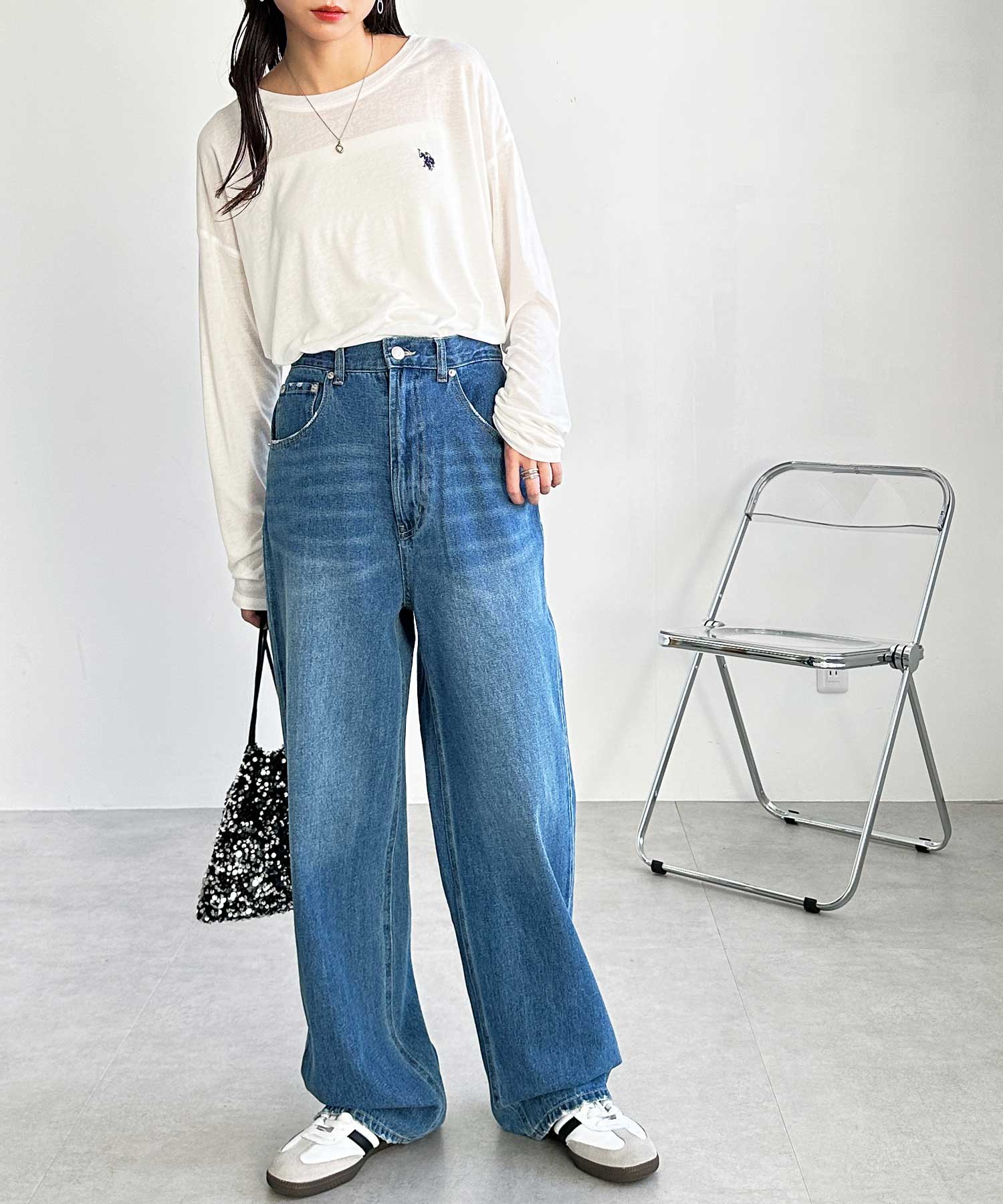 程よいゆとりのあるストレートワイドデニムだから、きれいなシルエットに。