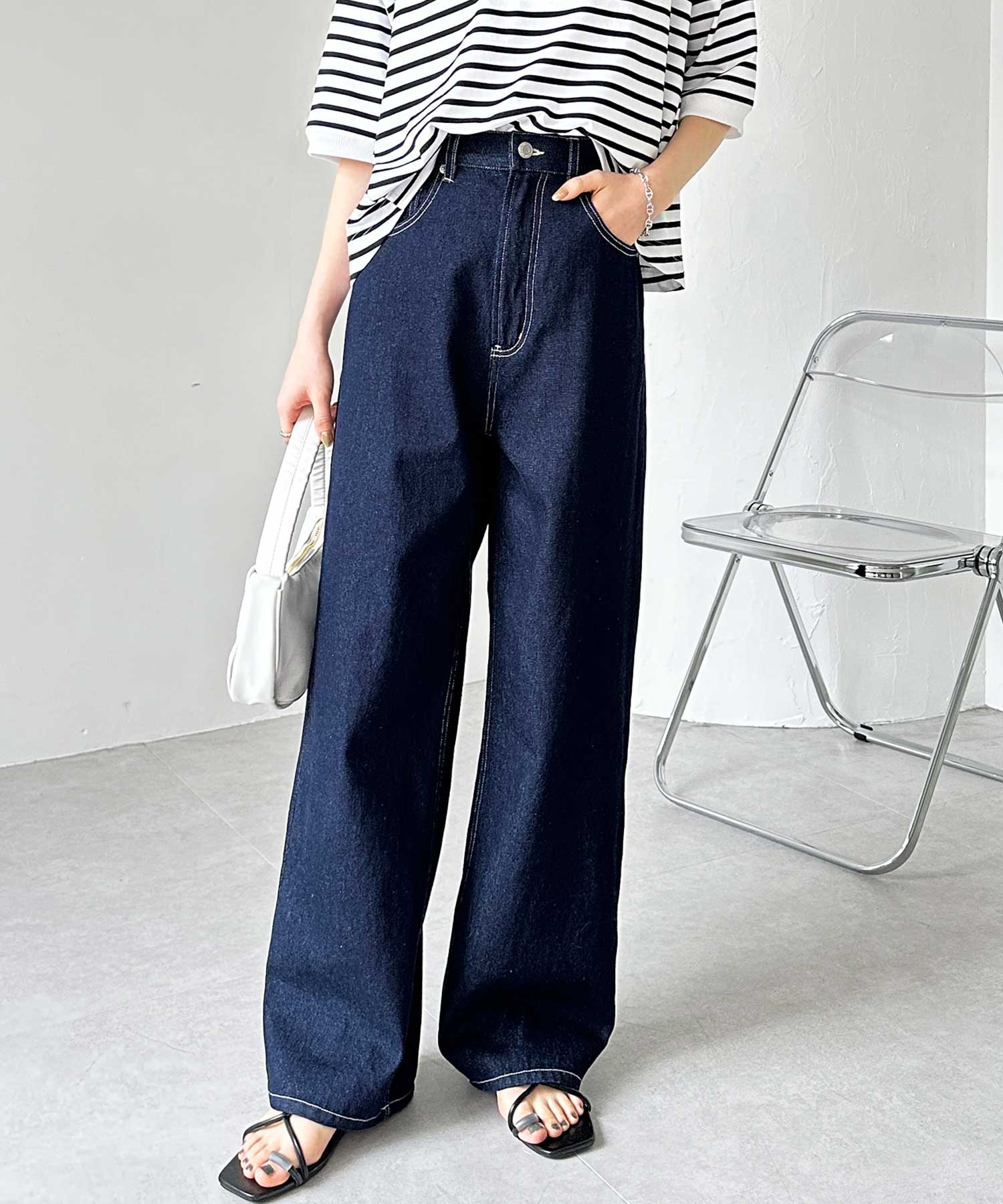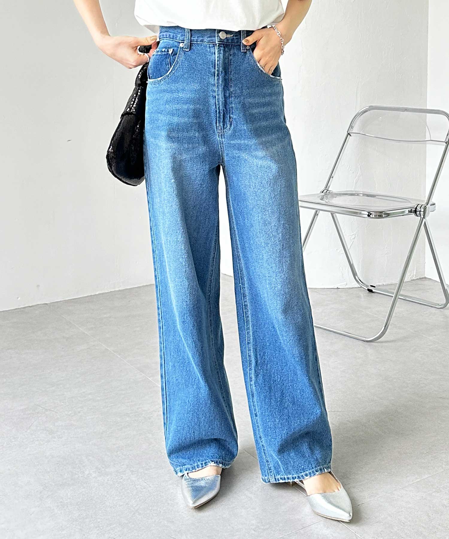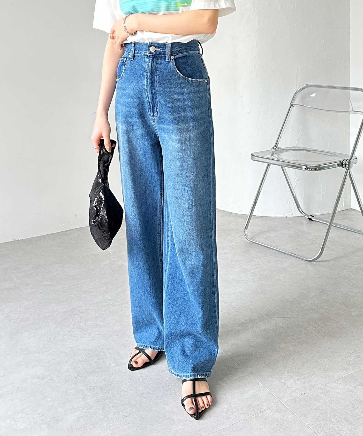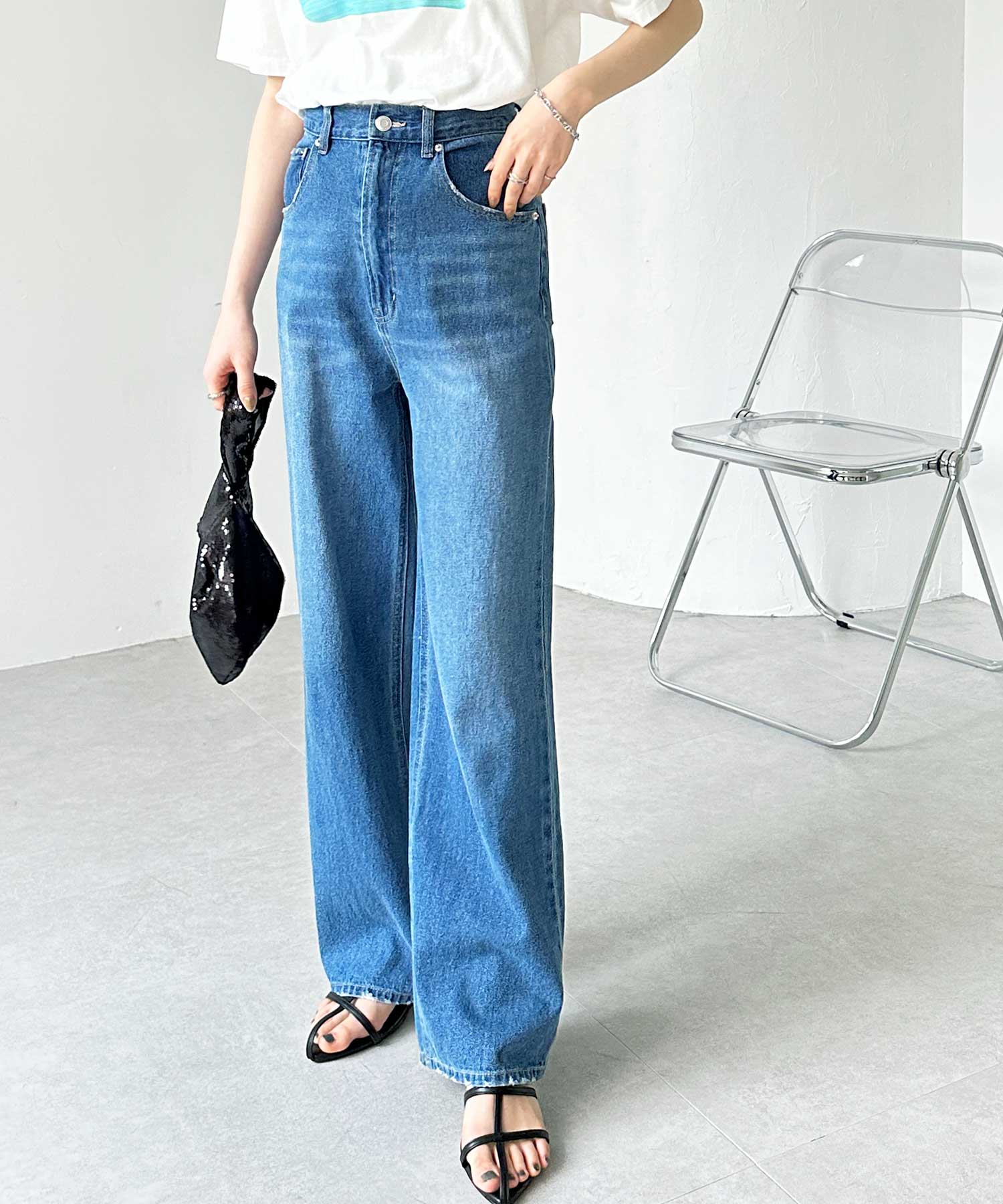 春夏 のマストアイテム!美脚見えハイウエストストレートワイドデニムパンツ
