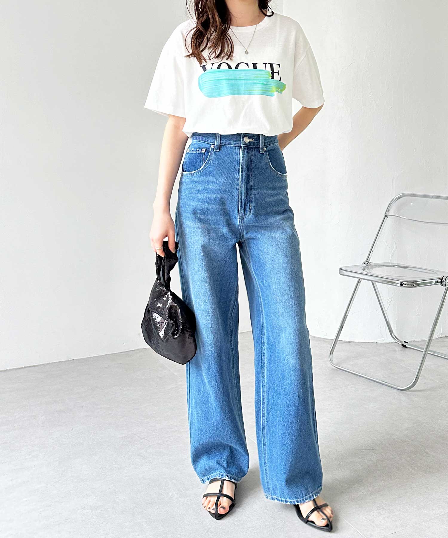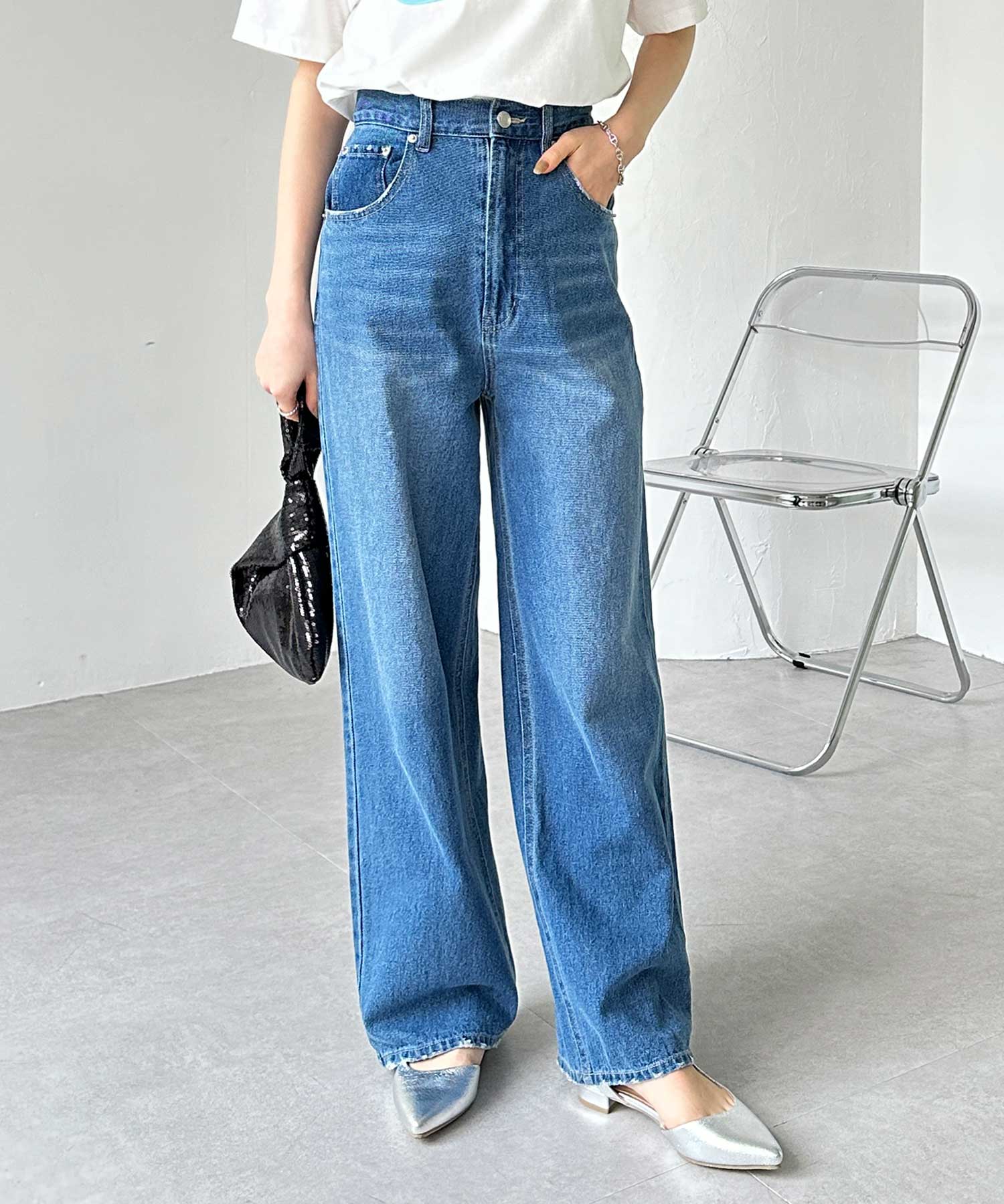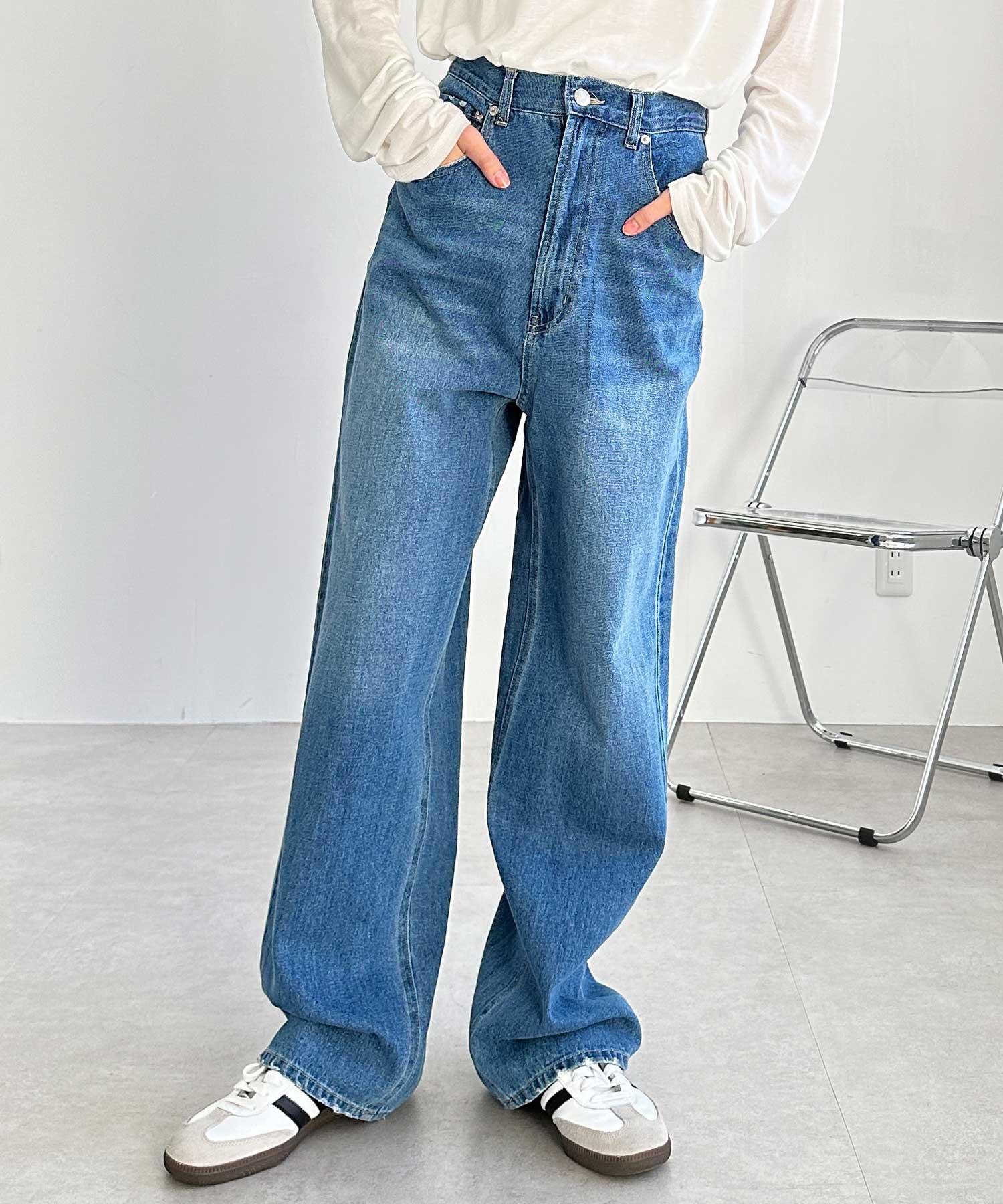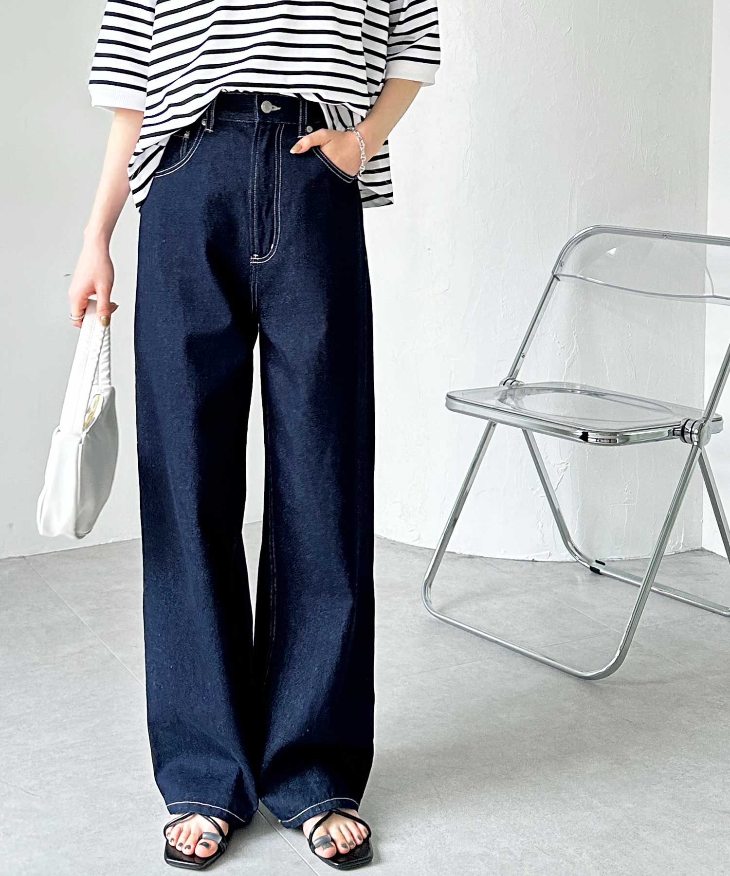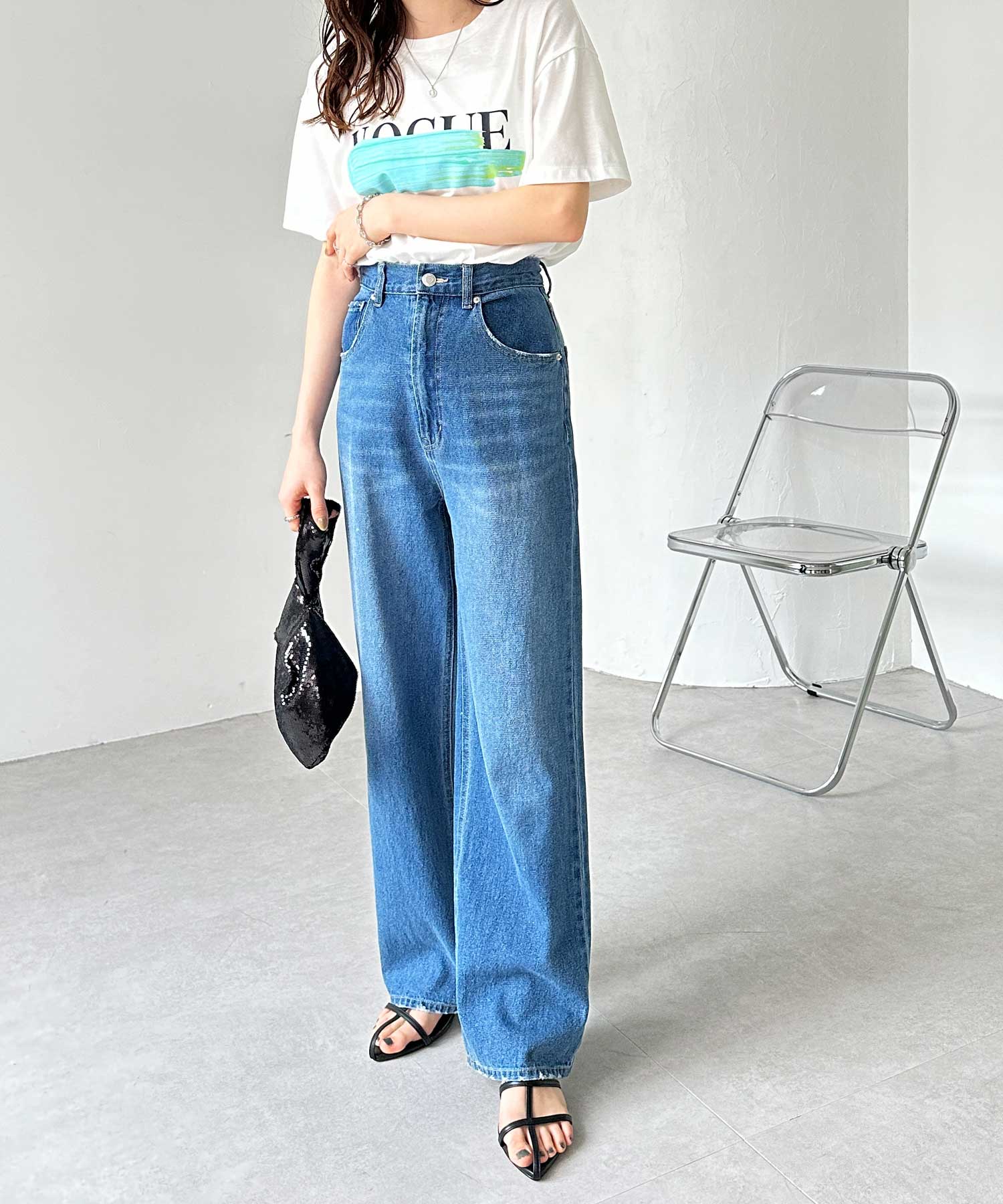 春夏 のマストアイテム!美脚見えハイウエストストレートワイドデニムパンツ