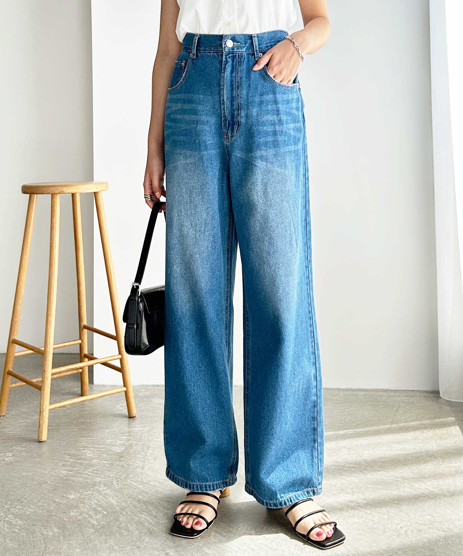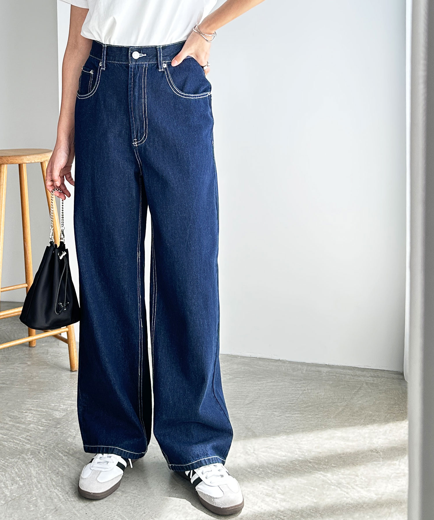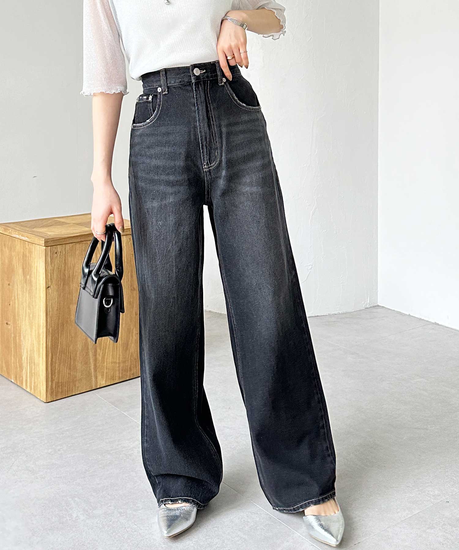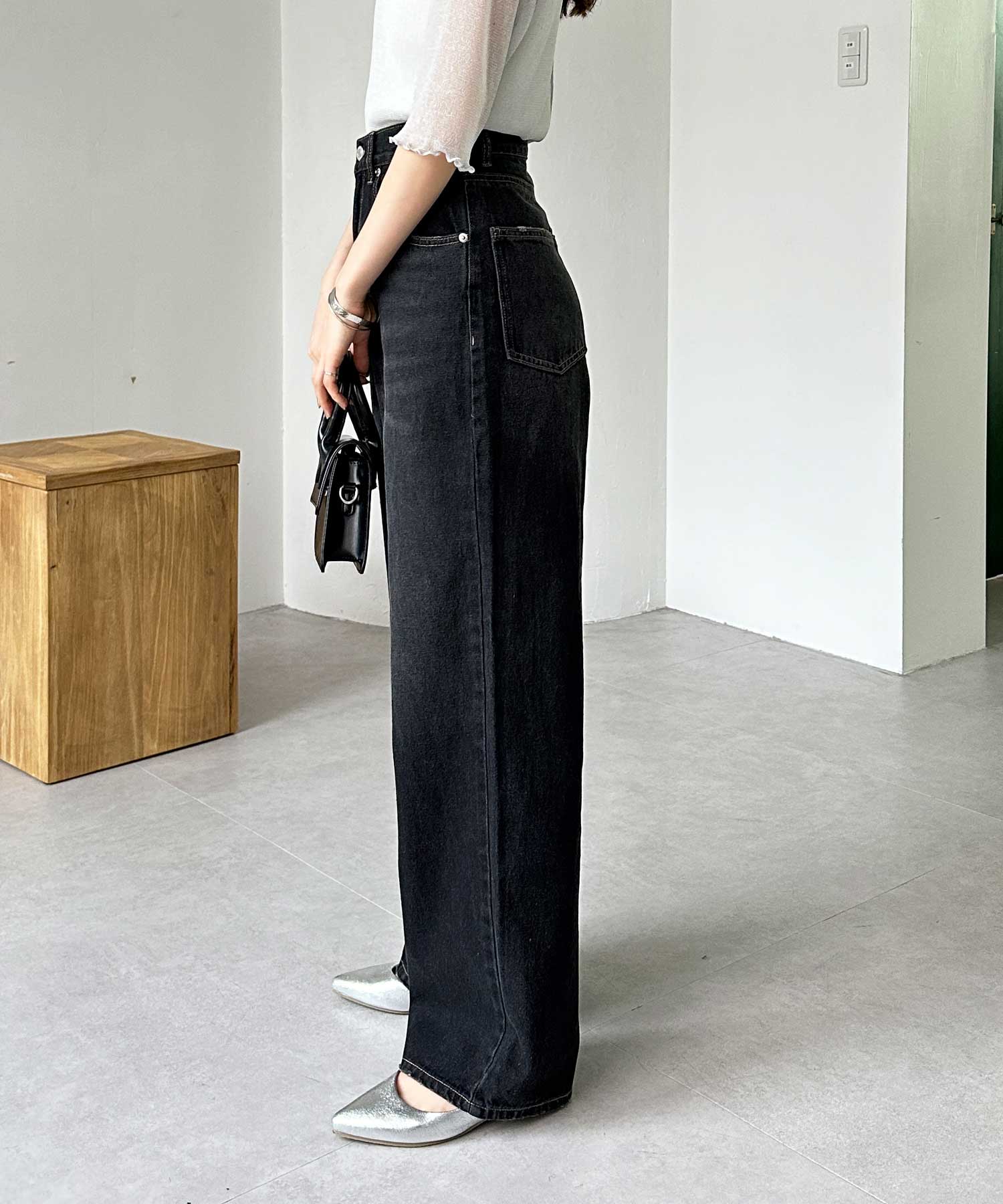 春夏 のマストアイテム!美脚見えハイウエストストレートワイドデニムパンツ