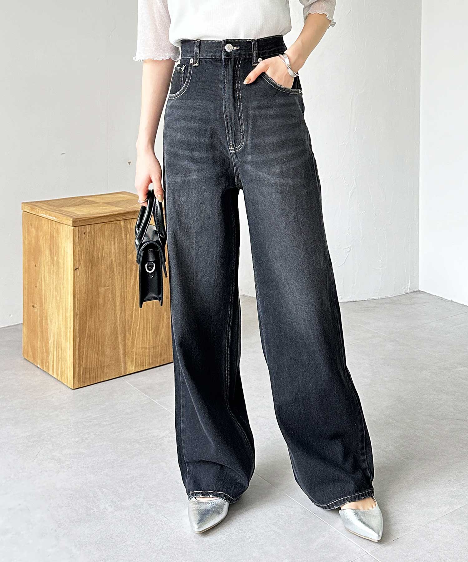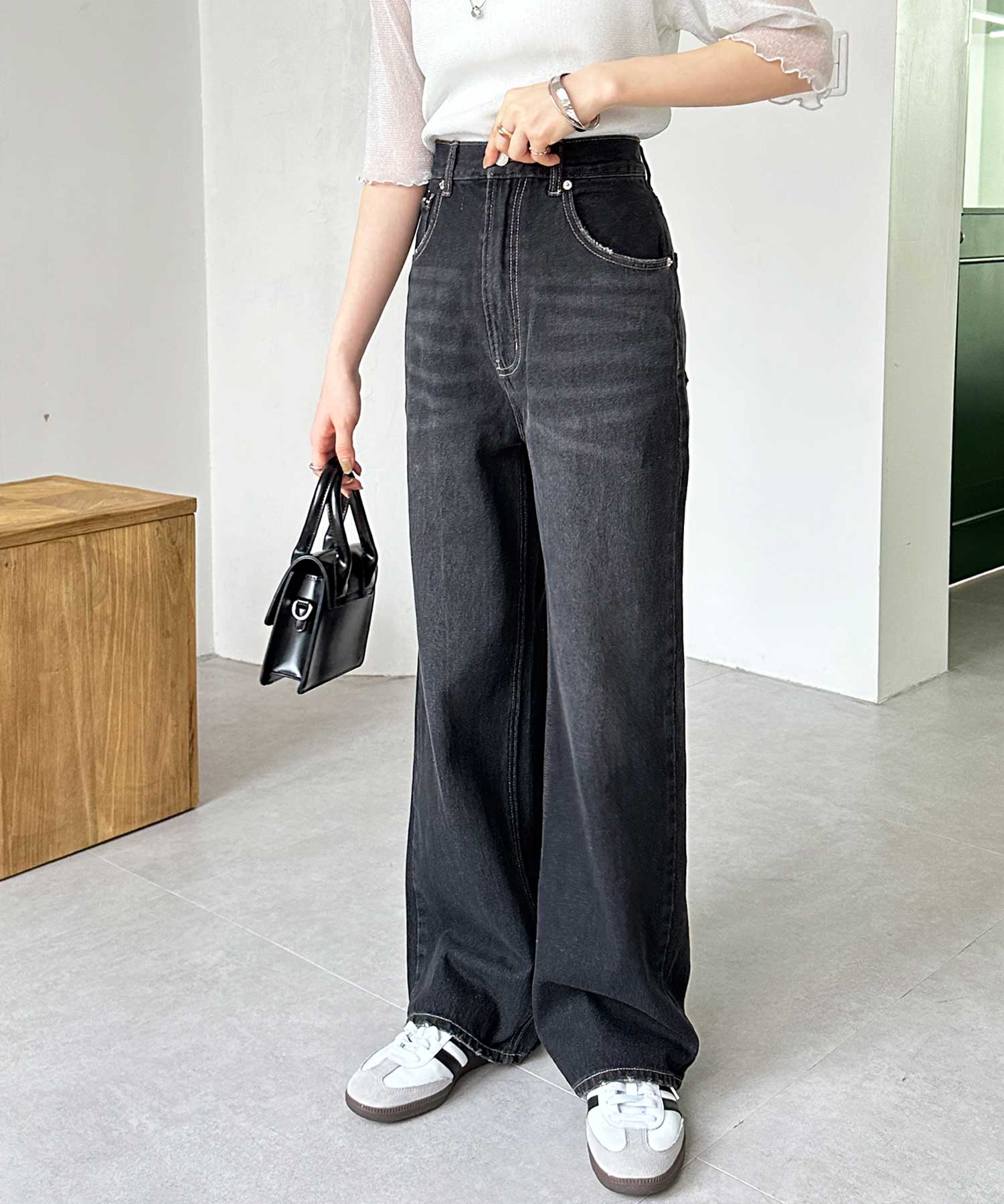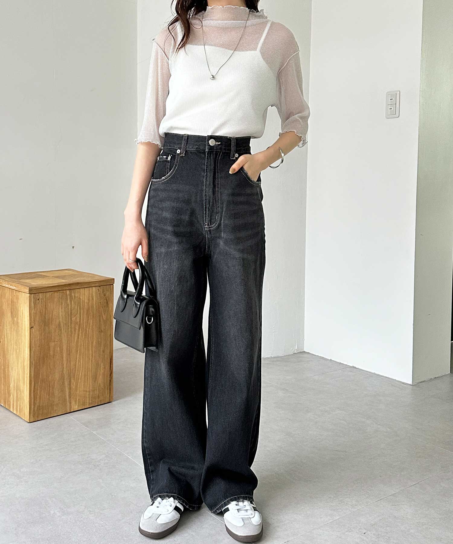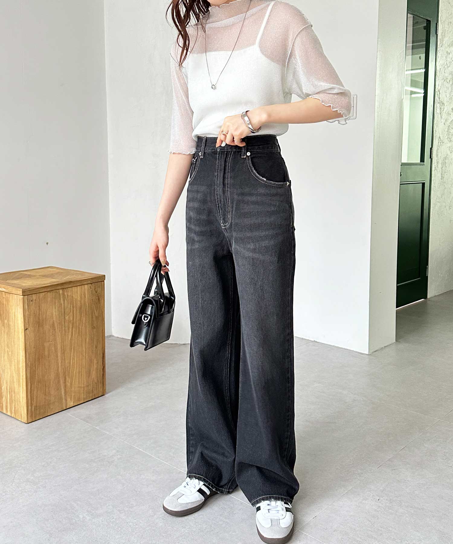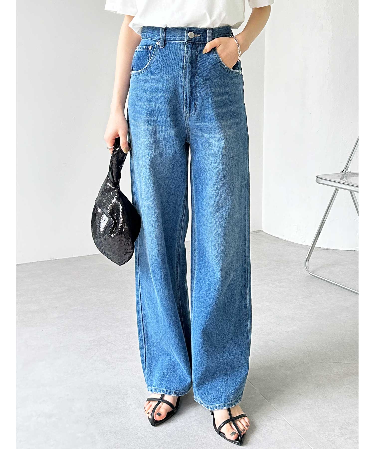春夏 のマストアイテム!美脚見えハイウエストストレートワイドデニムパンツ