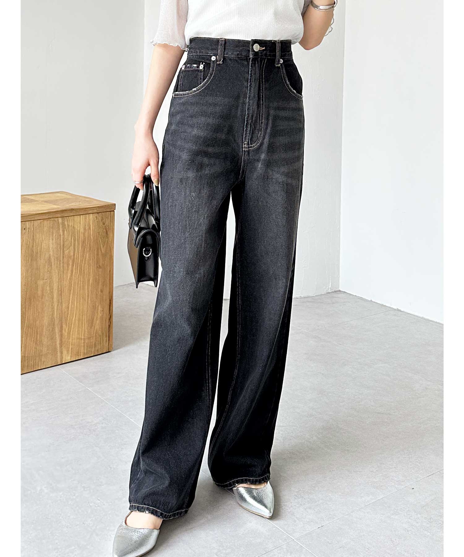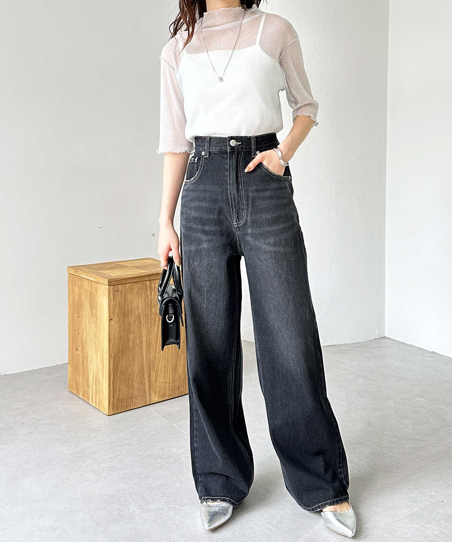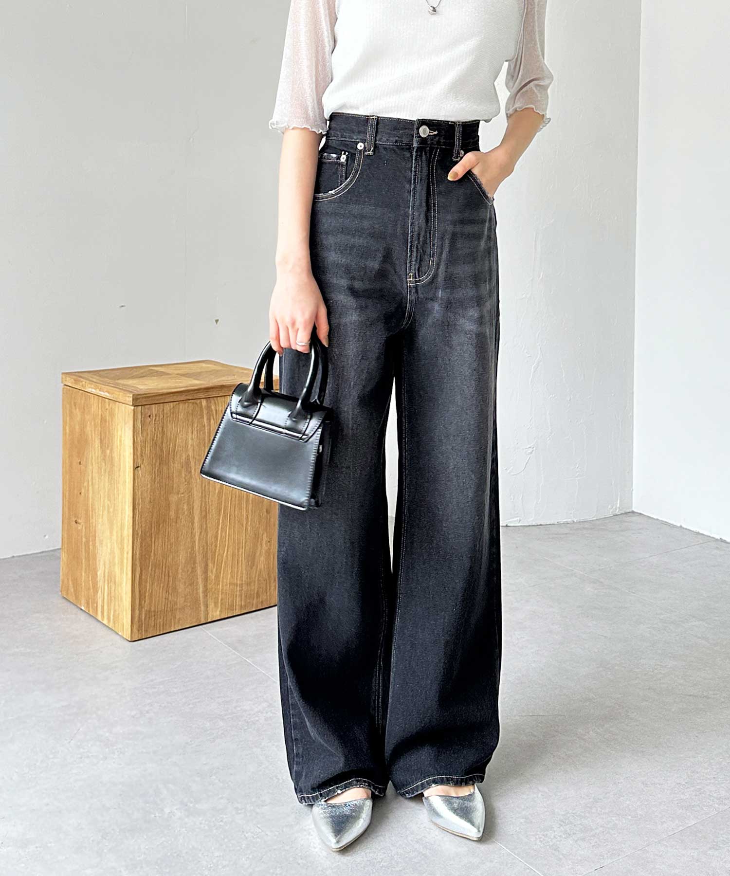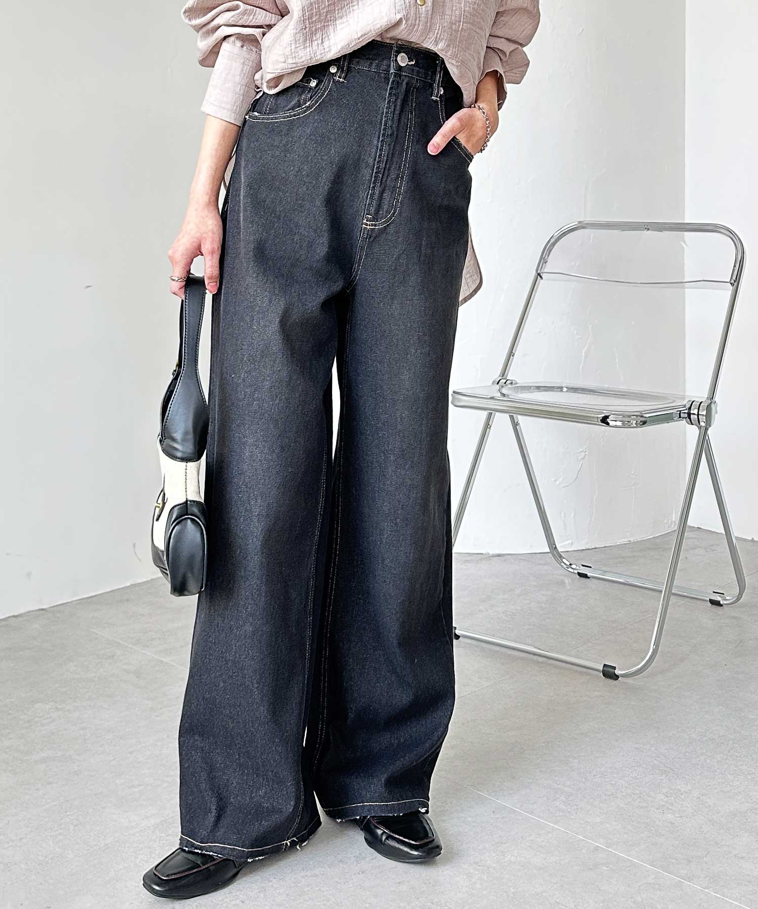 春夏 のマストアイテム!美脚見えハイウエストストレートワイドデニムパンツ
