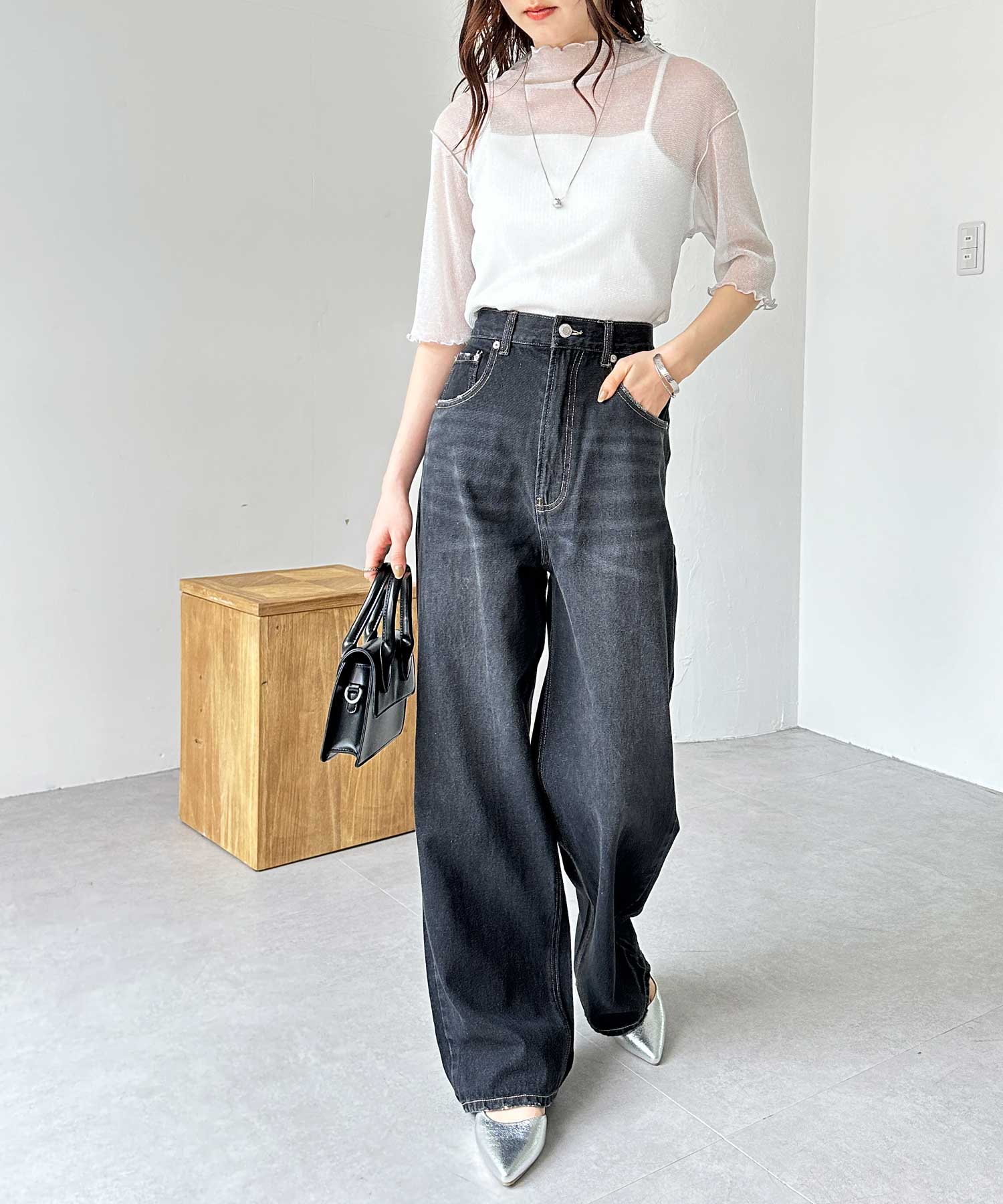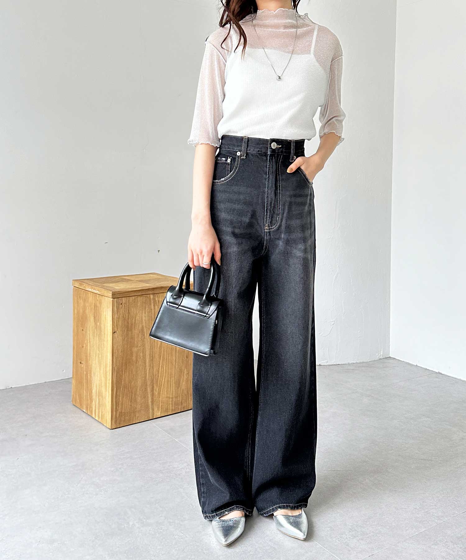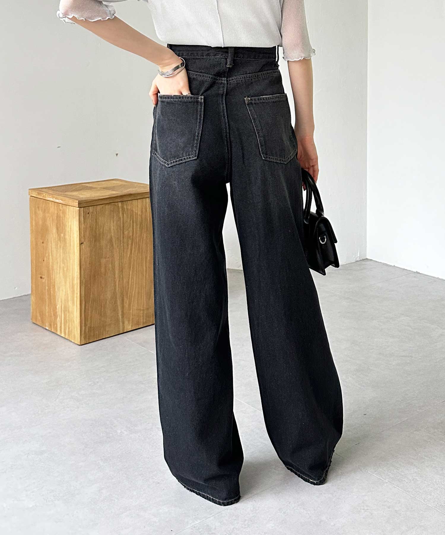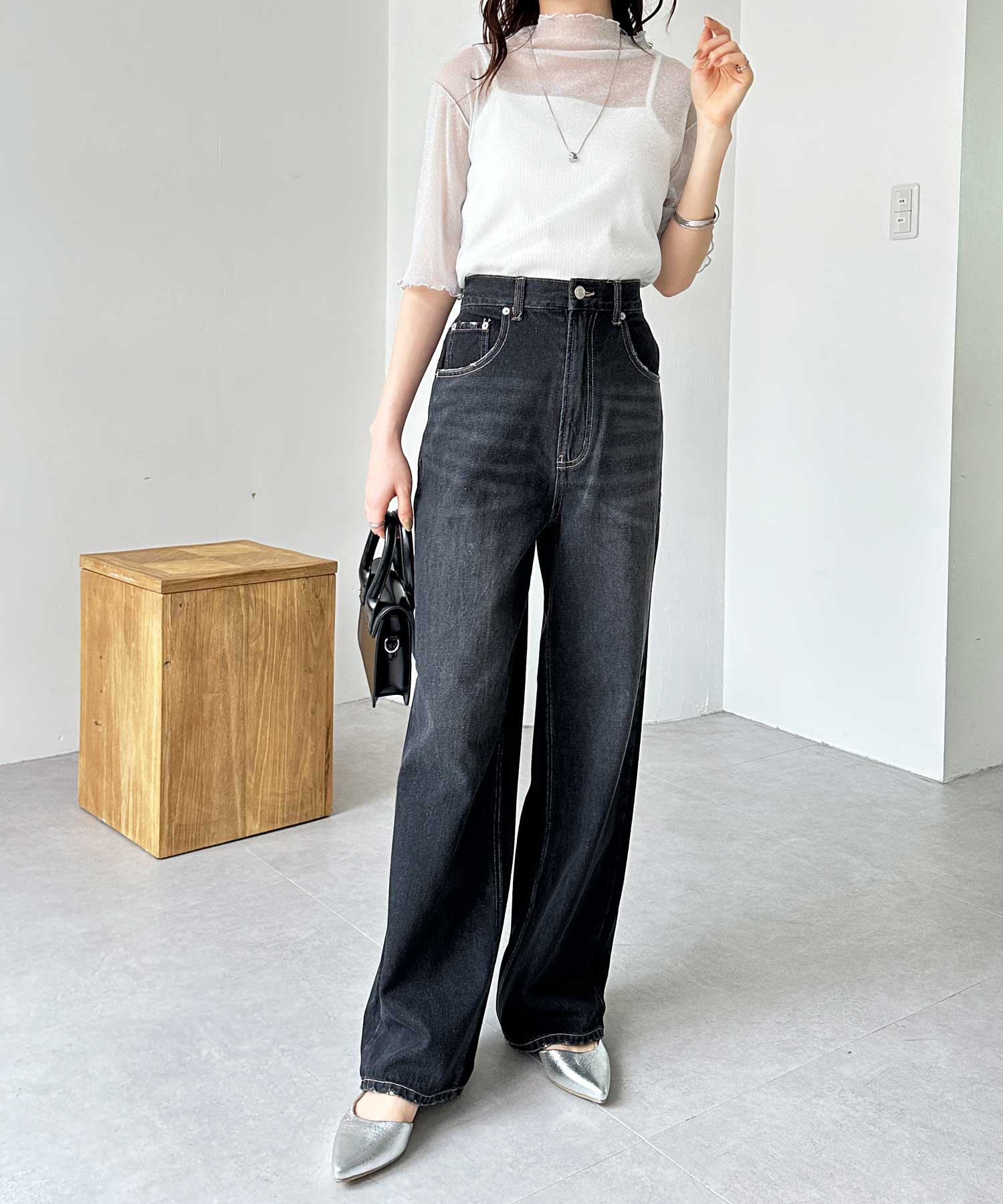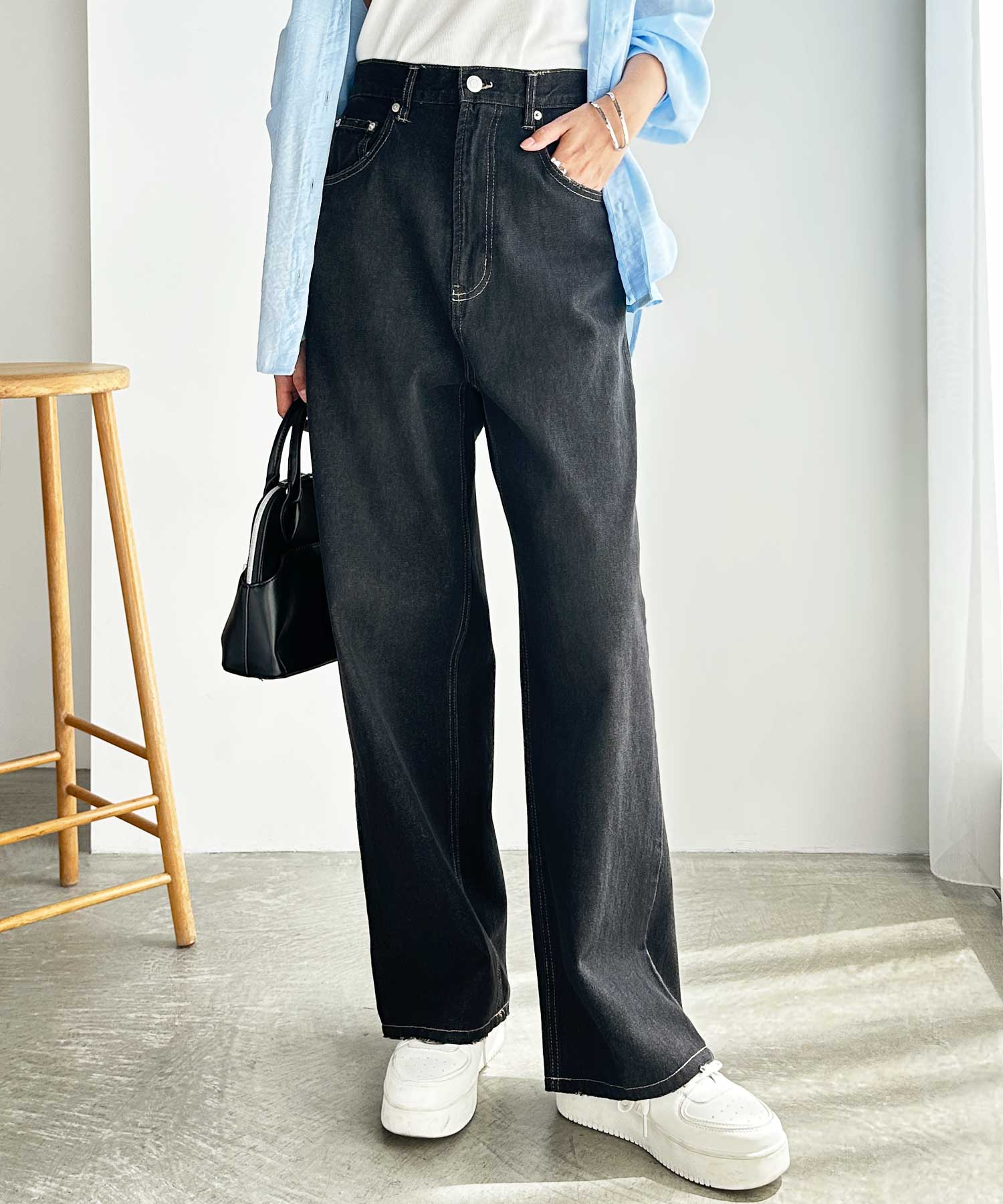 春夏 のマストアイテム!美脚見えハイウエストストレートワイドデニムパンツ