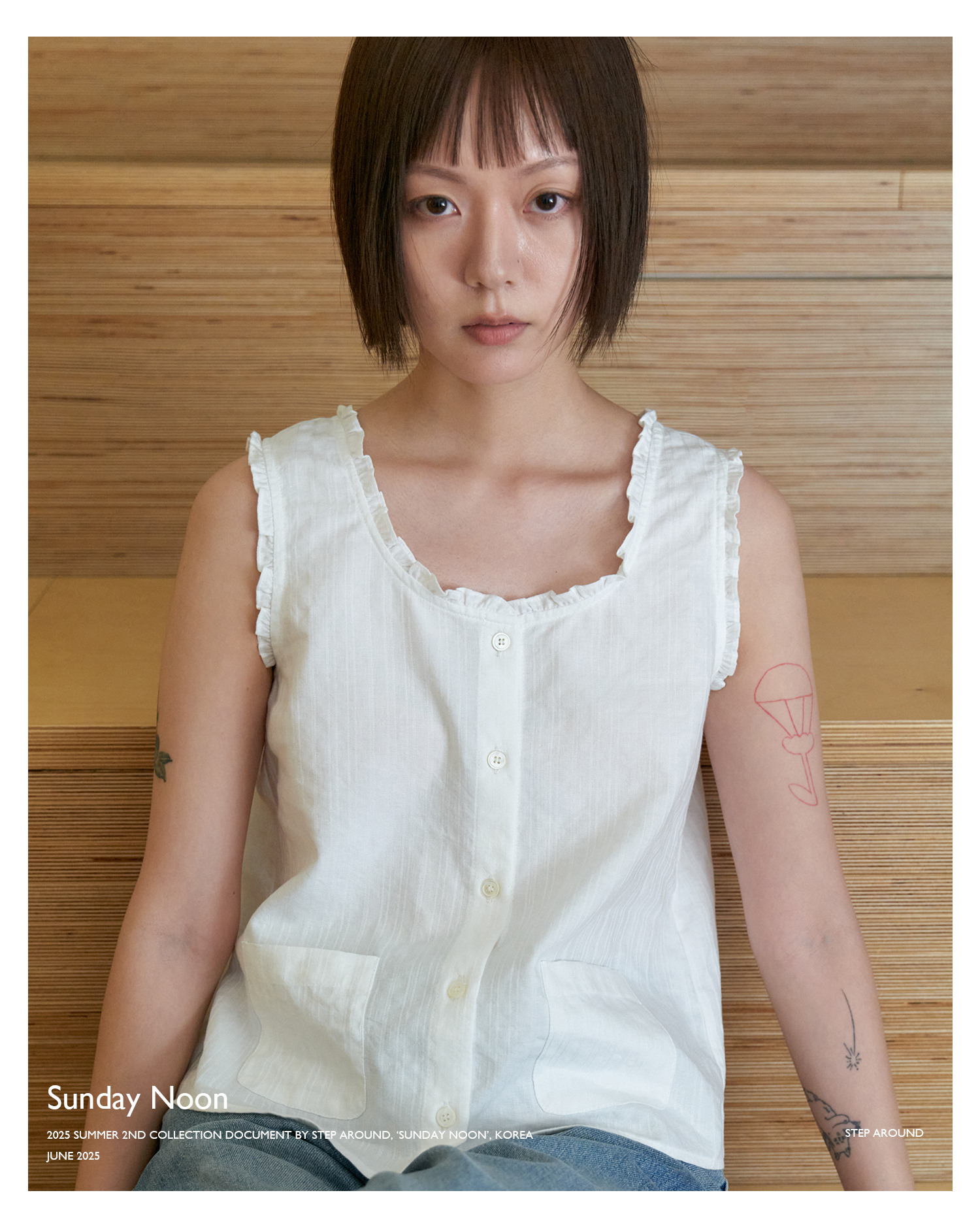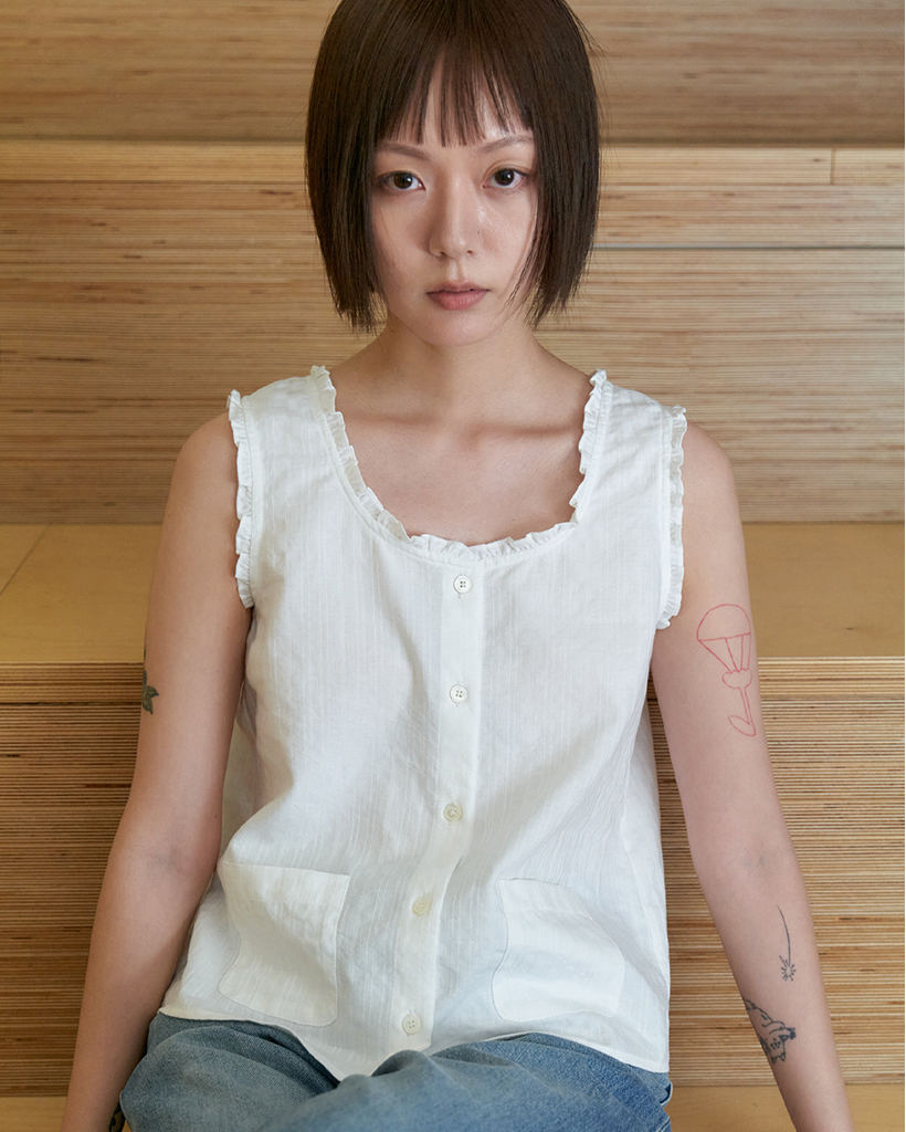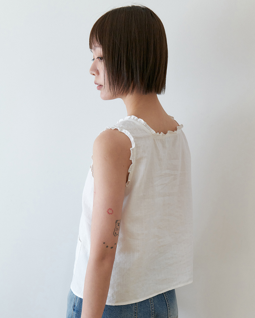 Ruffle pocket crop blouse_WHITE
