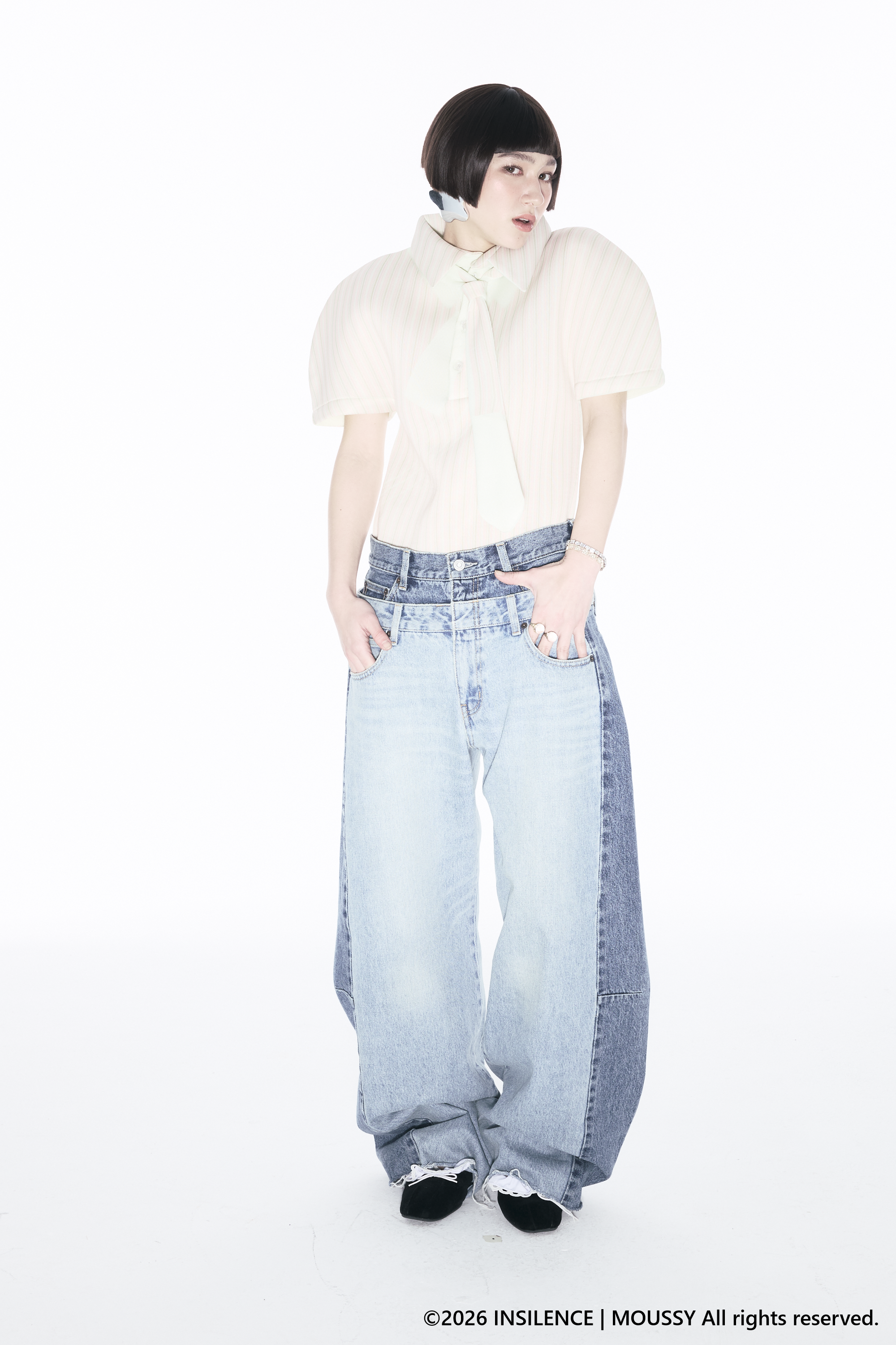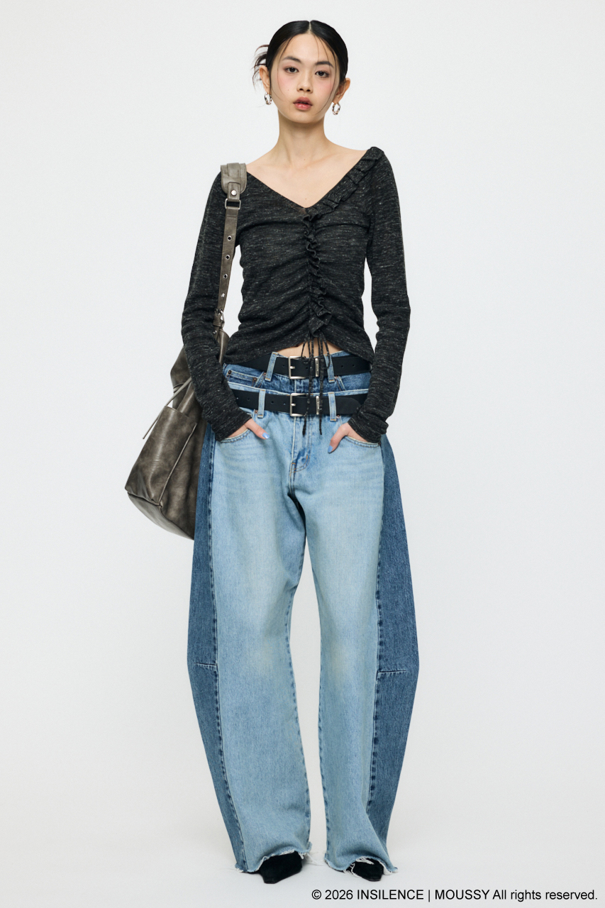 MOUSSYが得意とするデニムをベースに、コラボならではの構築的なデザインで、一本でスタイリングの主役になる存在感を放ちます。