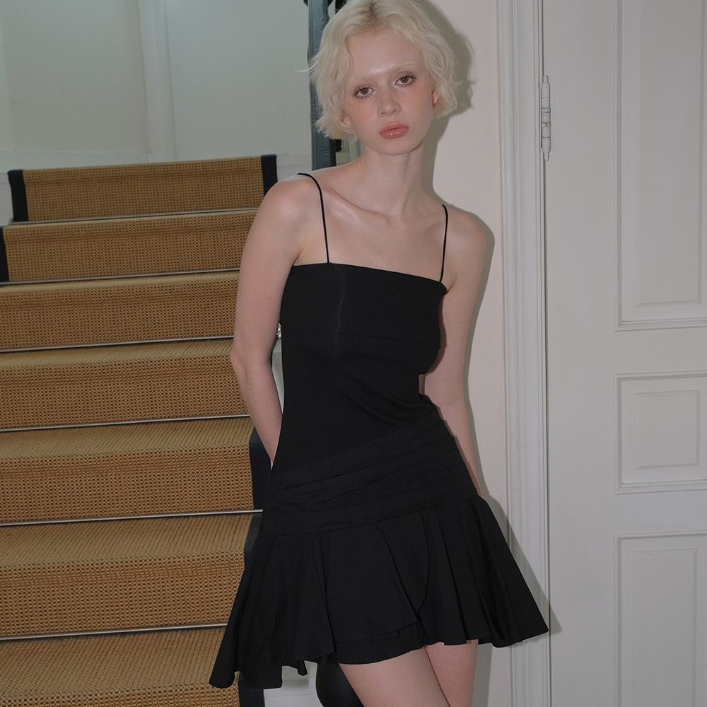C RUFFLE SLEEVELESS DRESS_BLACK