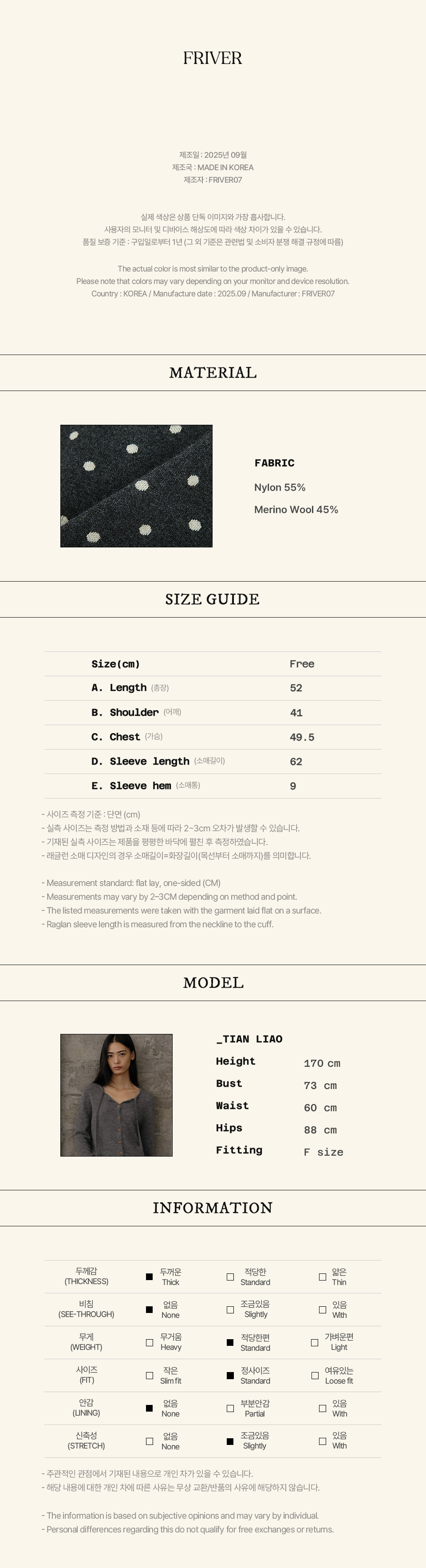 【購入特典】Polka dot pattern cardigan FRFA02CD08_Charcoal