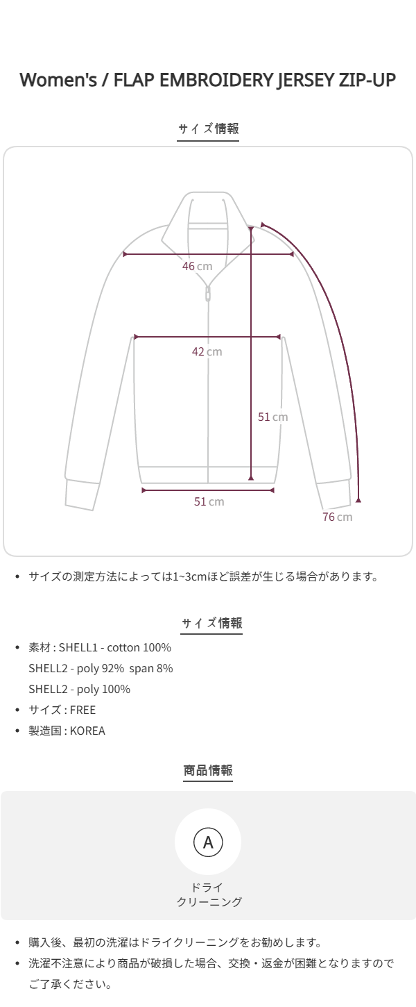 [Influencer pick] FLAP EMBROIDERY JERSEY ZIP-UP