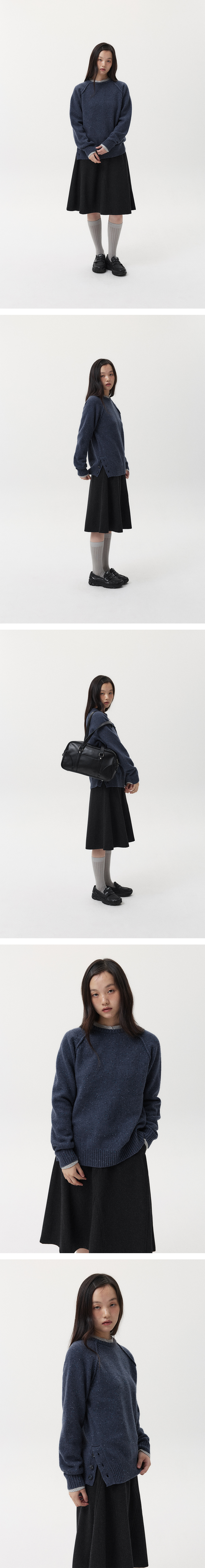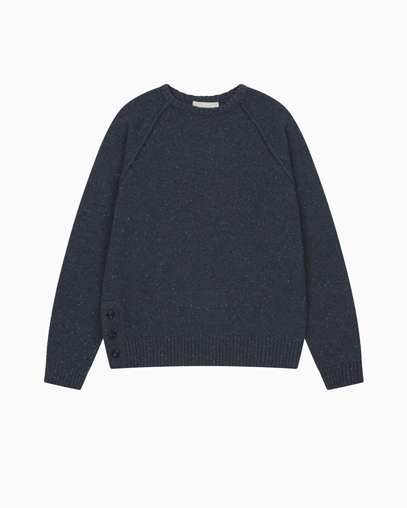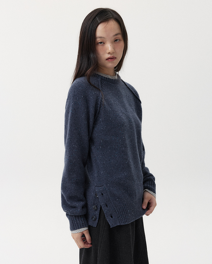 ASYMMETRIC RAGLAN BUTTON KNIT, BLUE