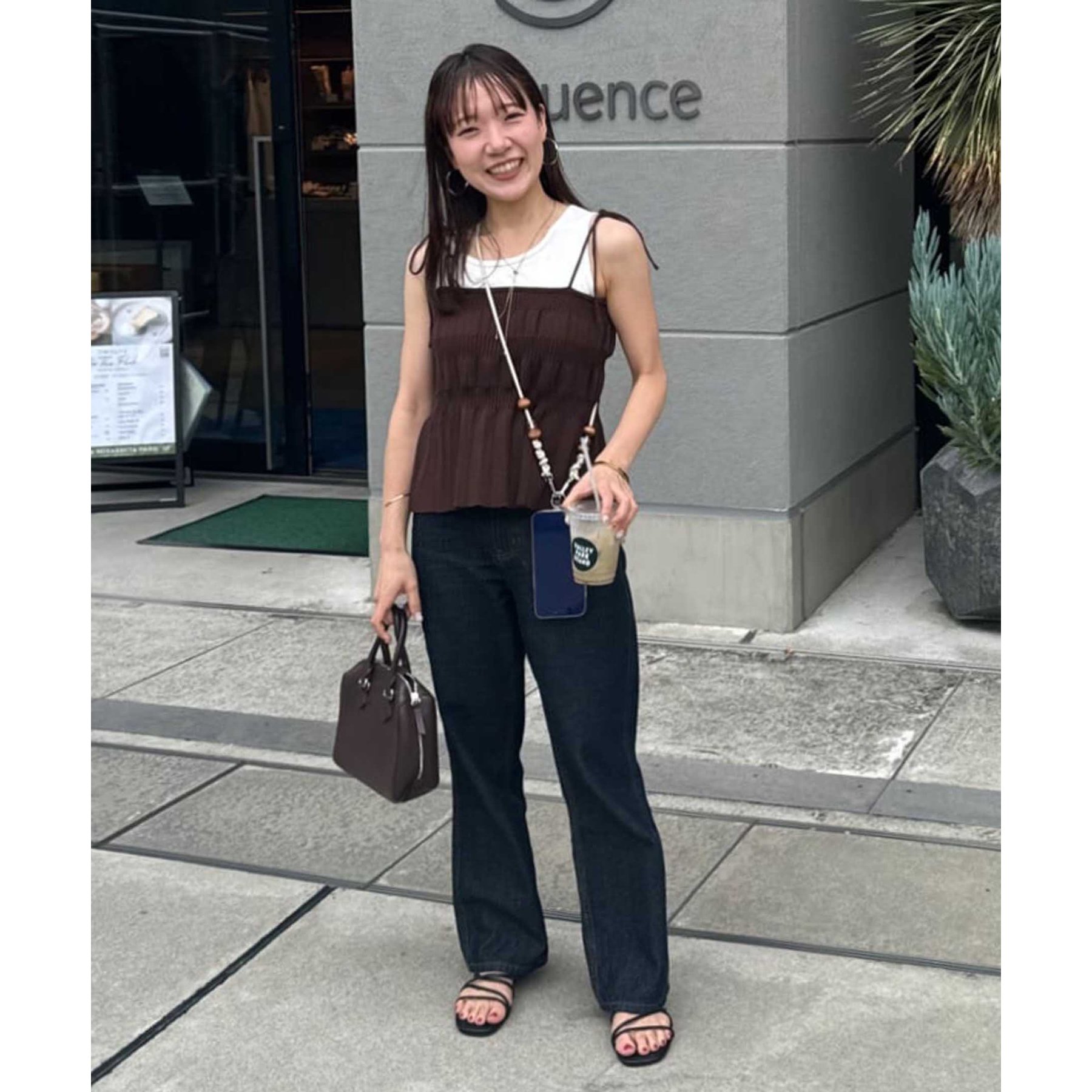 149cmスタッフ:肩紐で長さ調節ができるので身長問わず着ていただけます!