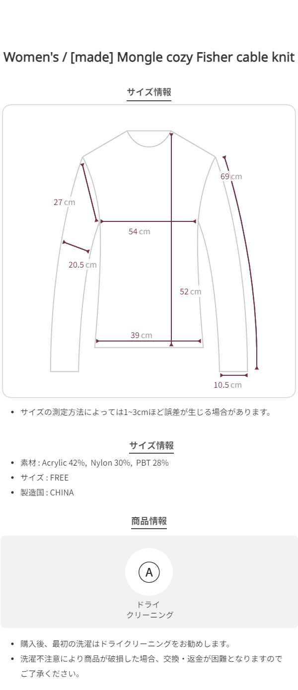 *同一の商品であっても、製作のたびにサイズに多少の誤差が生じることがあります。
