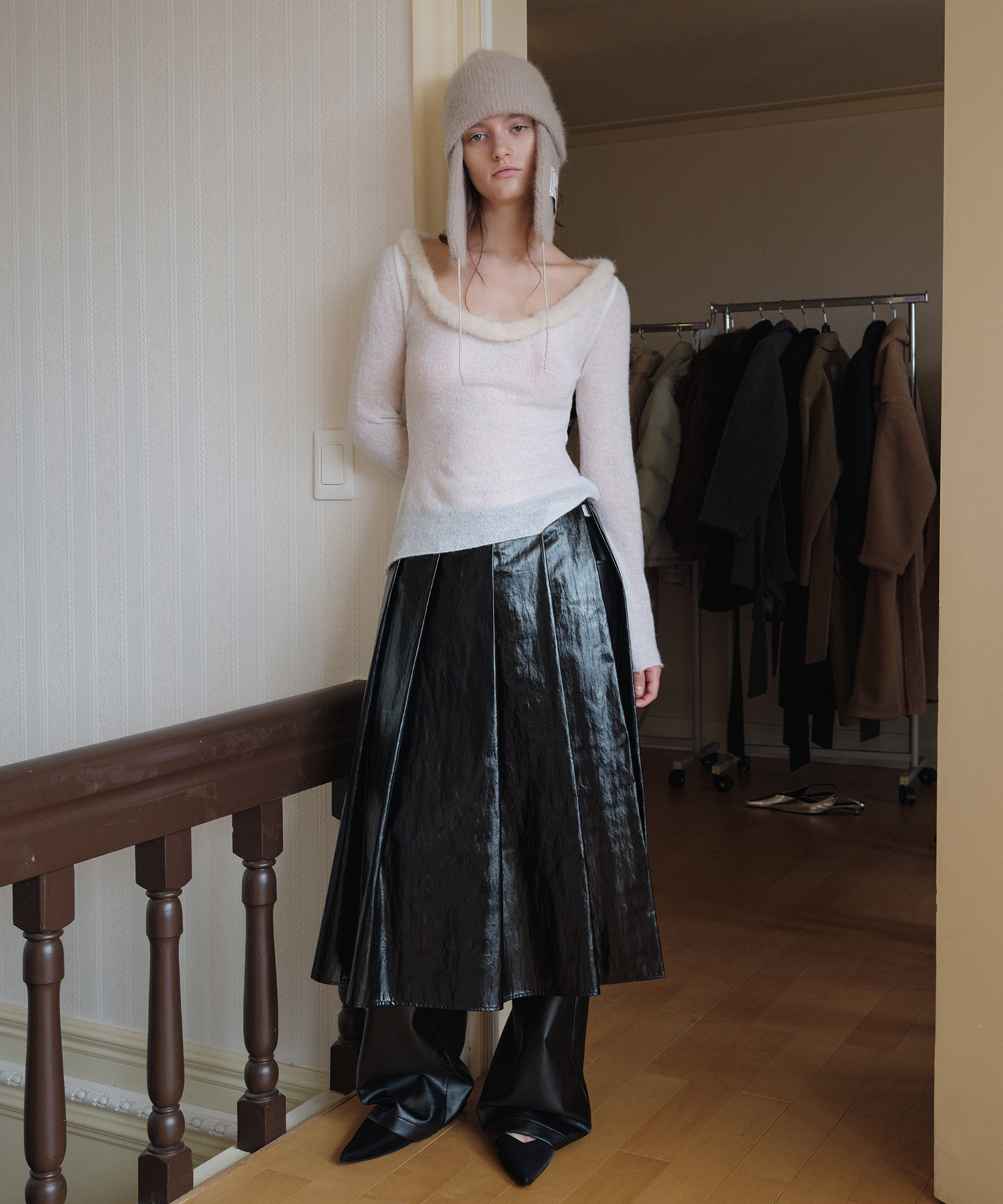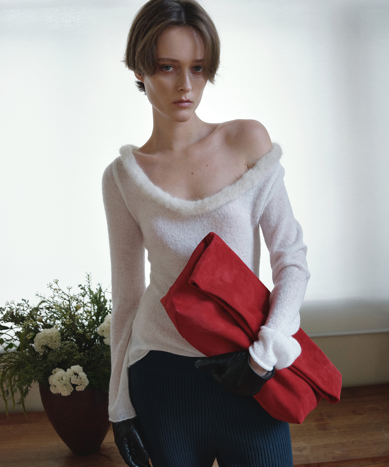 【購入特典】[yu x overdue flair] MINK FUR TRIMMED MOHAIR KNIT_CREAM