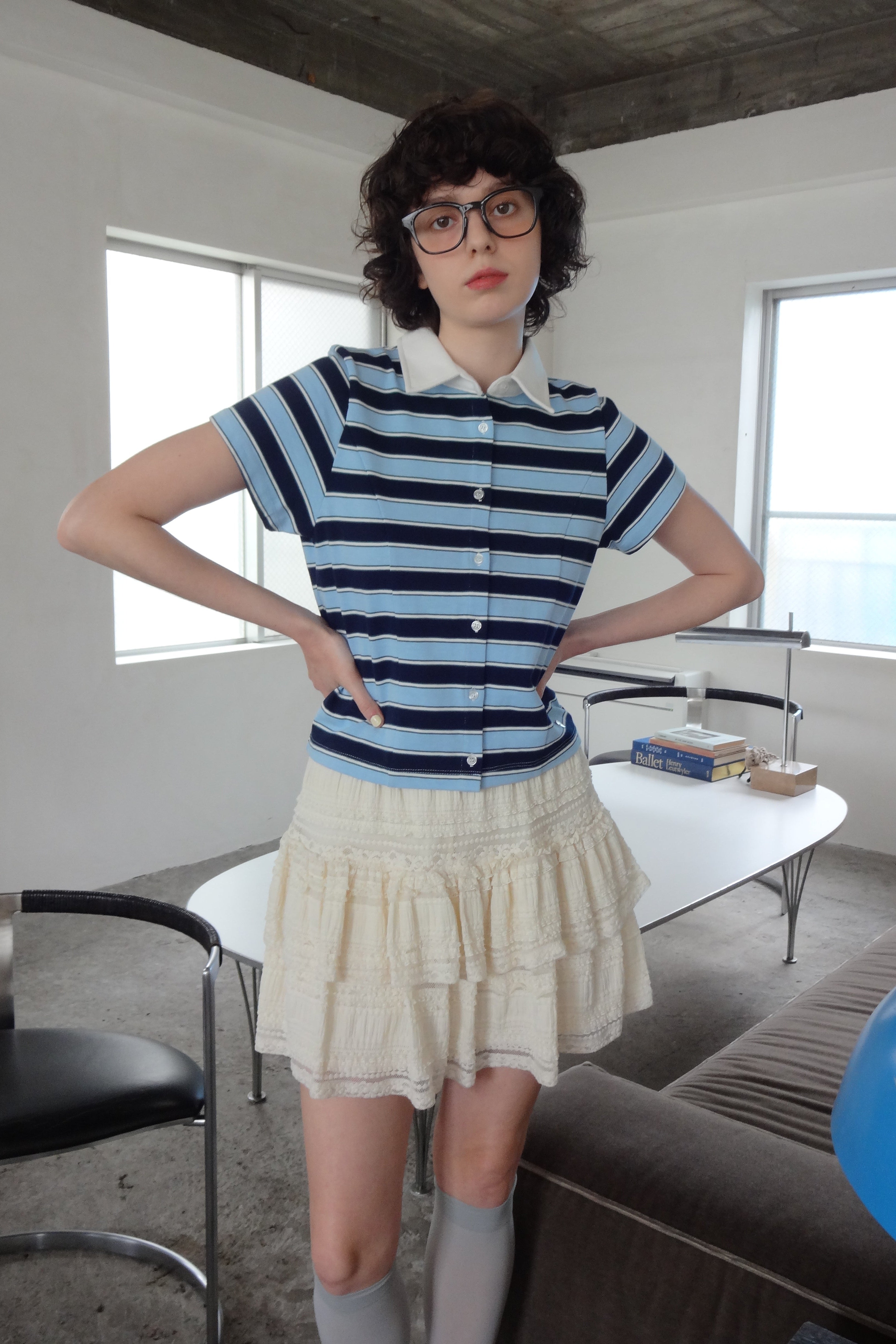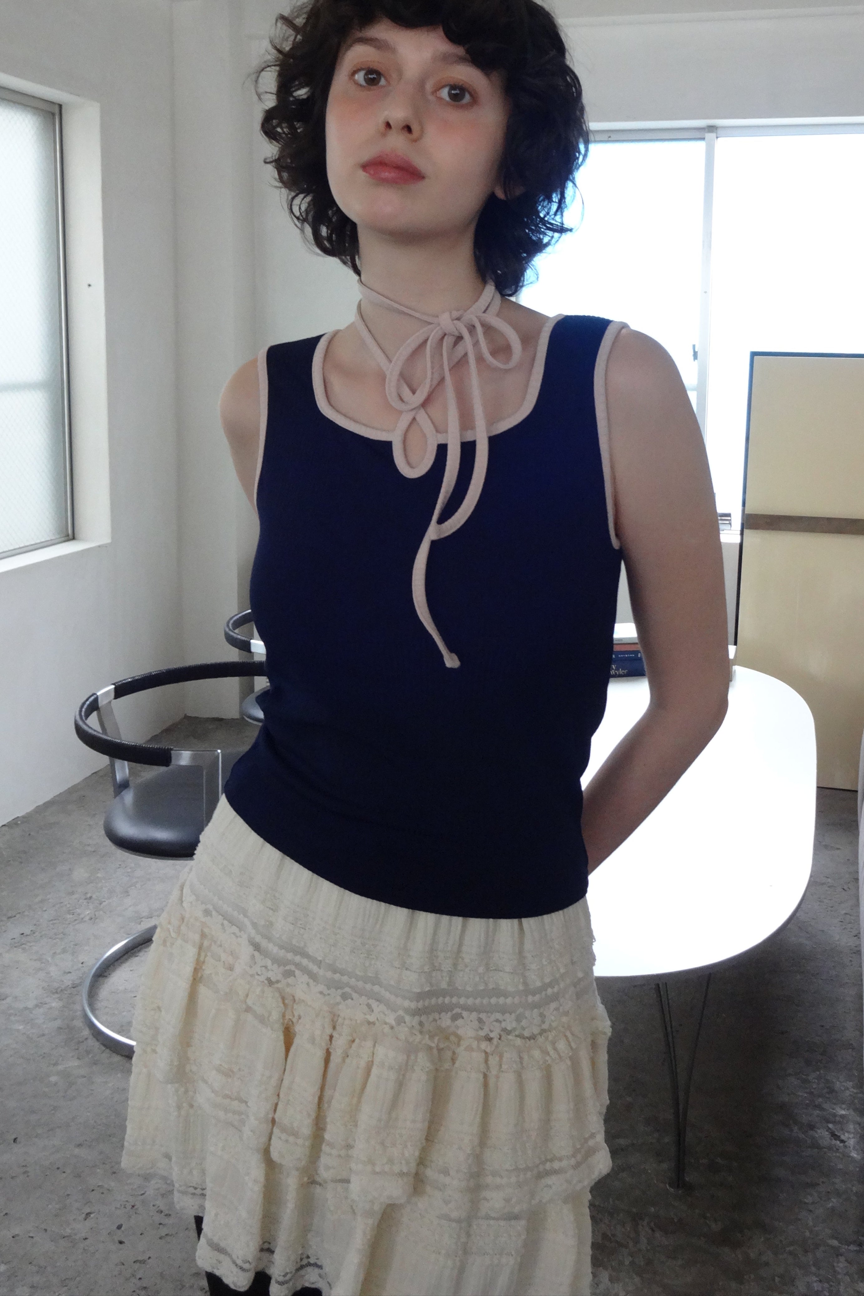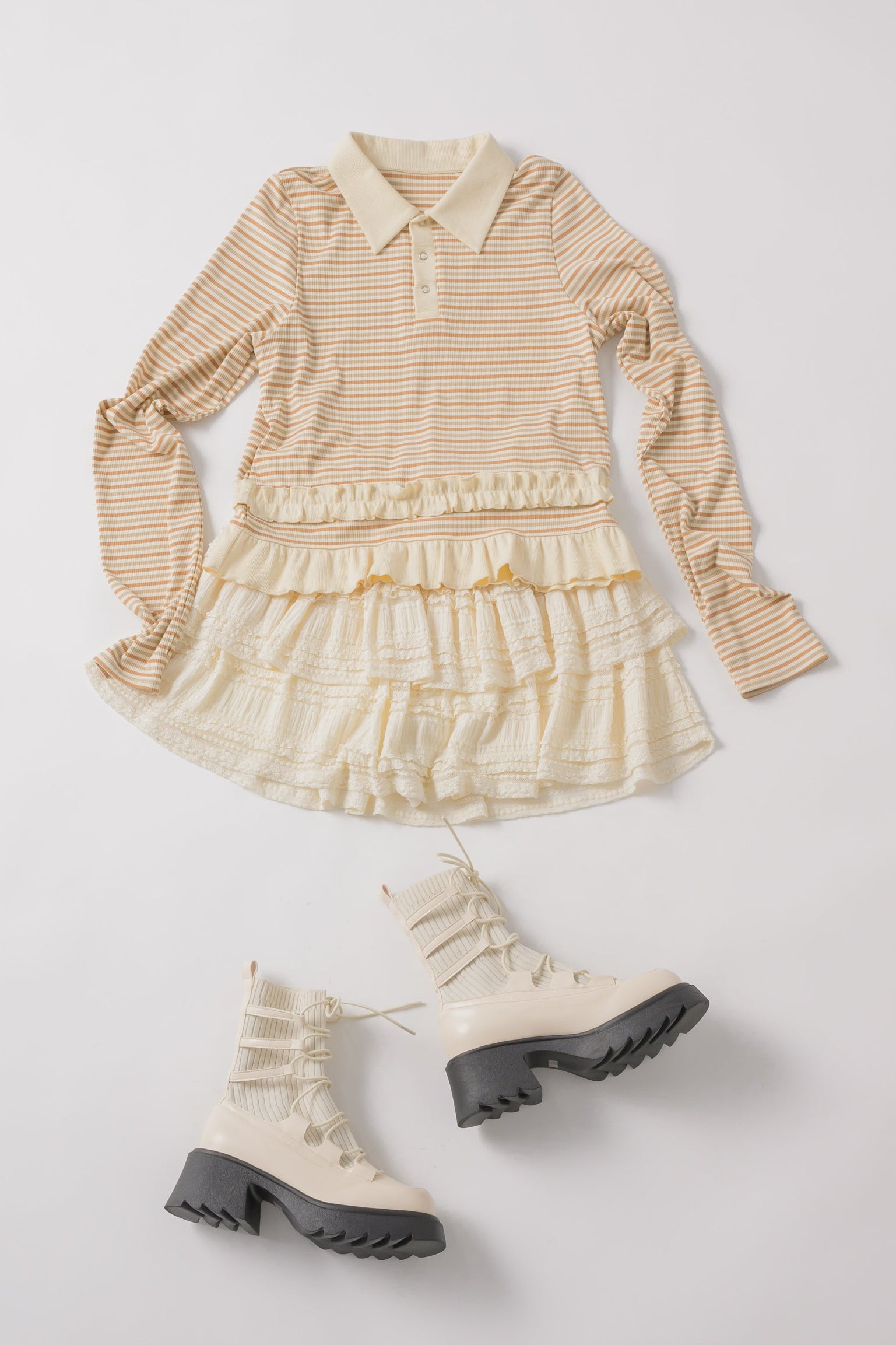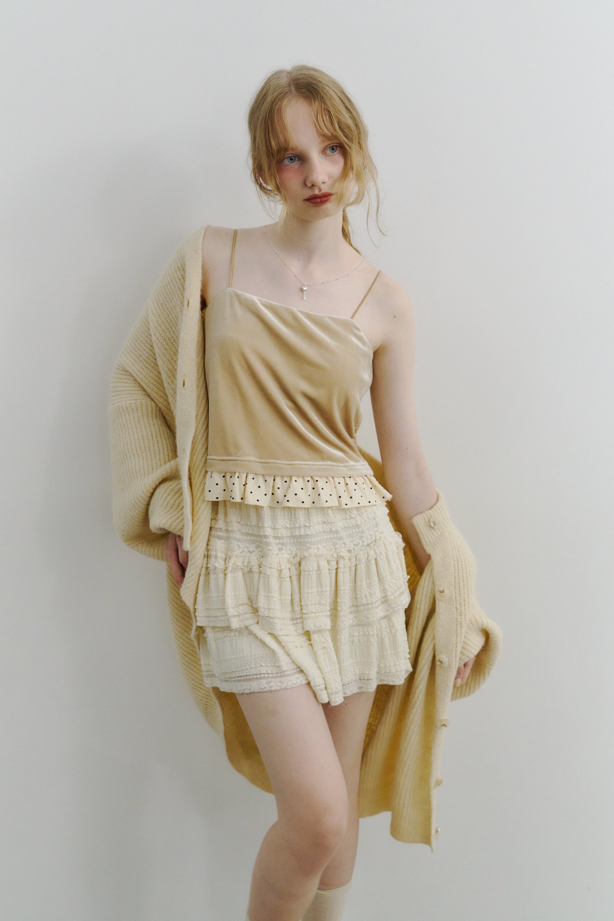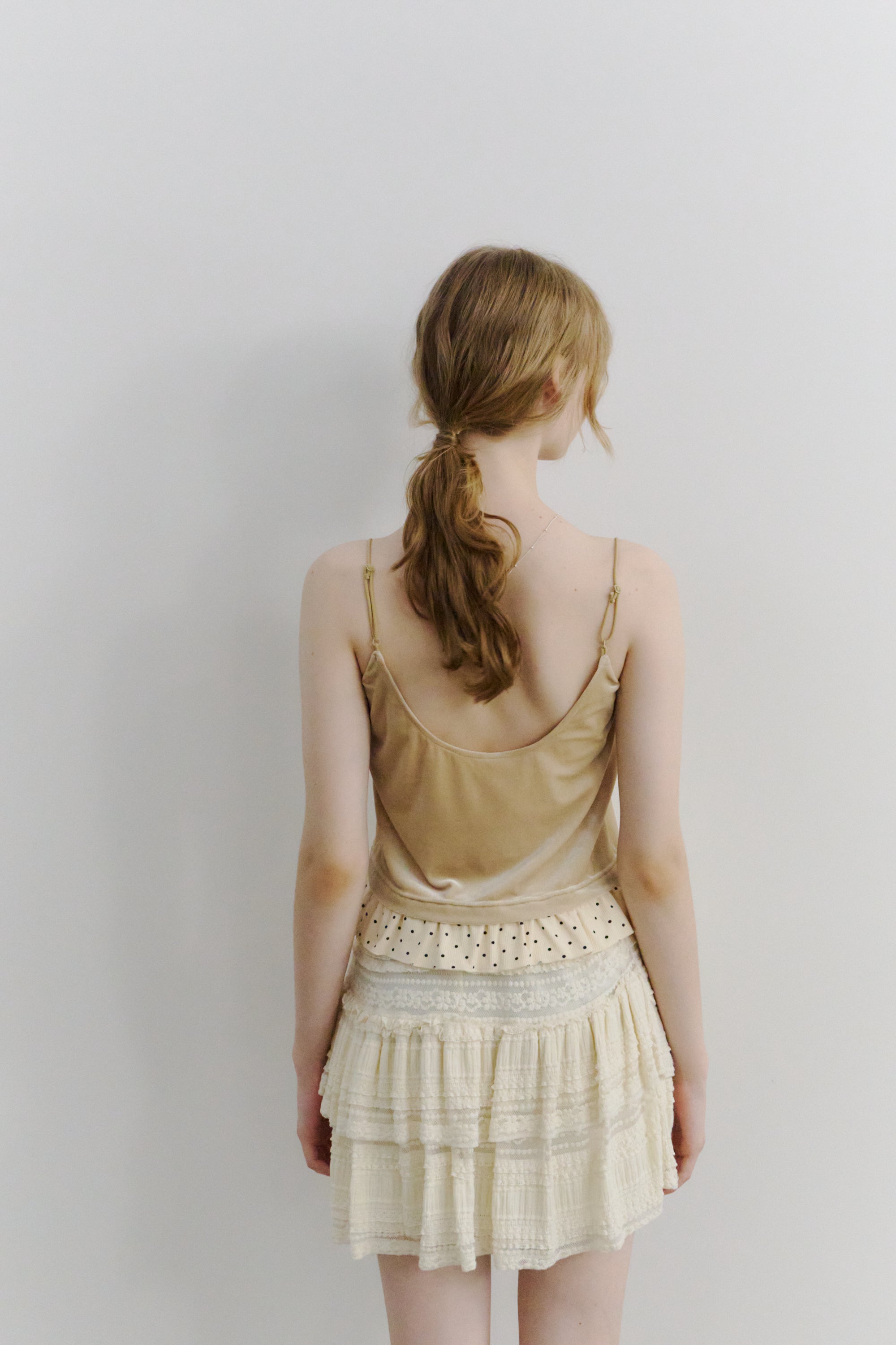 動くたびに軽やかに揺れるティアードミニスカート。