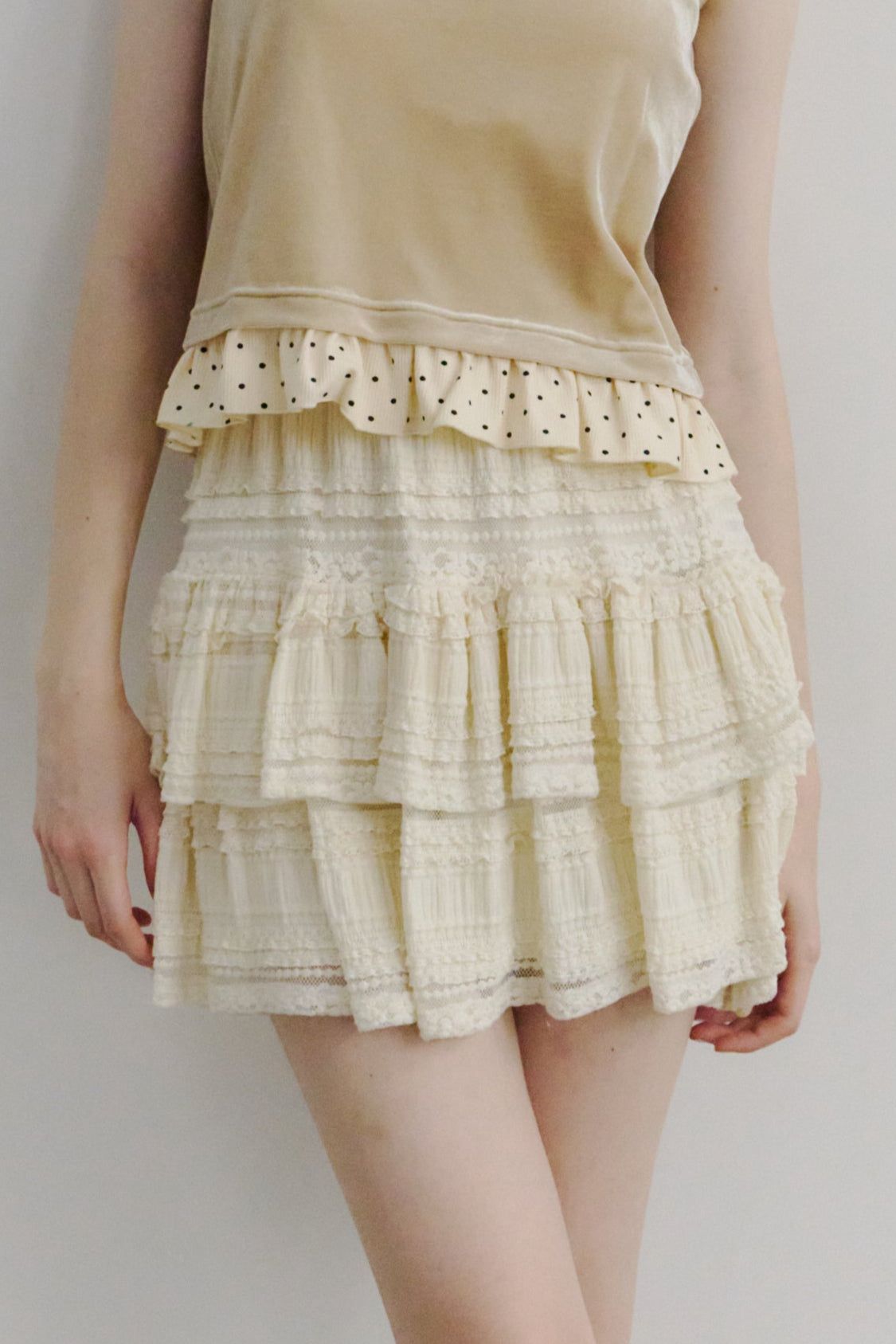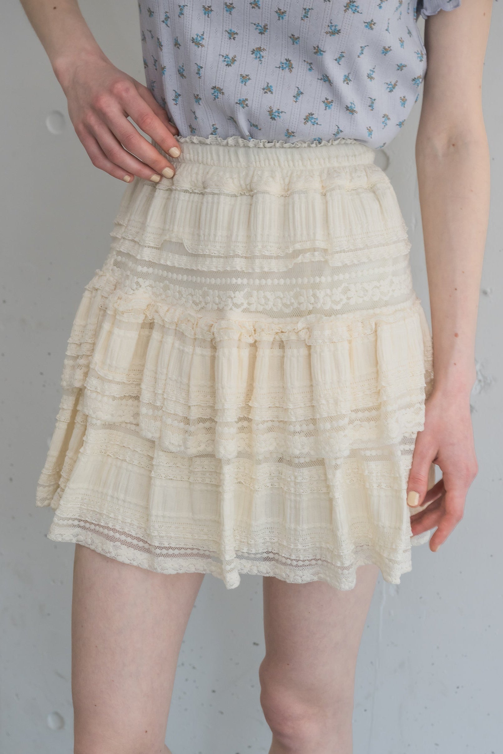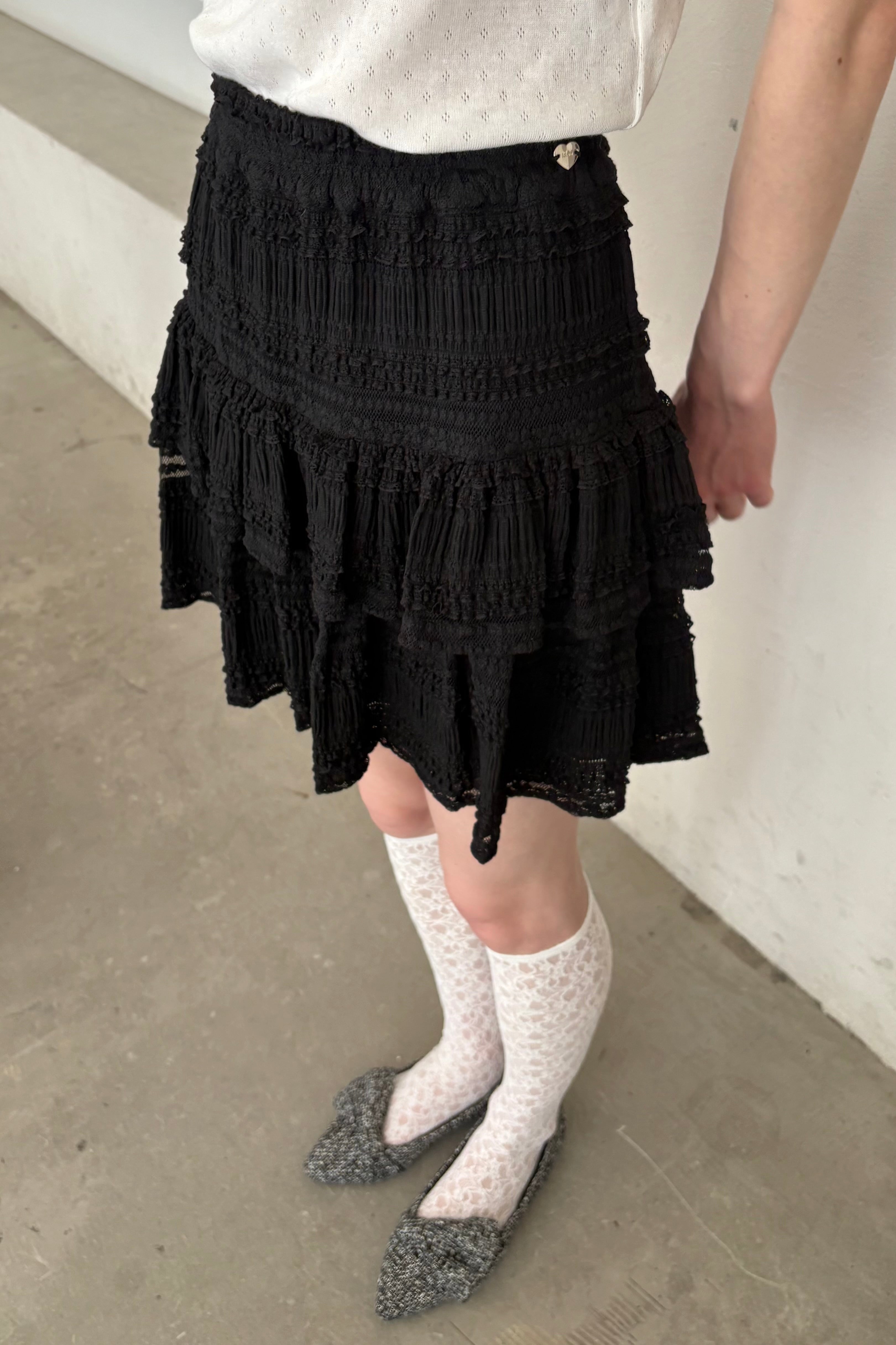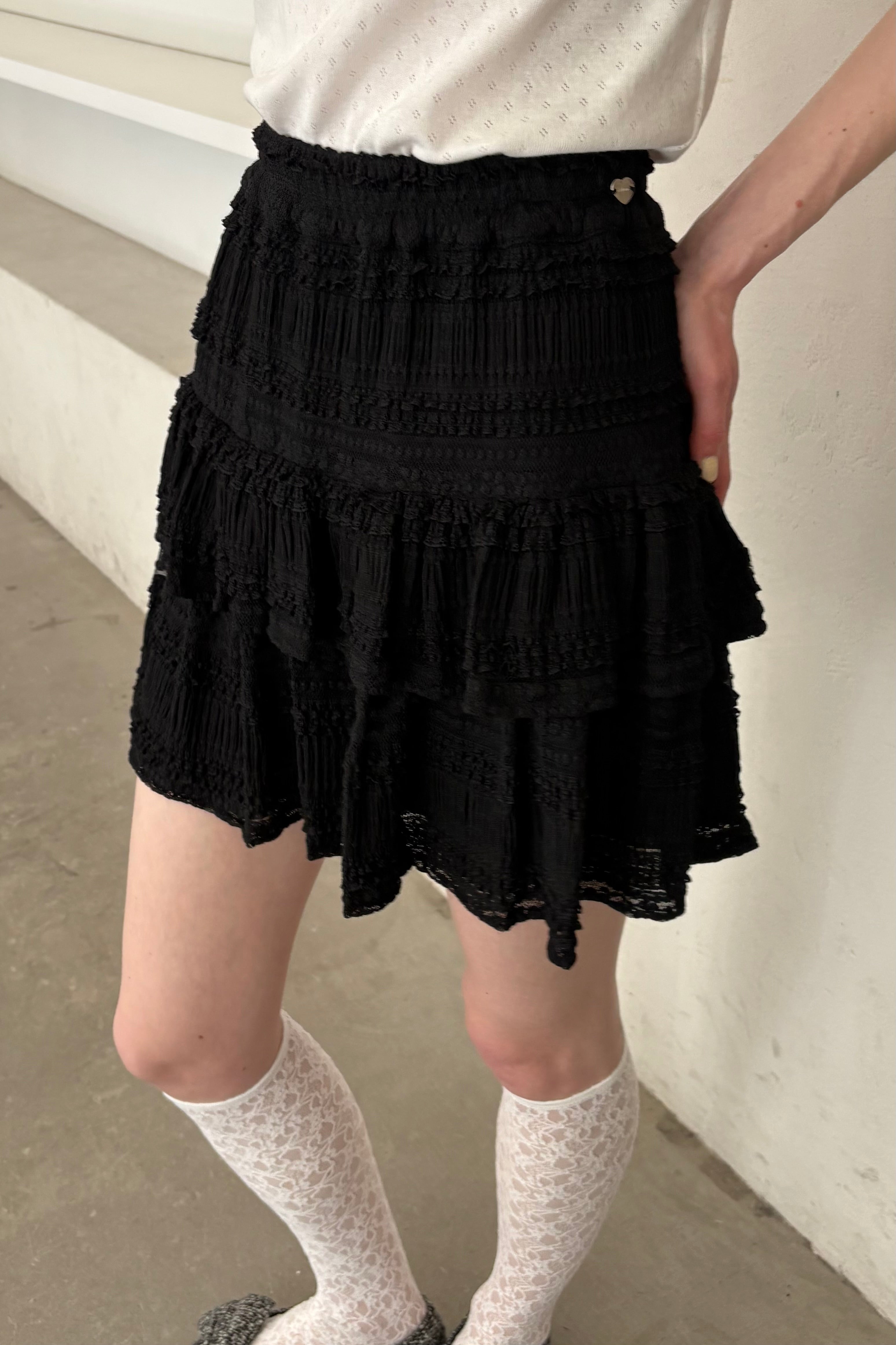 lace tiered frill mini skirt
